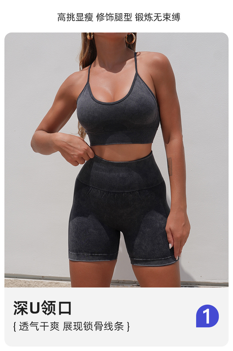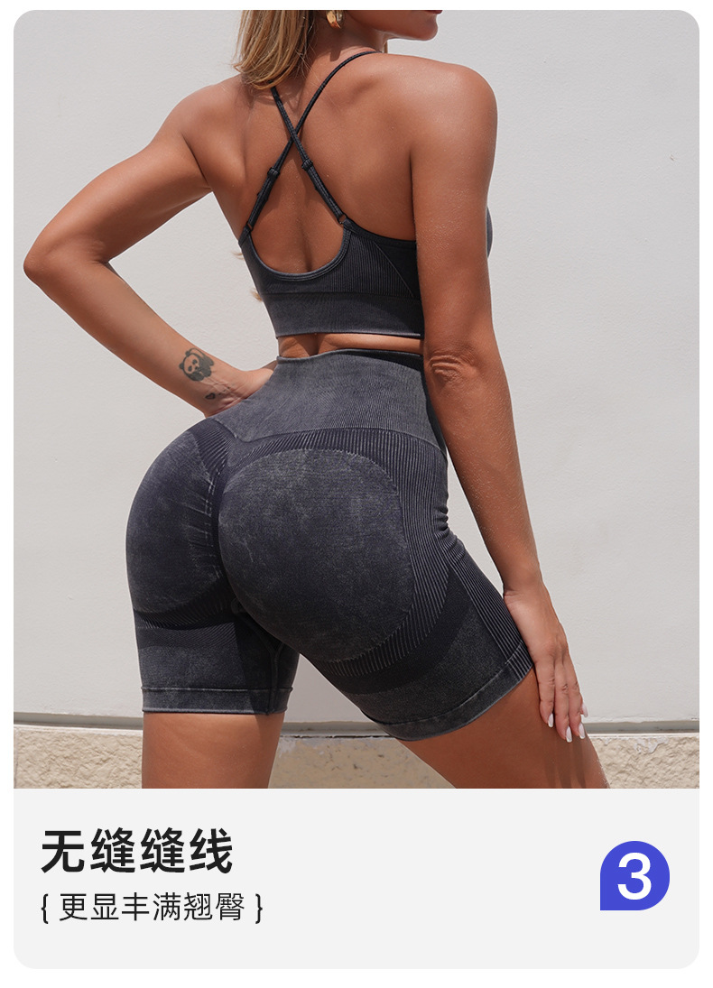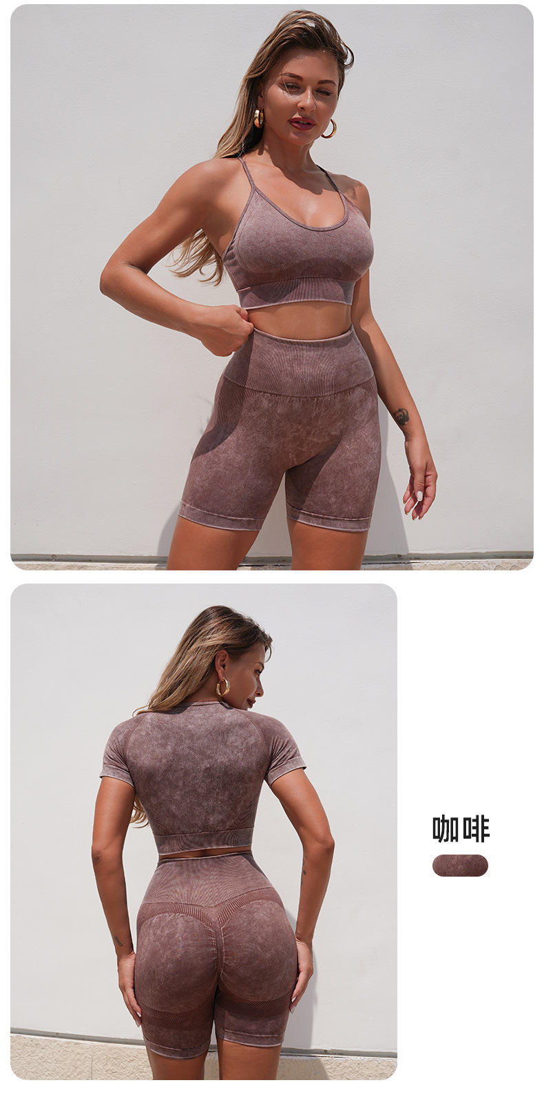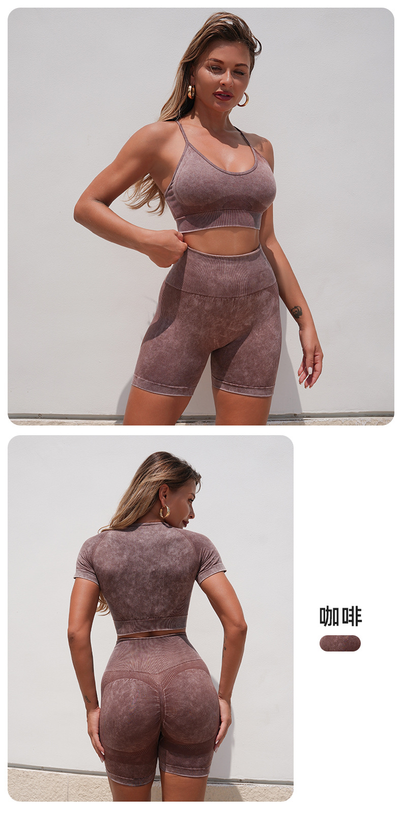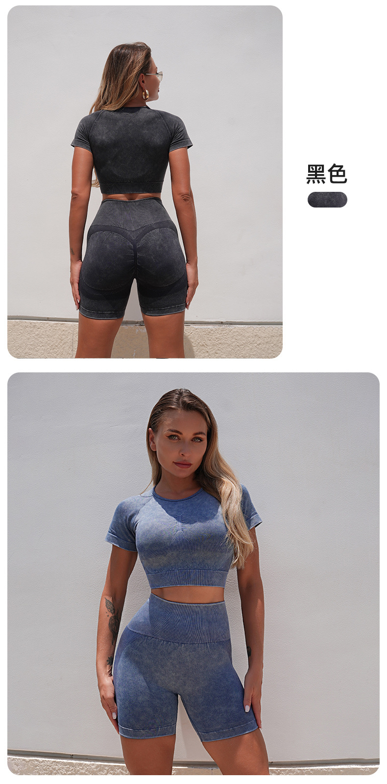 국경 간 새로운 스타일 배꼽 노출 반바지 세트 요가 엉덩이 리프팅 하이 웨이스트 스포츠 아마존 유럽과 미국의 꽉 끼는 여성 반팔스토어 가기