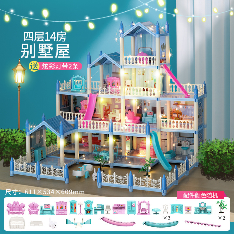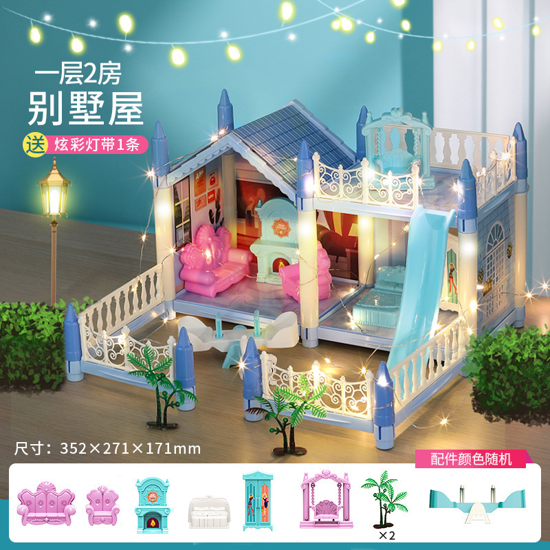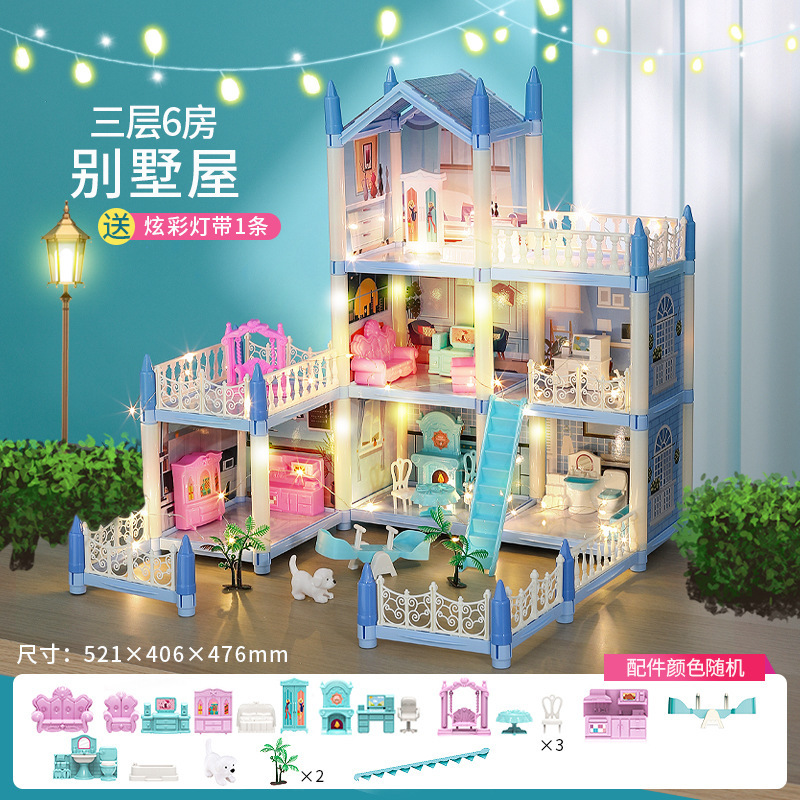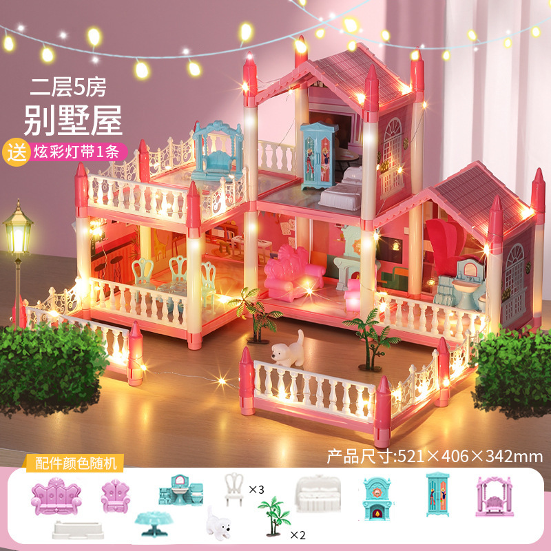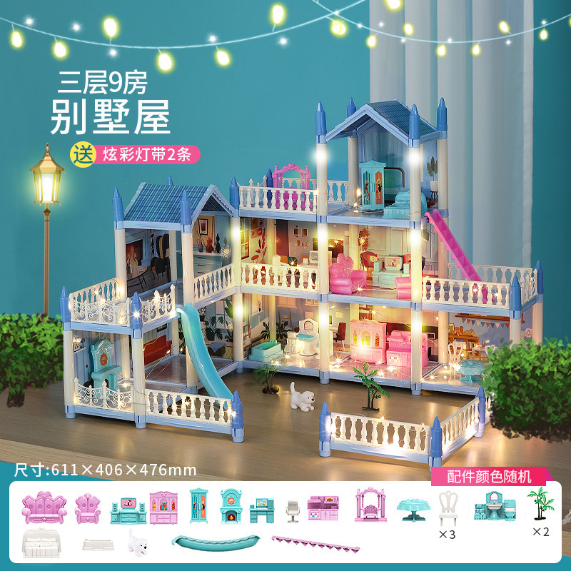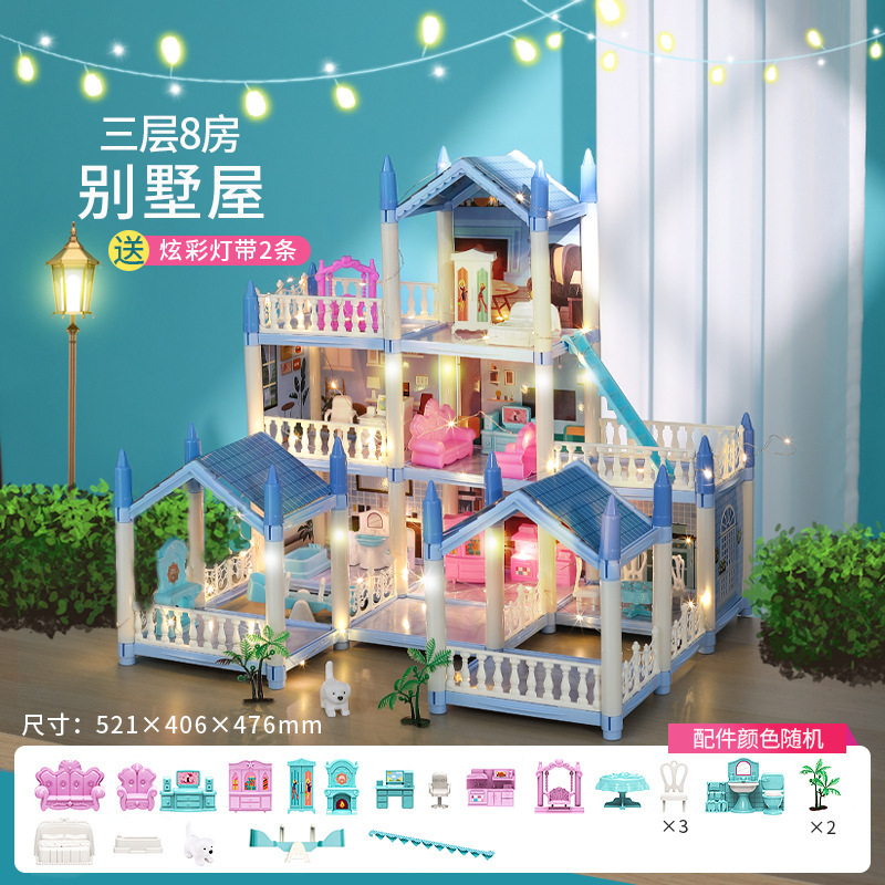 국경 간 빛나는 놀이 집 빌라 성 장난감 인형 집 소녀 조립 장난감 선물 공주 방 오두막스토어 가기