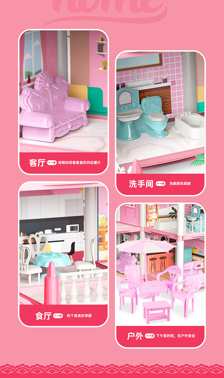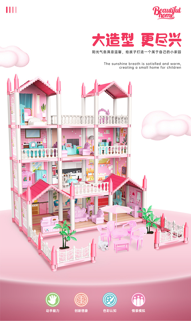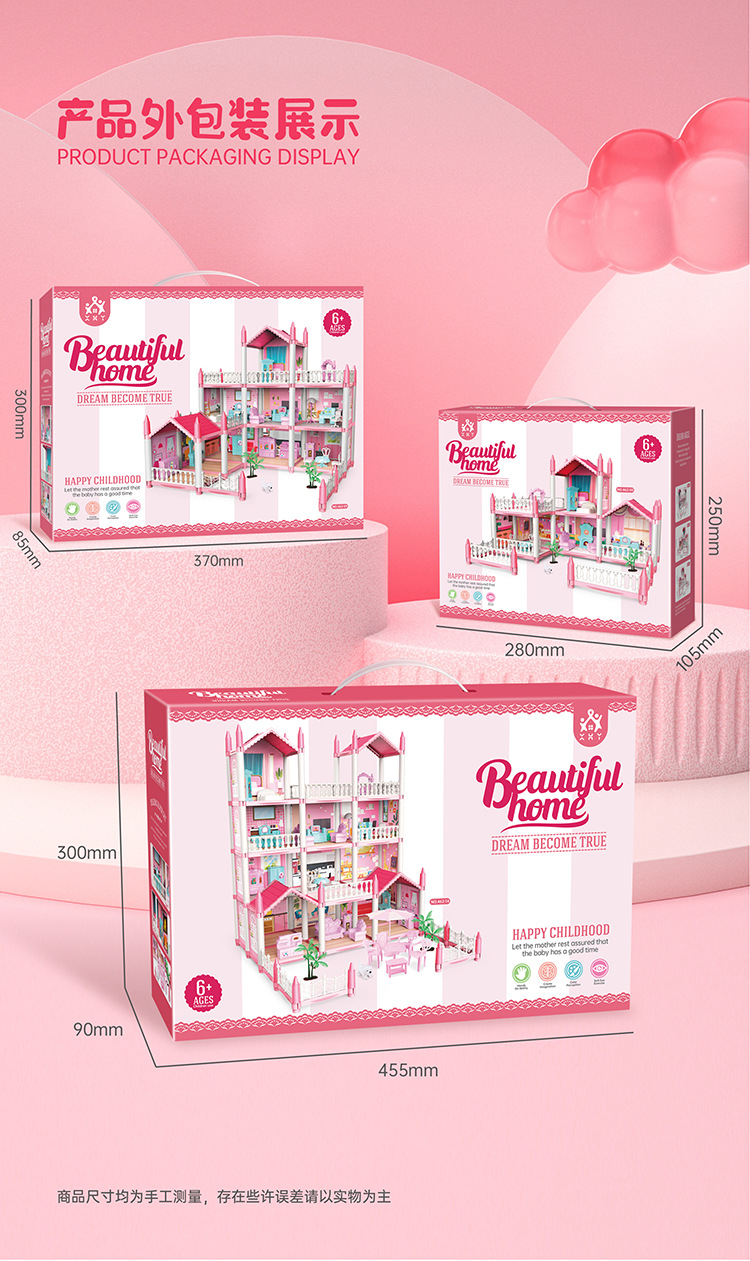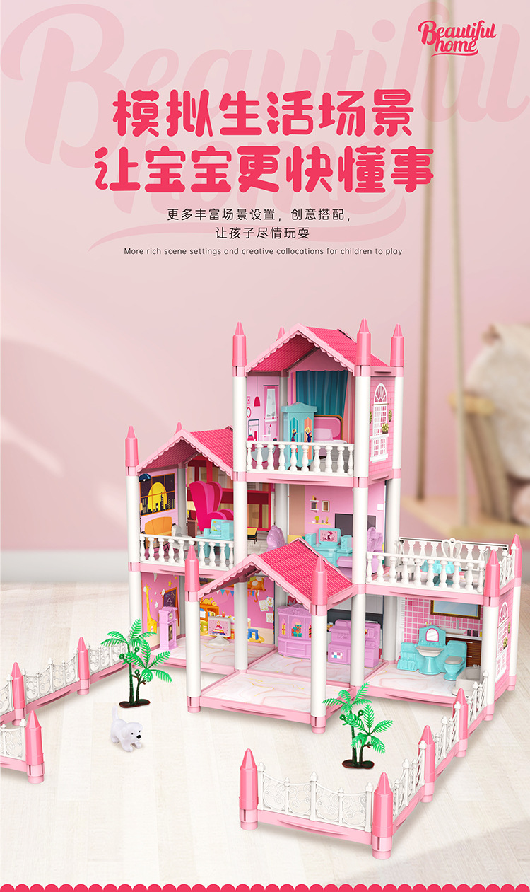국경 간 빛나는 놀이 집 빌라 성 장난감 인형 집 소녀 조립 장난감 선물 공주 방 오두막스토어 가기