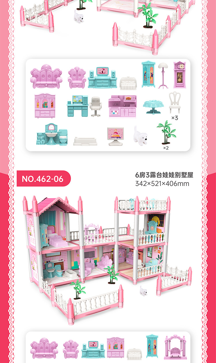 • 핑크 침실 6개 + 조명 1개 + 인형 2개