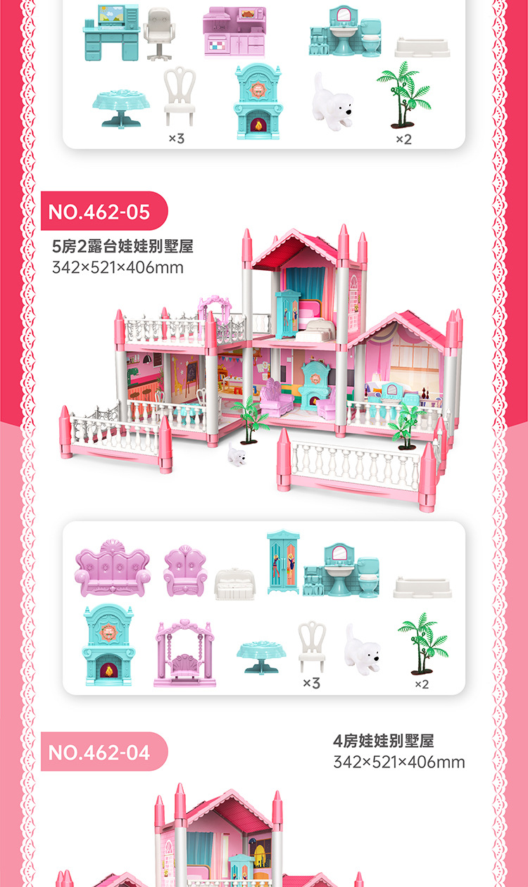 • 핑크 침실 5개 + 조명 1개 + 인형 2개
