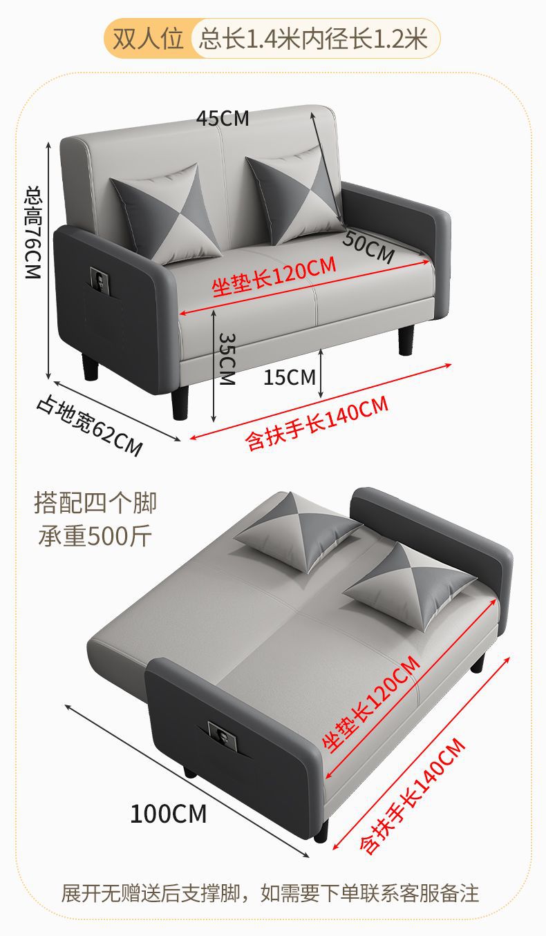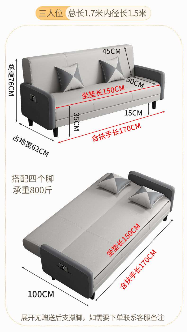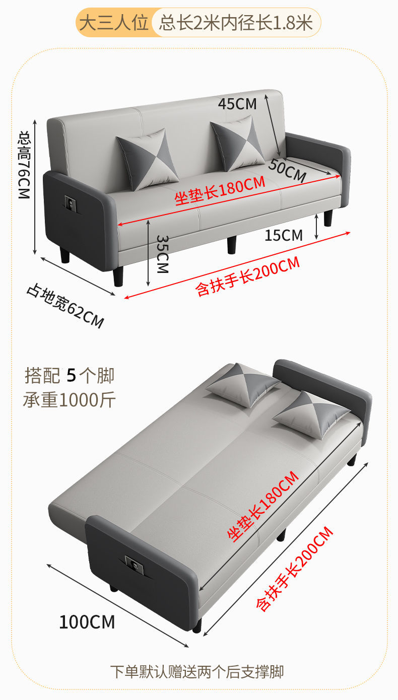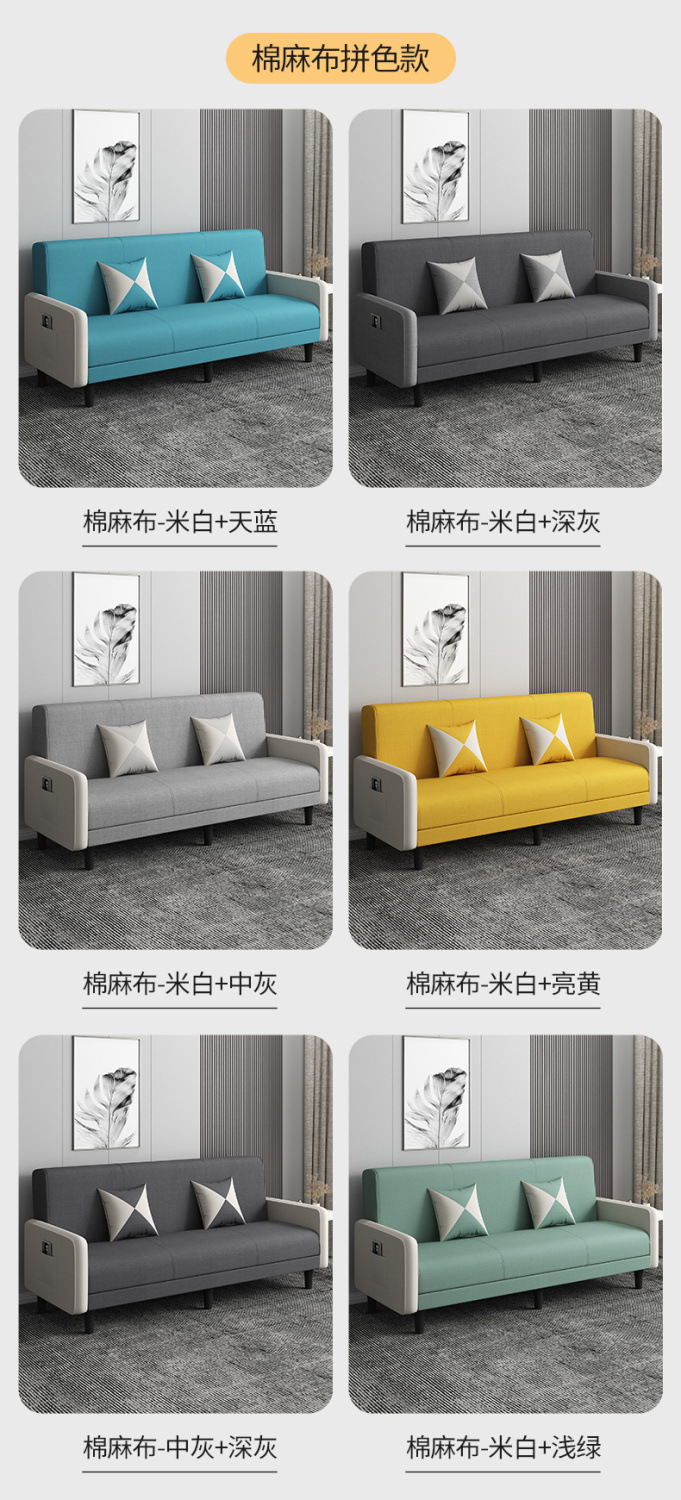 패브릭 소파 소형 가족 접이식 소파 베드 이중 목적 다기능 거실 임대 아파트 싱글 및 더블 소파