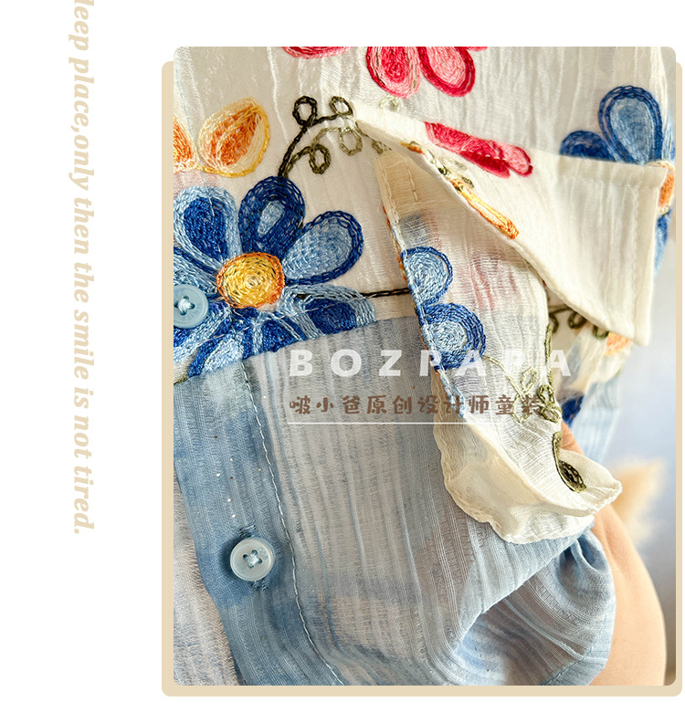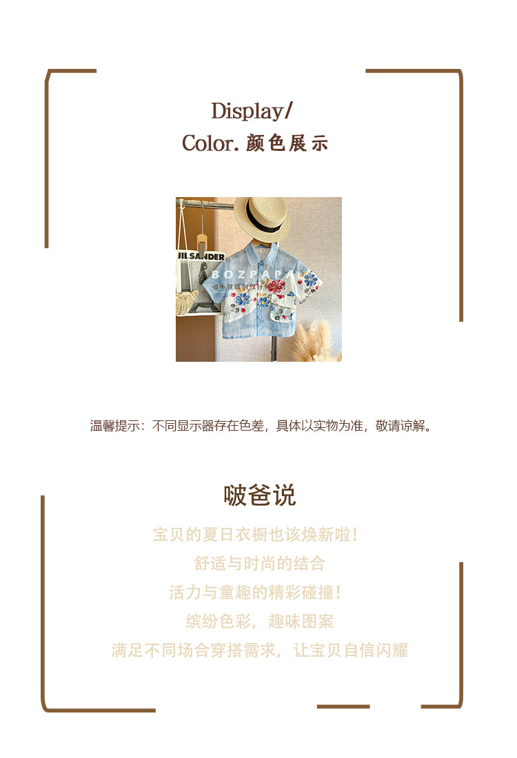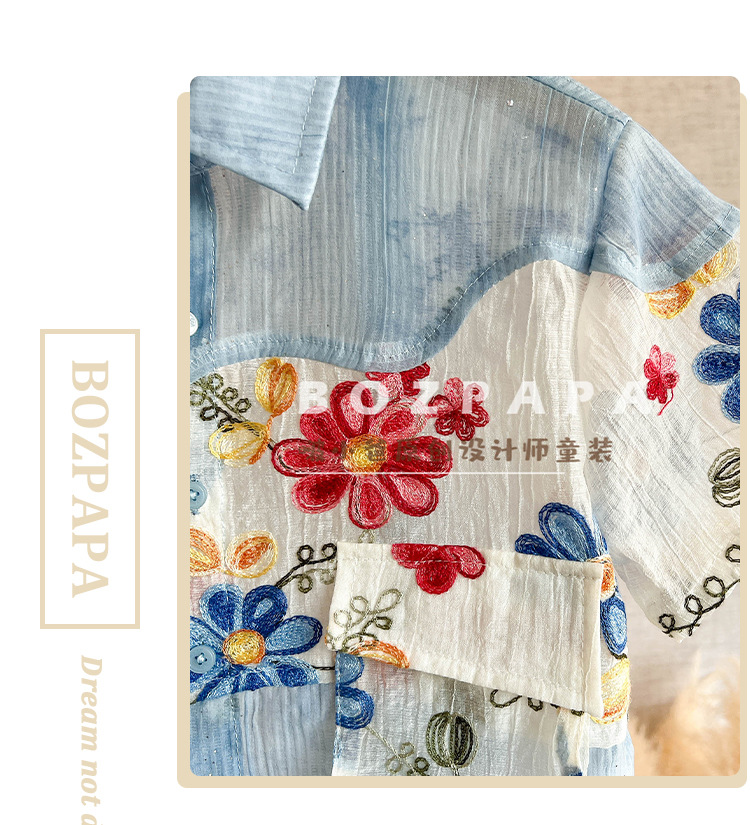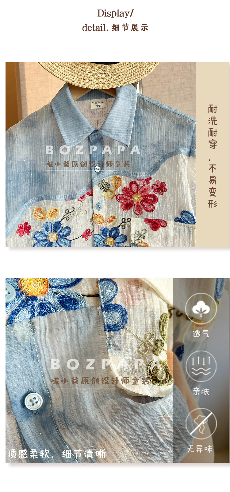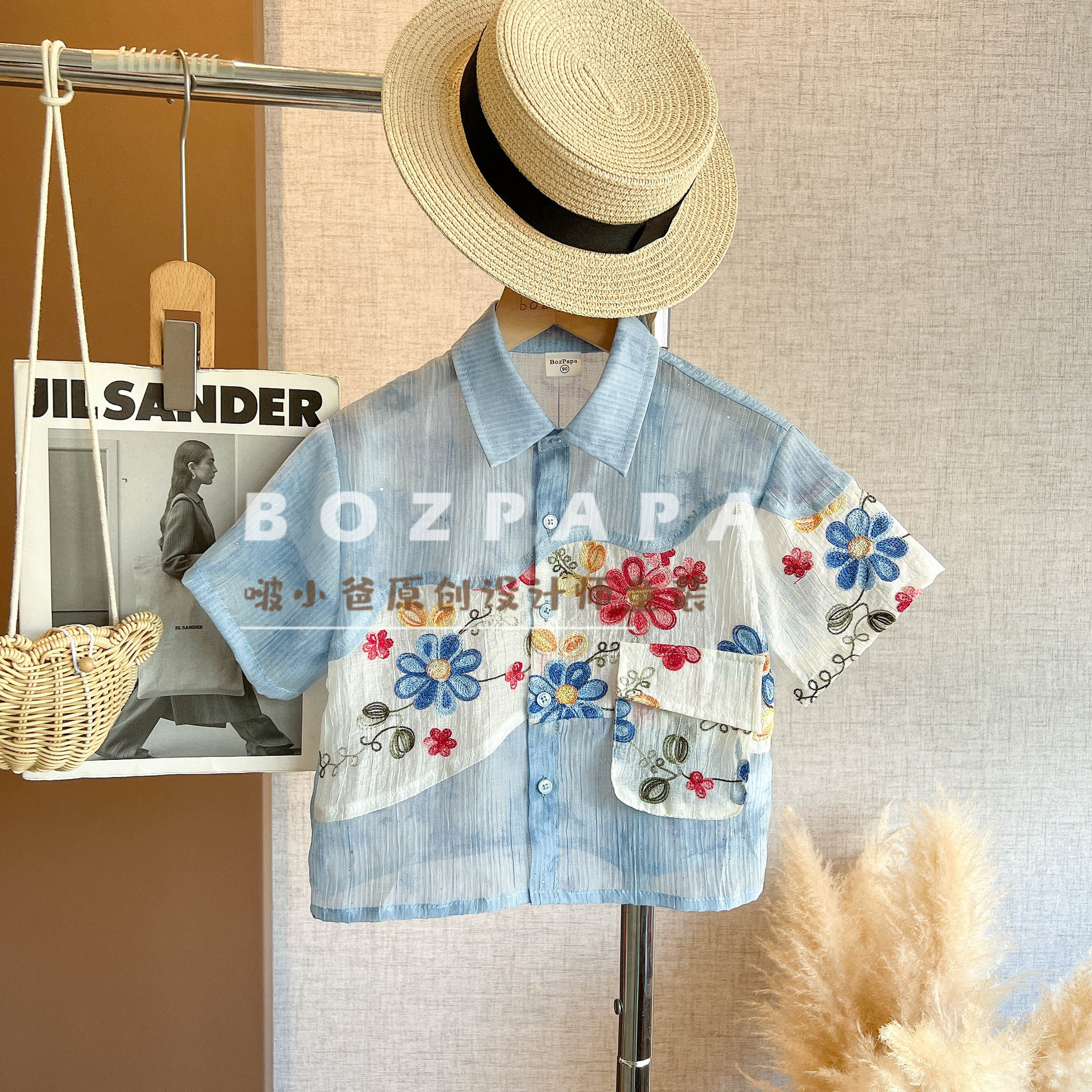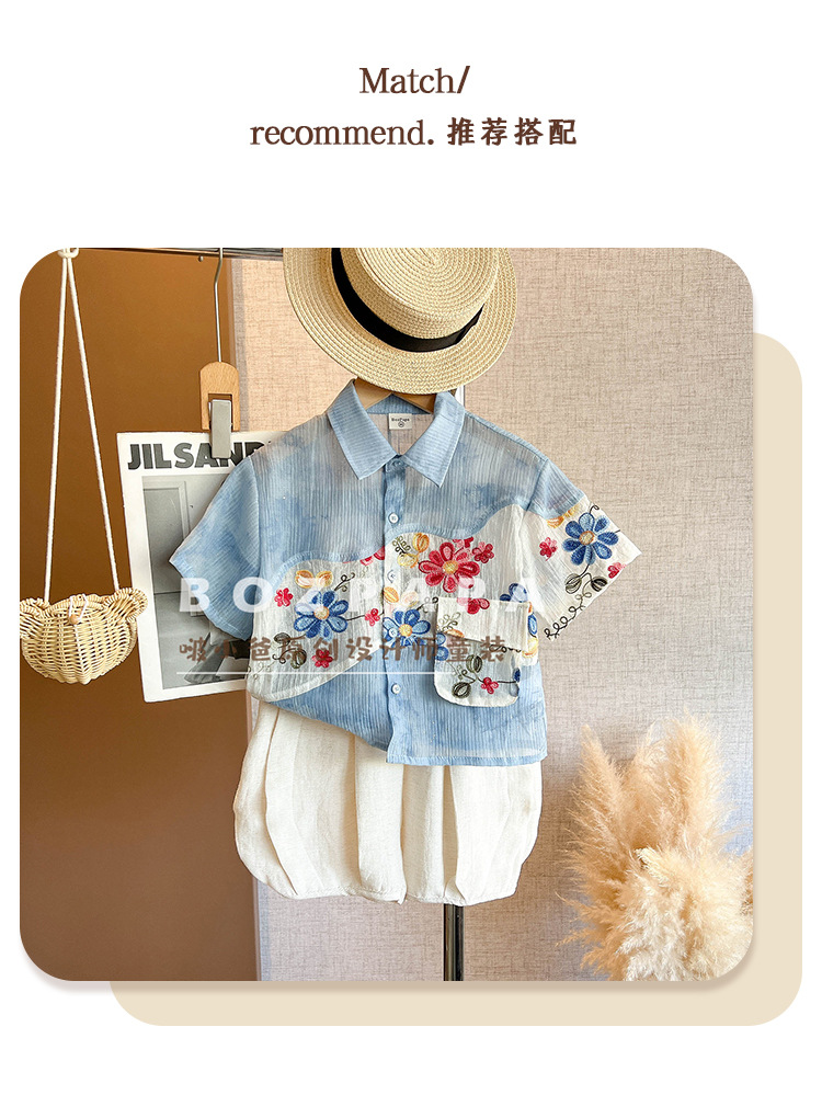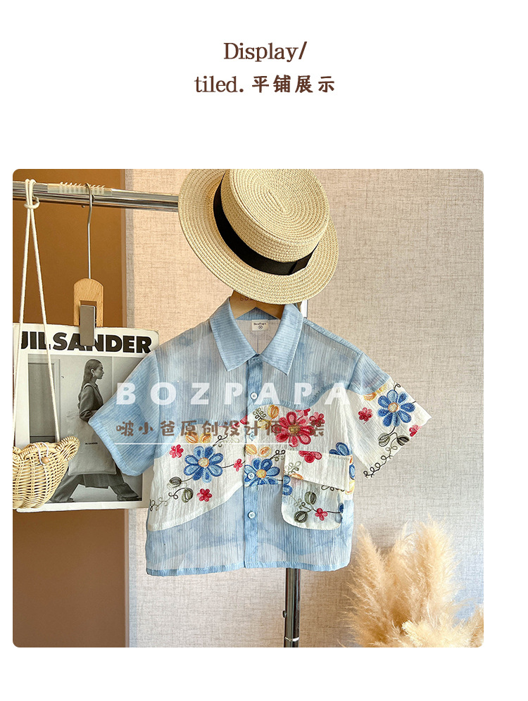 2026년 여름 신상 남아용 한국 스타일 캐주얼 셔츠, 아동용 다용도 패치워크 화이트 자수 꽃무늬 셔츠스토어 가기