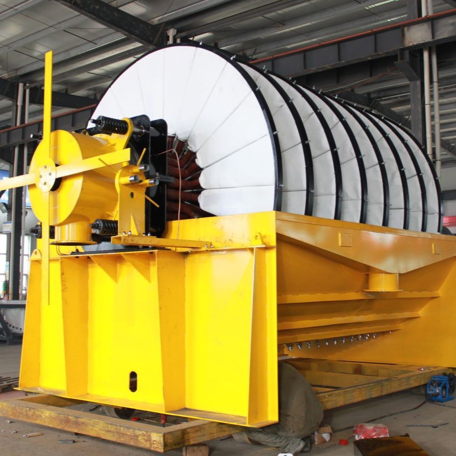 过滤在工业上指通过一种介质使固体分开而实现固液分离的过程,均称为过滤。 工业上常用的过滤介质:粒状介质、织物介质、多孔介质陶瓷介质。 在选煤厂多用织物介质。选煤厂真空过滤设备可分两类:圆盘式真空过滤设备 和圆筒式真空过滤设备.主要用于过滤浮选精煤,也可用于过滤煤泥或浮选尾煤。