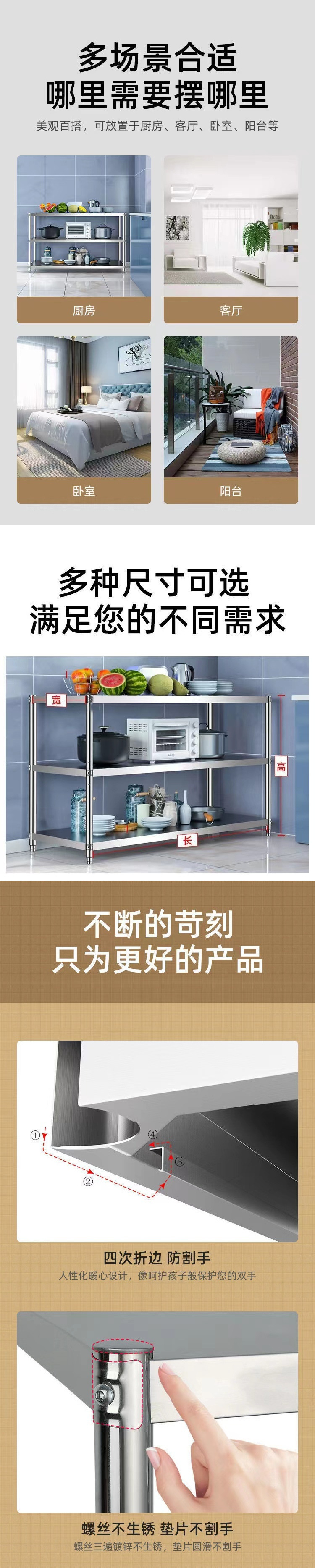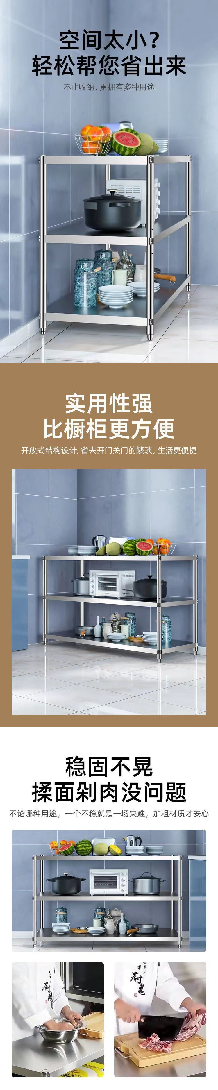 주방 랙 캐비닛 스테인레스 스틸 선반 캐비닛 다기능 스토리지 가정용 스토브 랙 바닥 스탠딩 전자 레인지 랙스토어 가기