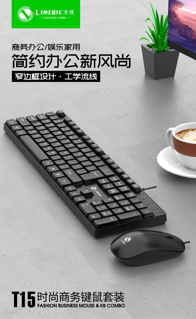 [단품 무료배송] Limei T15AIGUOZHE 유선 키보드 및 마우스 세트 USB 노트북 데스크탑스토어 가기