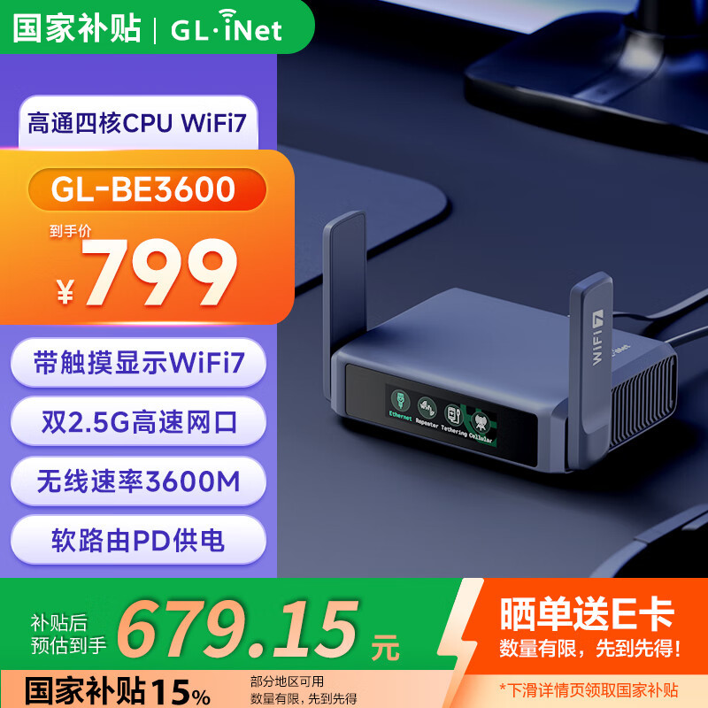 글리넷 라우터 BE3600 [국가보조금 15%] WiFi7 홈 무선 기가비트 소프트 라우팅 듀얼스토어 가기