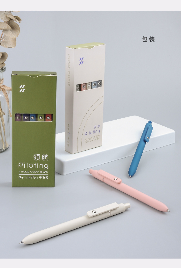 Zanshi Navigation Morandi 복고풍 색상 고가치 프레스 젤 펜 0.5CS 저중심 사무실 브러시 검정색 펜스토어 가기
