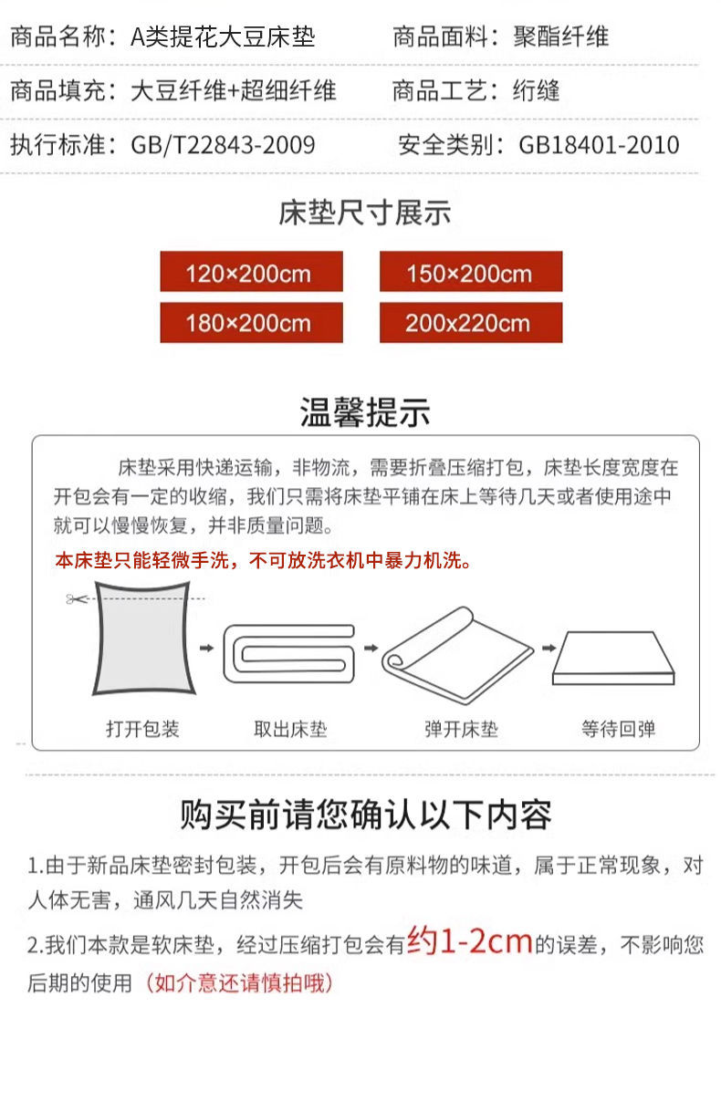 기숙사 학생 싱글 렌탈 두꺼운 클래스 A 콩 매트리스 매트리스 다다미 매트 홈 소프트 쿠션