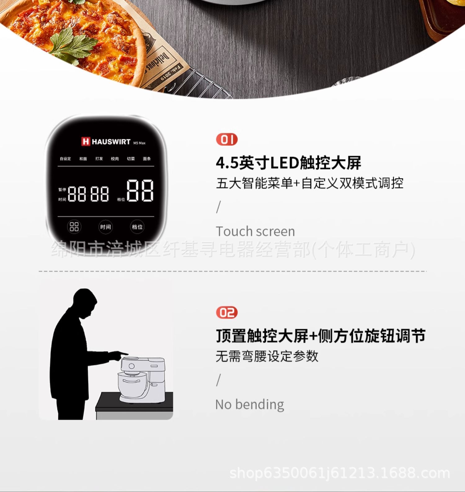 Haishi M5Max 완전 자동 요리사 계란 비터 올인원 다기능 반죽 혼합기 조리 기계 라이트 사운드 전기스토어 가기