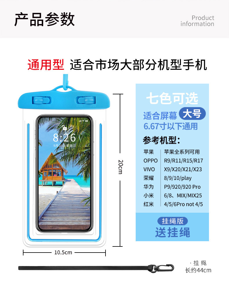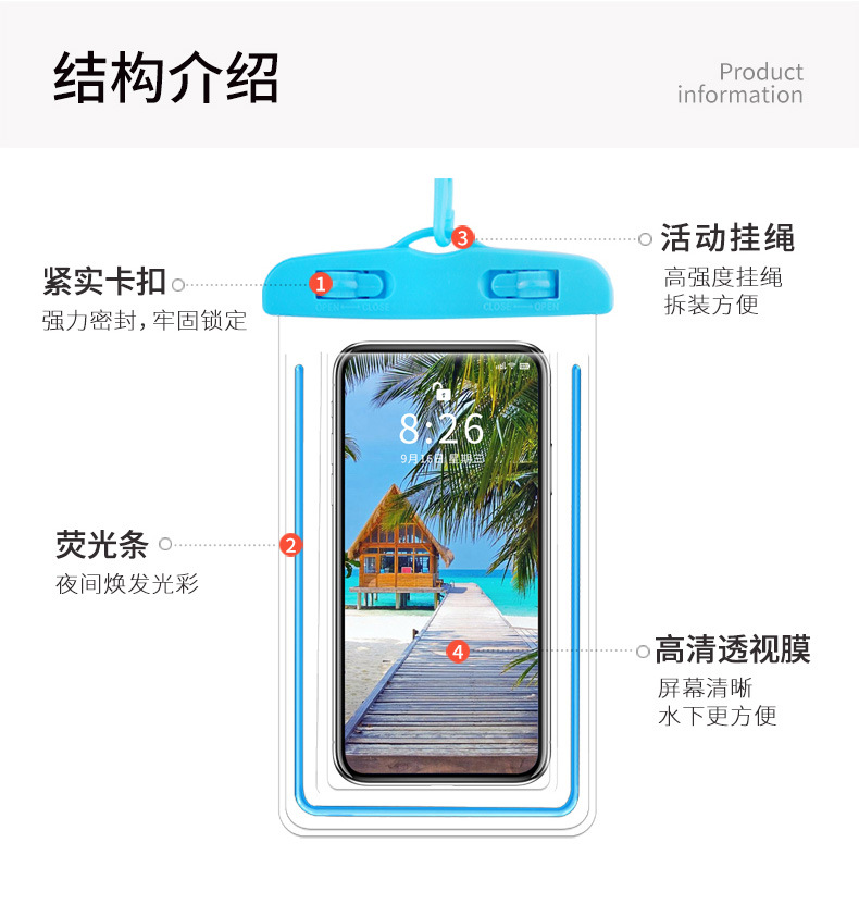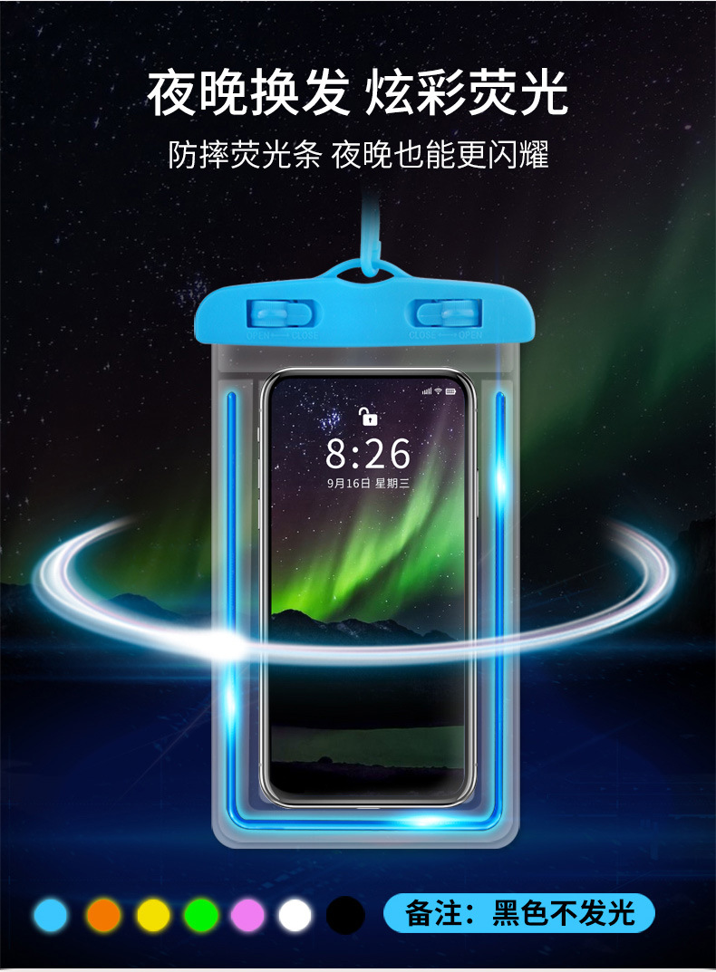 터치 스크린이 있는 야광 휴대폰 방수 가방, 수영 전용, 사진 촬영 가능, 해변 스노클링 및 표류, 투명 방수 휴대폰 케이스