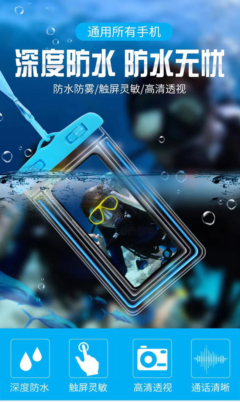 터치 스크린이 있는 야광 휴대폰 방수 가방, 수영 전용, 사진 촬영 가능, 해변 스노클링 및 표류, 투명 방수 휴대폰 케이스스토어 가기