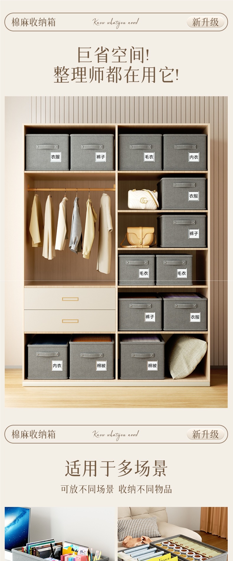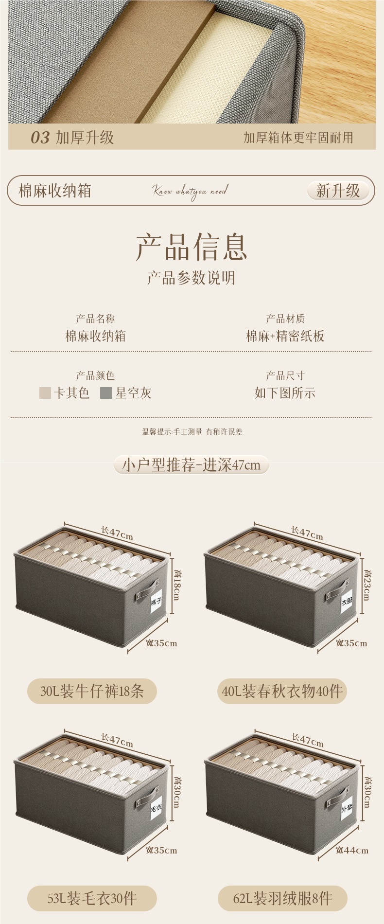 • 58#[이중 두꺼운 면과 린넨] 길이 53 폭 35 높이 30cm 별이 빛나는 하늘 회색 옷장의 90%에 적합