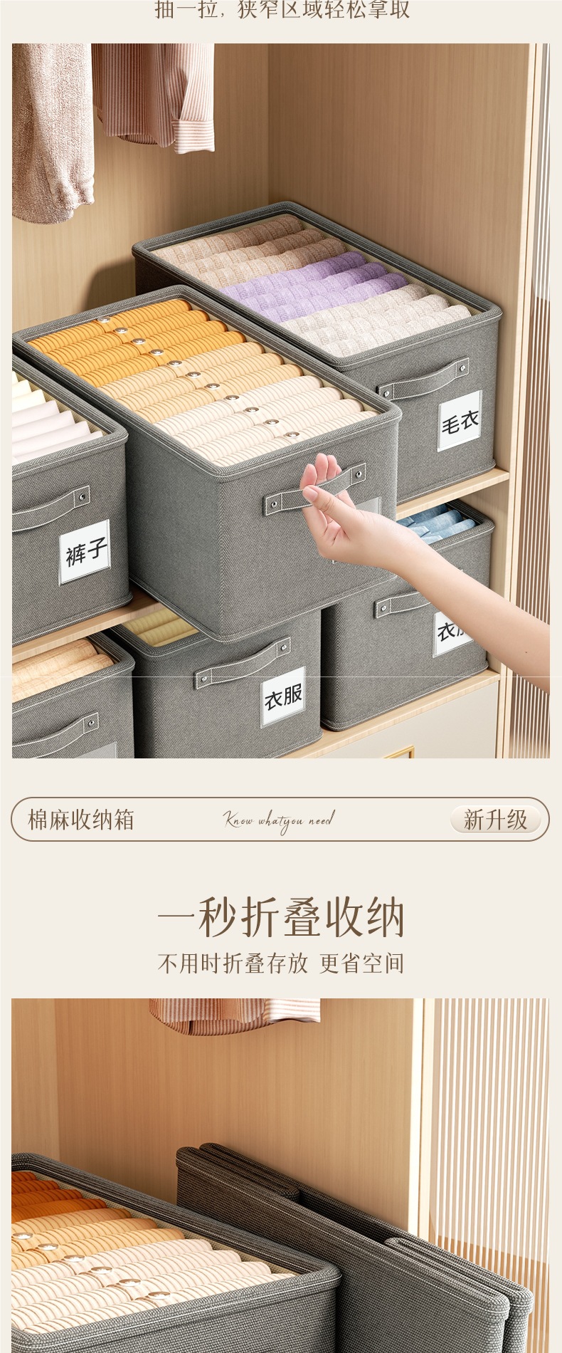 옷 보관 상자 가정용 서랍형 옷장 계층형 직물 의류 접이식 정리 상자 보관 바구니 상자