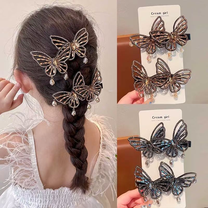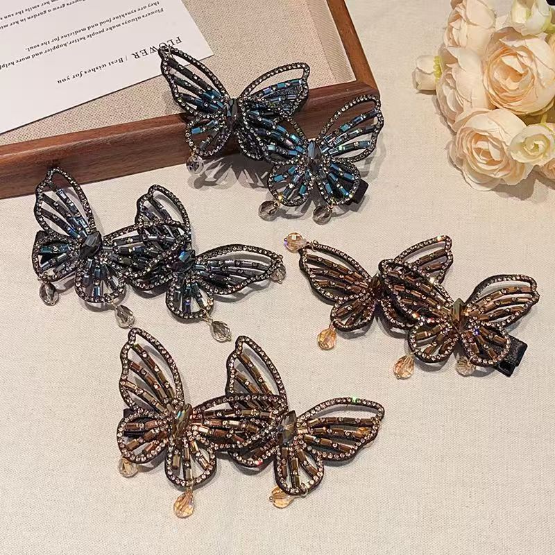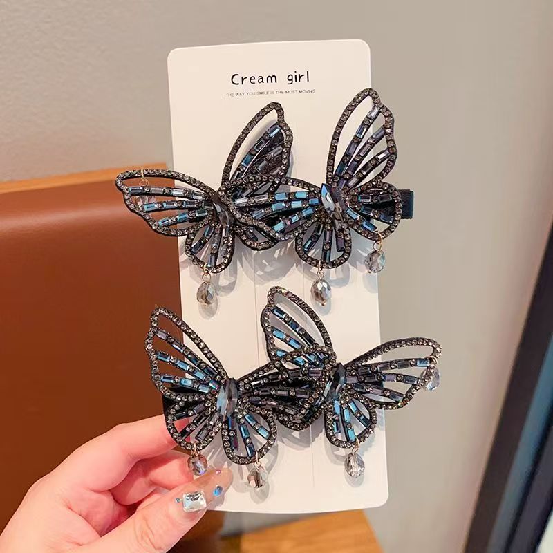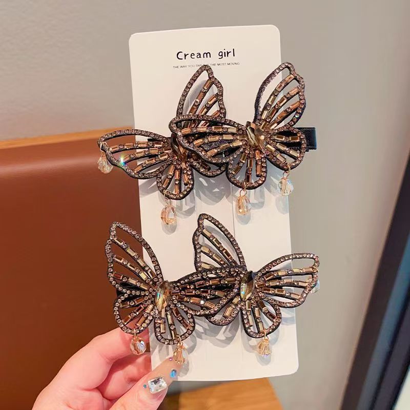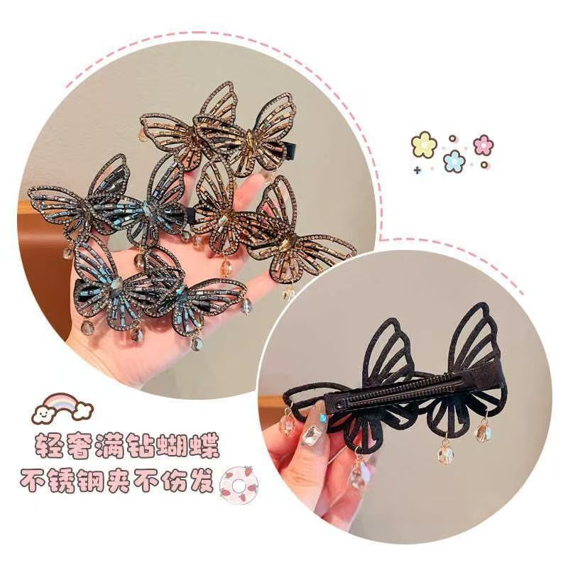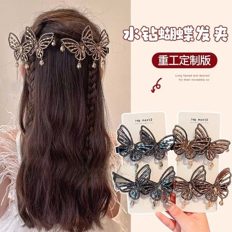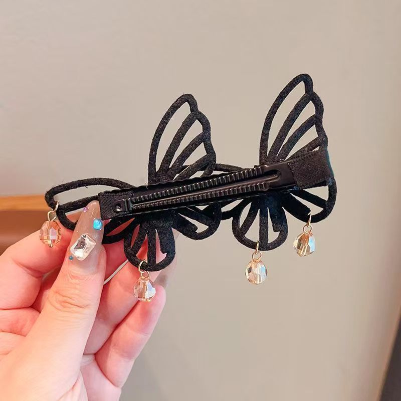 韩版蝴蝶结水钻合金发夹女侧边刘海夹碎发鸭嘴夹气质甜美发卡头饰