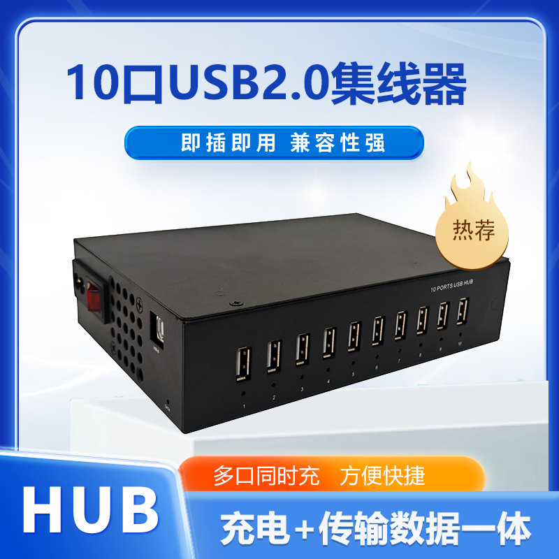 10포트 USB2.0 허브 휴대폰 충전 컴퓨터 전송 허브 산업용 등급 속도 전송 충전