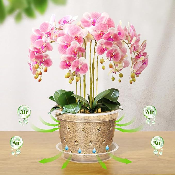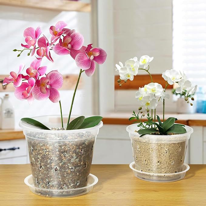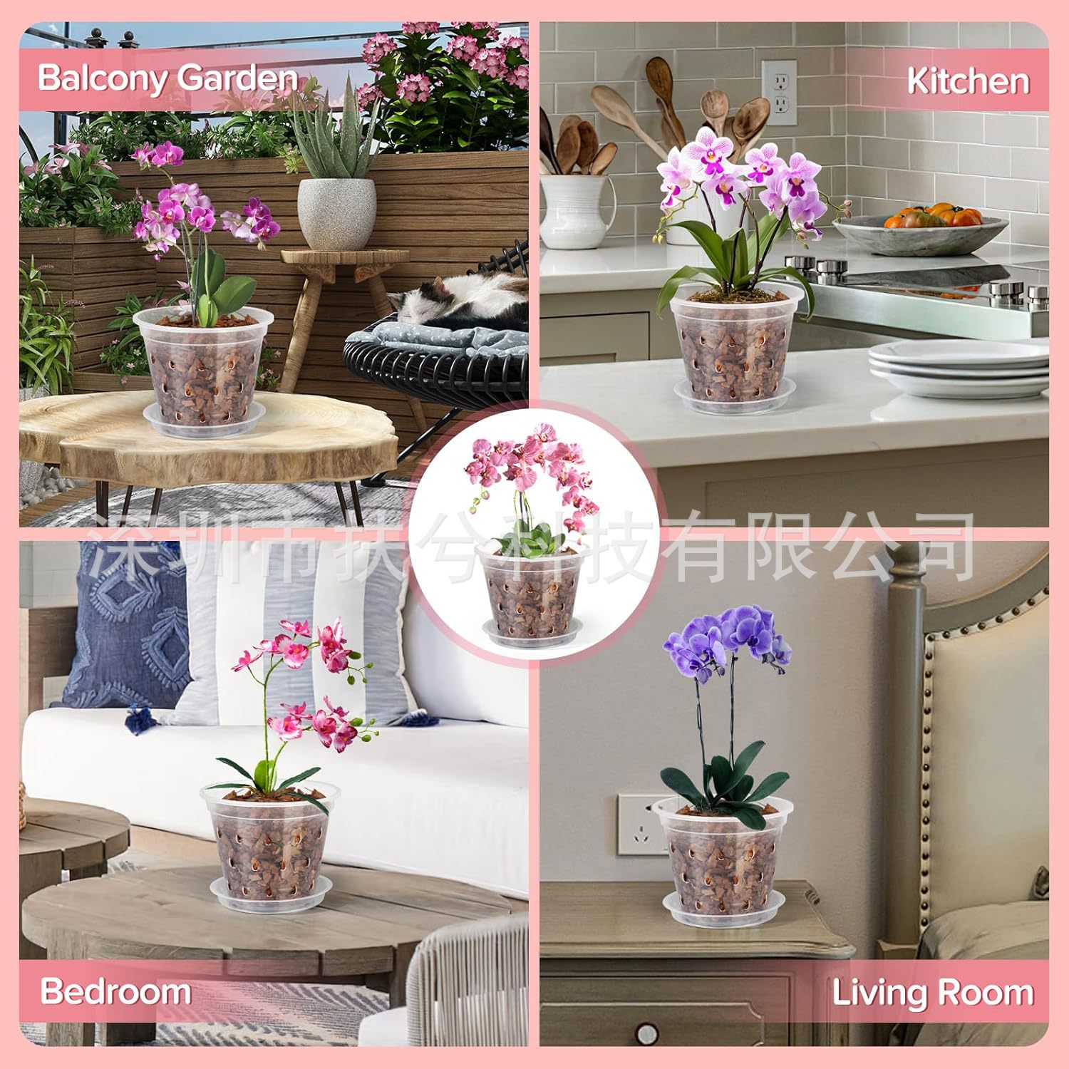 나쁜 뿌리가 땅에 물이 넘치는 것을 방지하기 위해 배수구와 트레이가 있는 고품질 플라스틱 나비 난초 재배 냄비