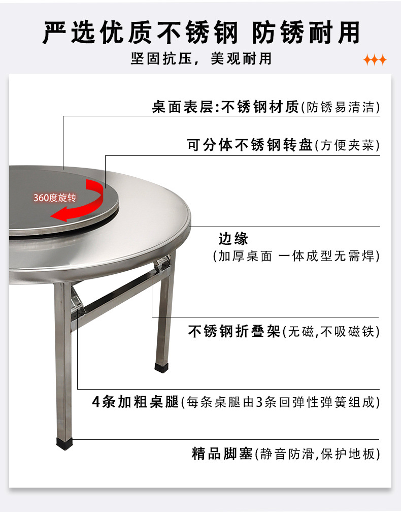 • 1.36m 내부 접이식 두꺼운 스테인레스 스틸 원형 테이블 (이중 탁상)