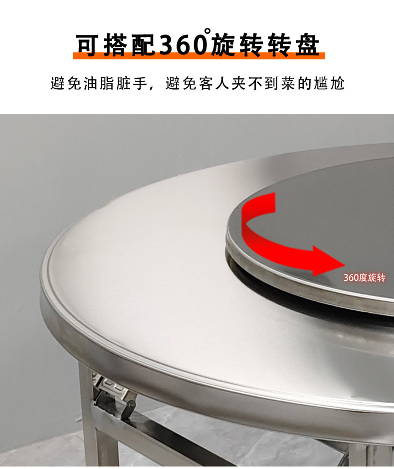 • 1.17m 내부 접이식 두꺼운 스테인레스 스틸 원형 테이블 (이중 탁상)