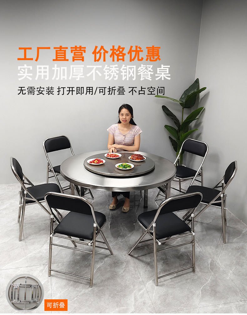 • 1.17m 내부 접이식 두꺼운 스테인레스 스틸 원형 테이블
