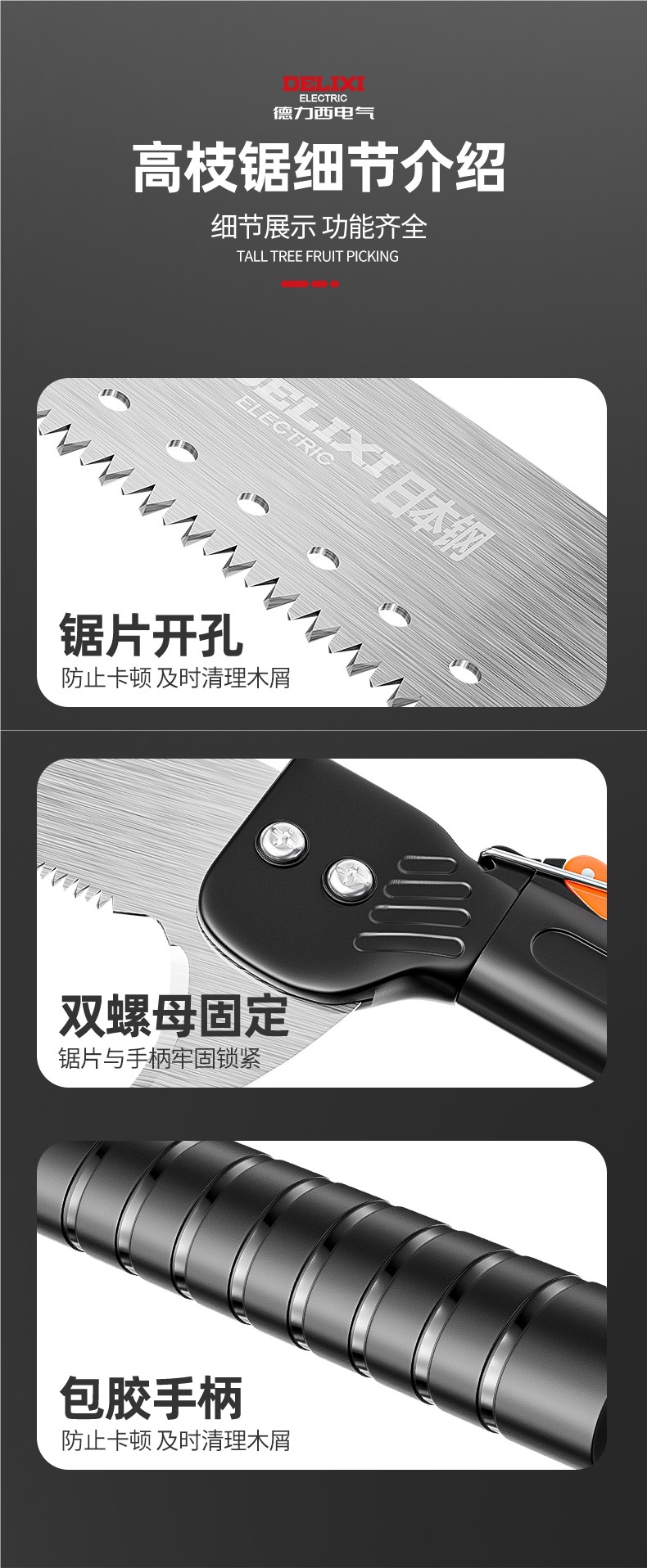 고공 가지 절단용 고지점 톱, 나무 가지 절단용 고공 톱, 나무 절단용 긴 막대 텔레스코픽 톱