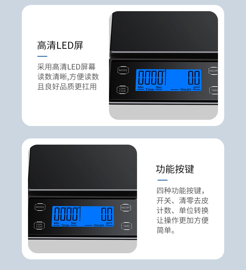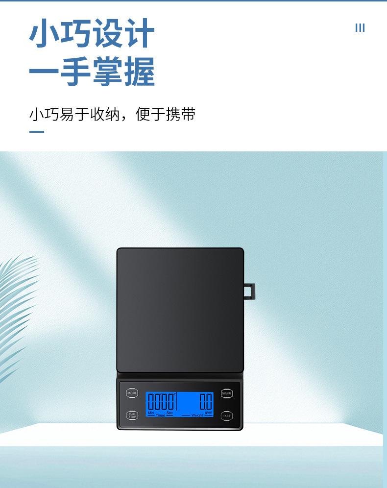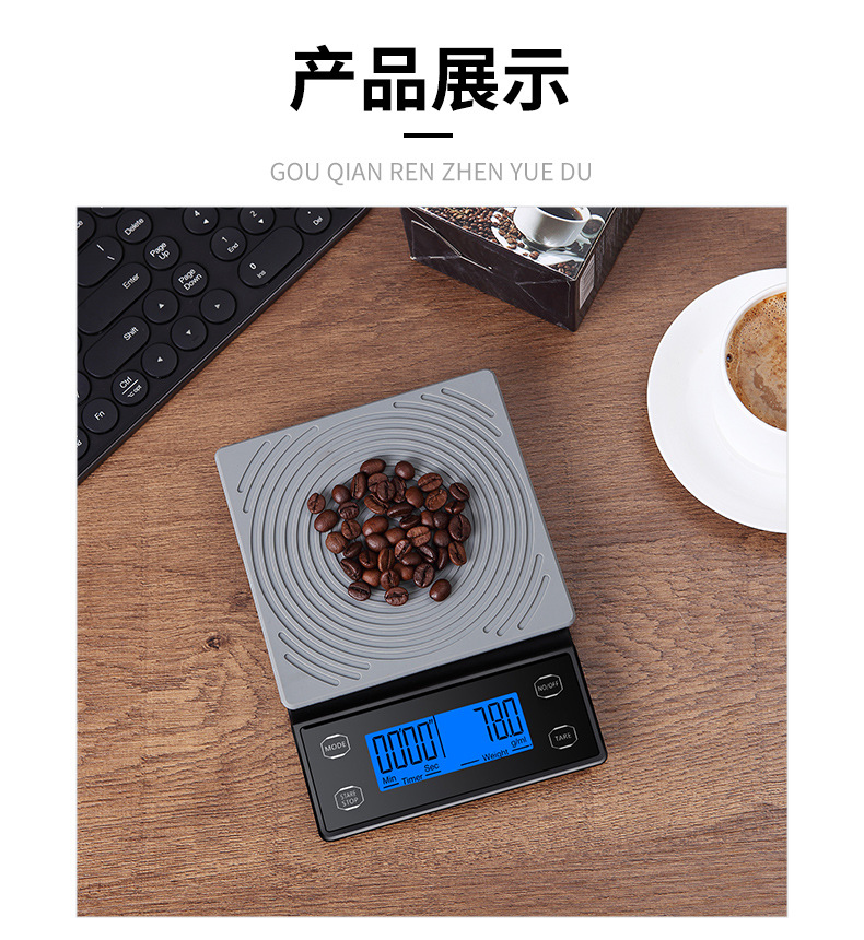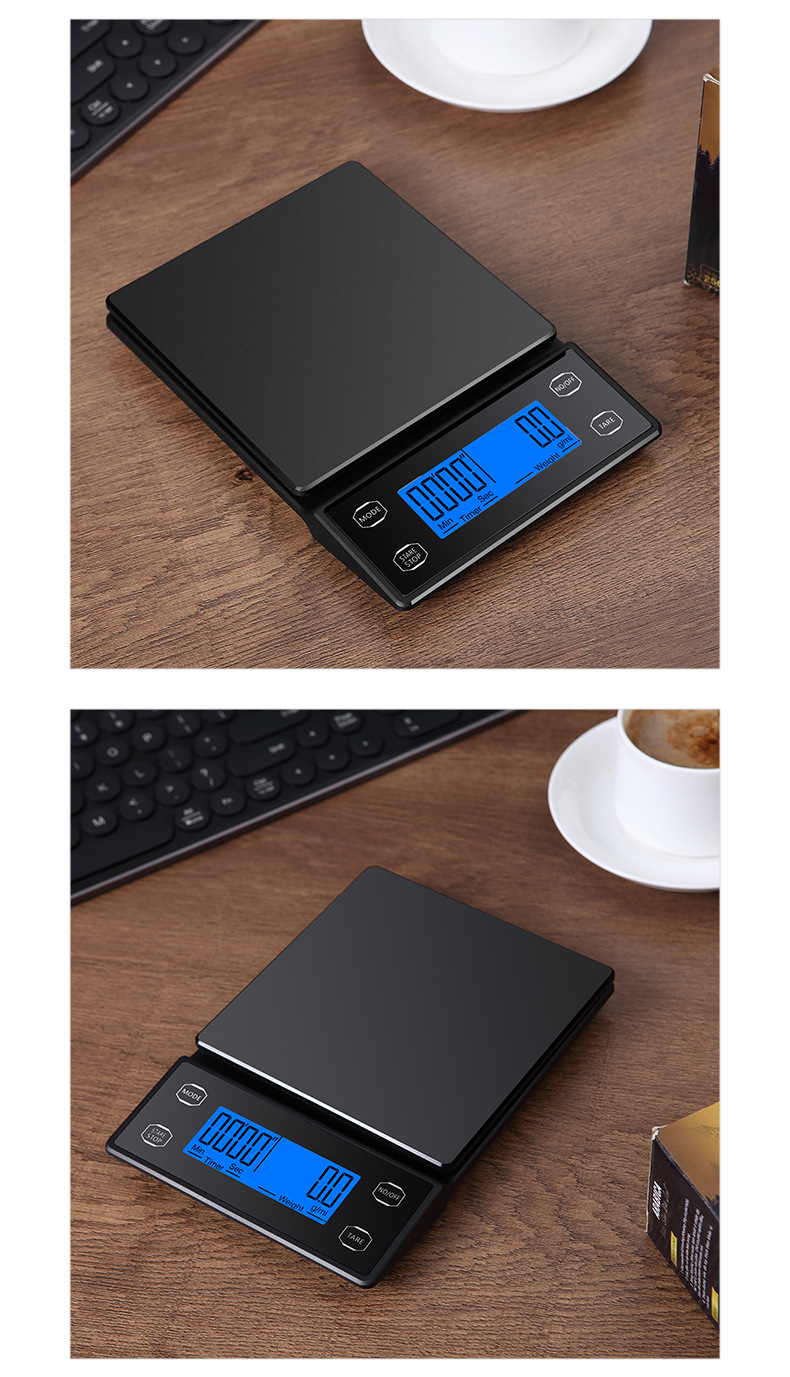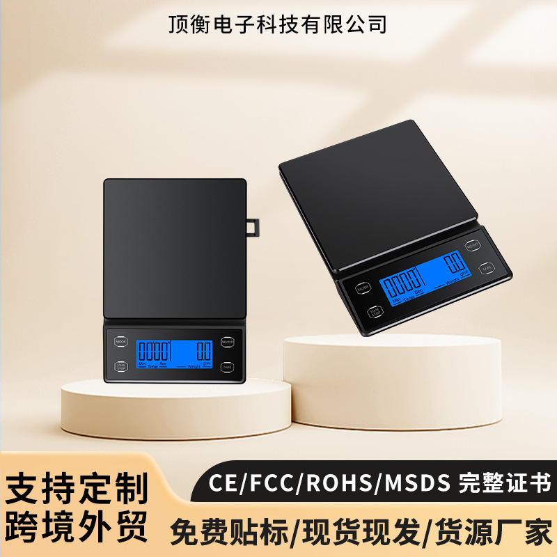 국경 간 신제품 손으로 끓인 커피 스케일 주방 저울 0.1g 베이킹 전자 저울 타이밍 커피 전자 저울 디지털 디스플레이