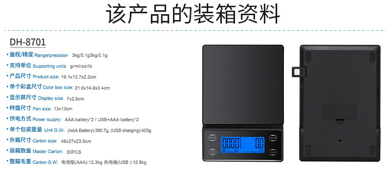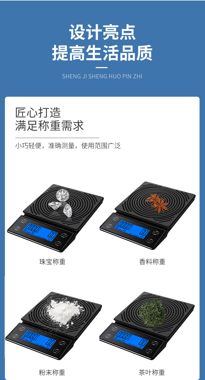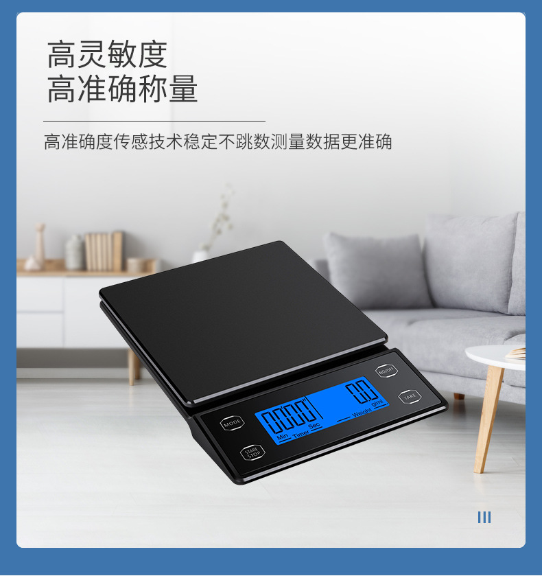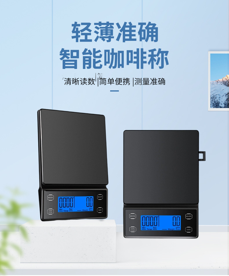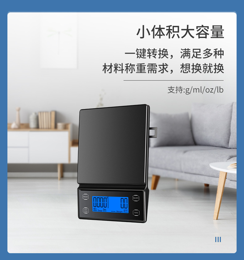 국경 간 신제품 손으로 끓인 커피 스케일 주방 저울 0.1g 베이킹 전자 저울 타이밍 커피 전자 저울 디지털 디스플레이