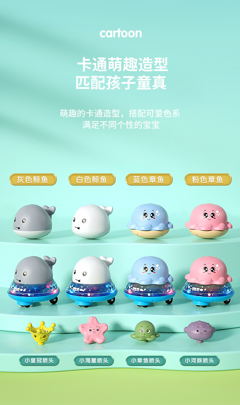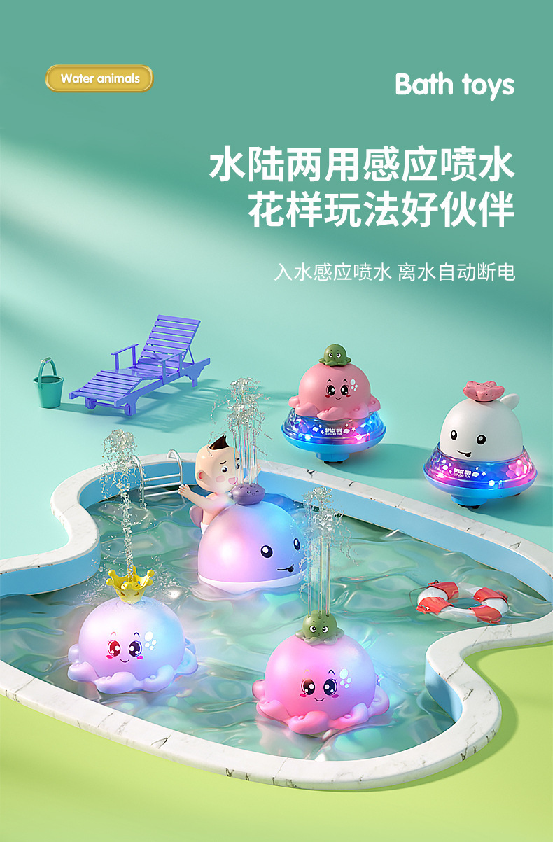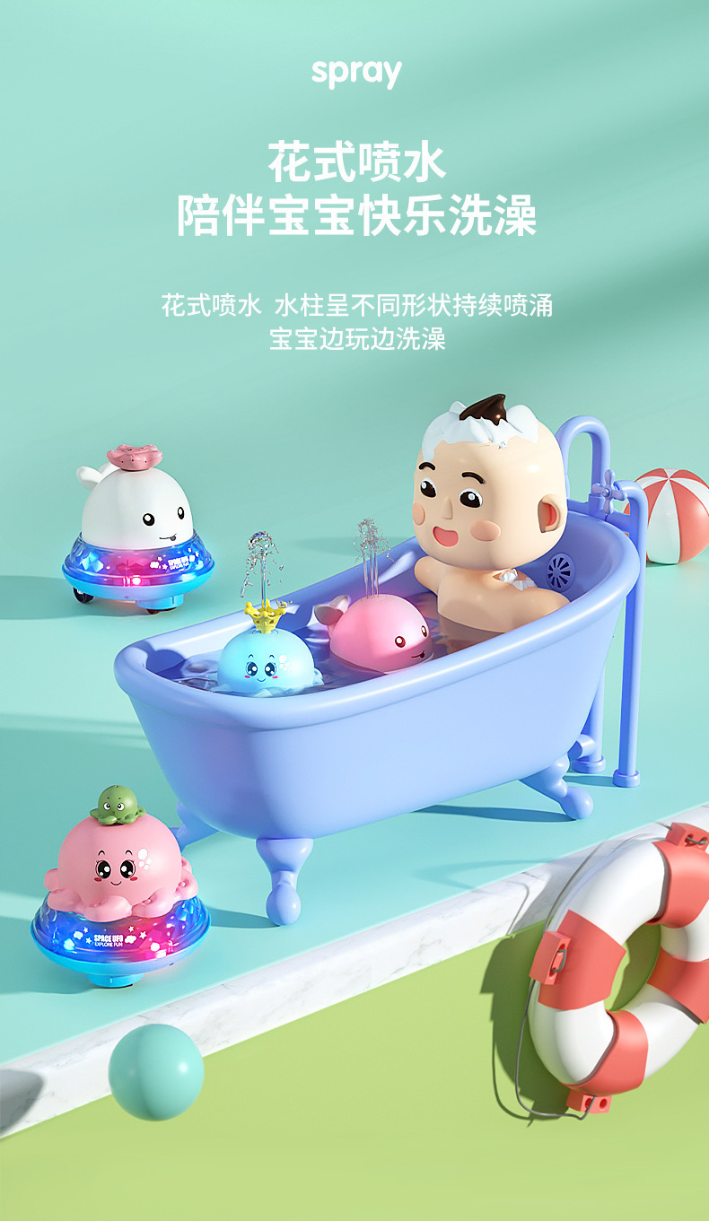 국경 간 전기 유도 물 스프레이 고래 목욕 장난감 어린이 목욕 유도 물 공 아기 욕실 물 스프레이 공스토어 가기
