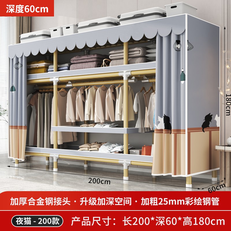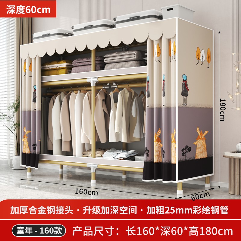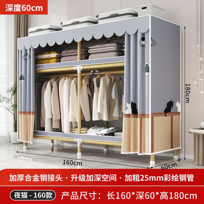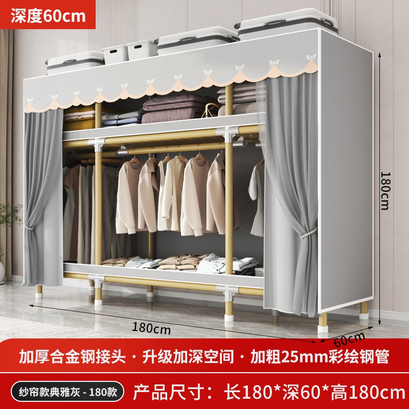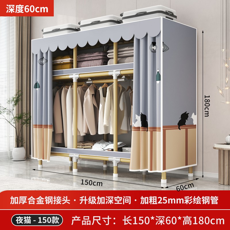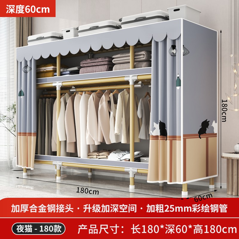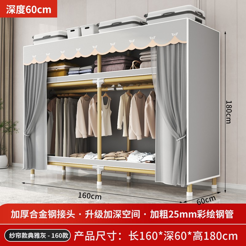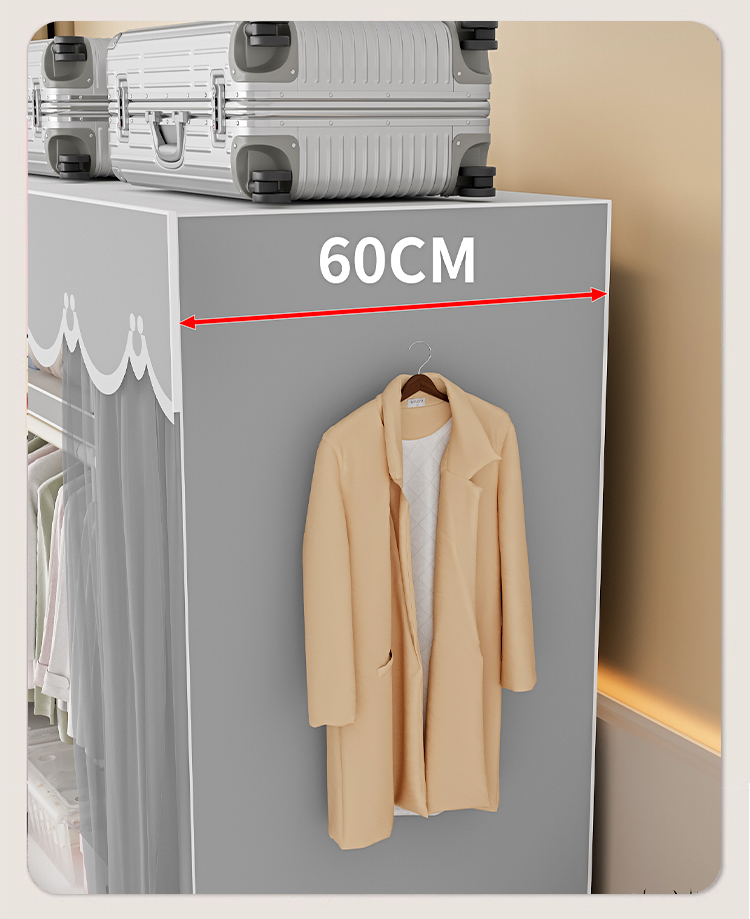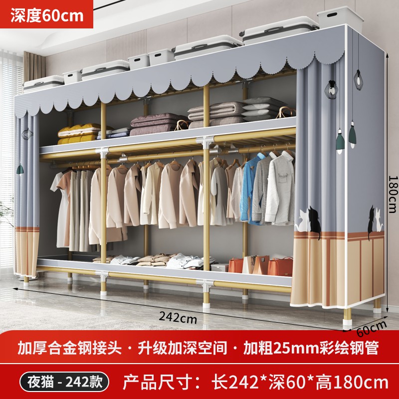 가정용 침실을 위한 간단한 옷장, 견고하고 내구성이 뛰어난 임대 주택 조립식 천 옷장, 전체 강철 프레임, 두껍고 두꺼운 보관 캐비닛