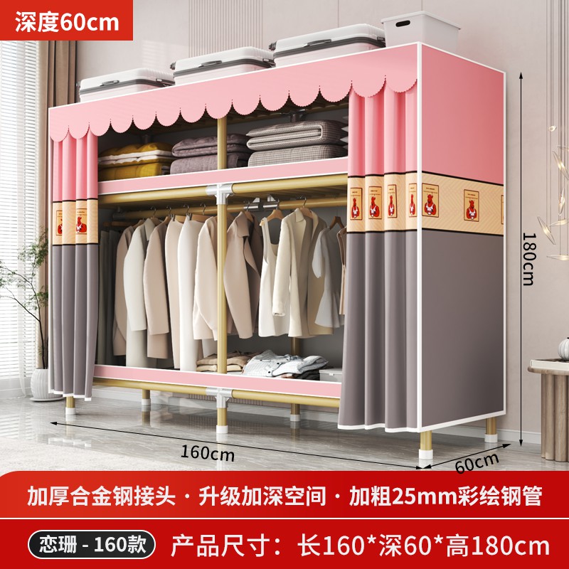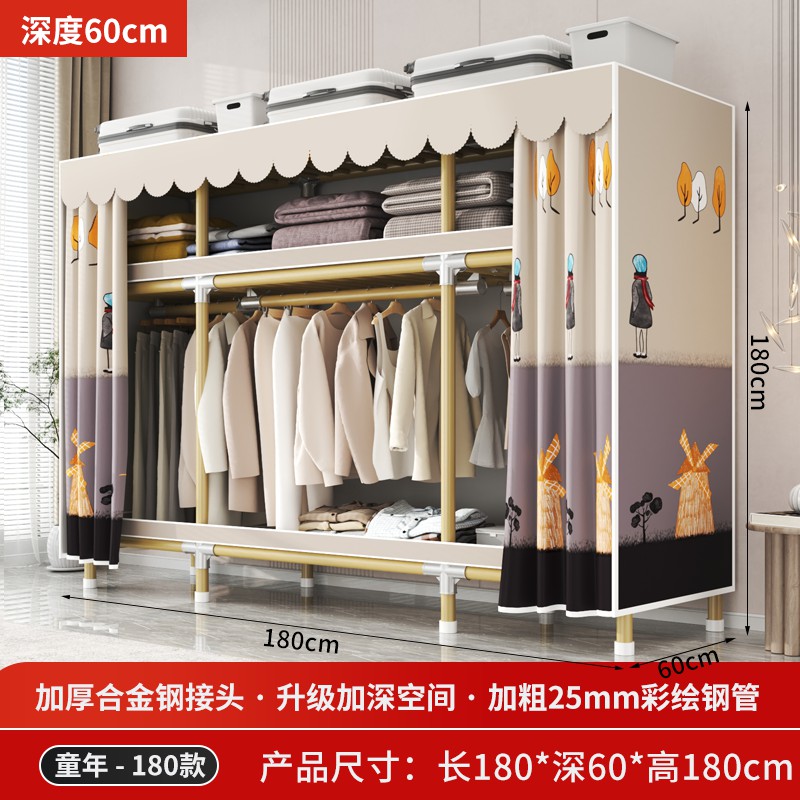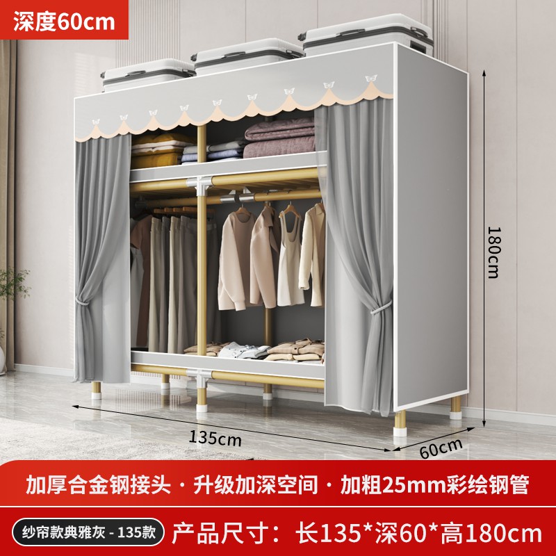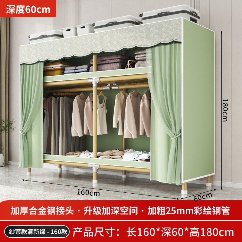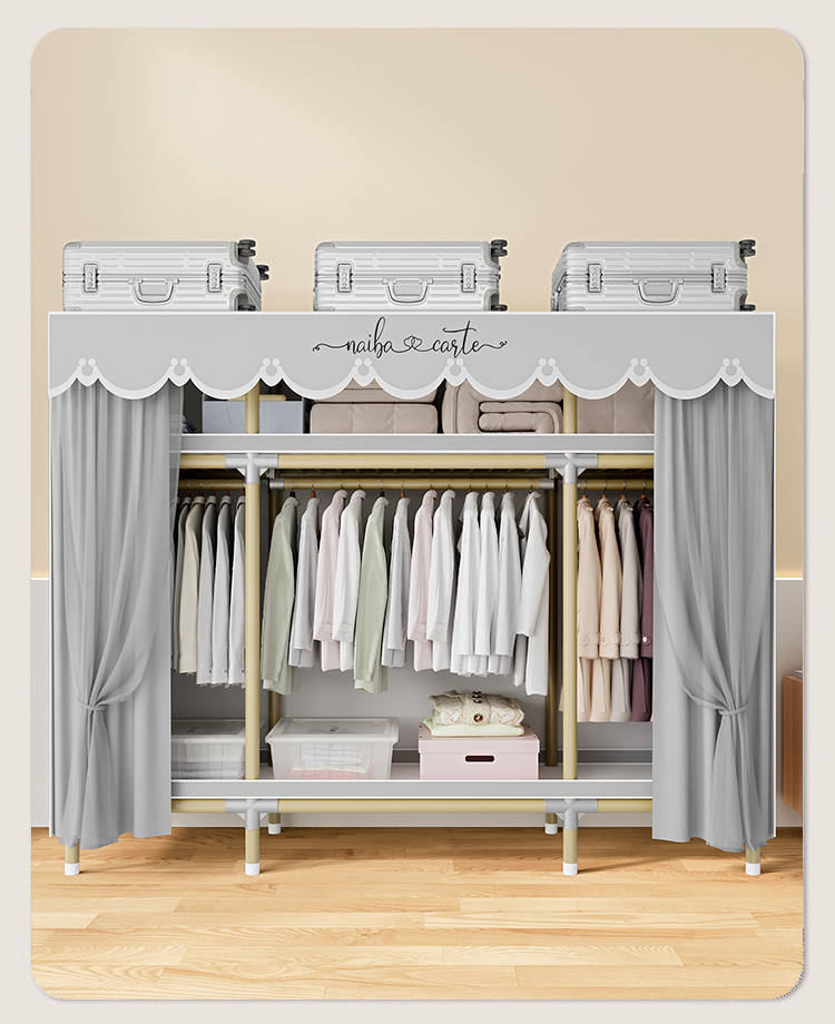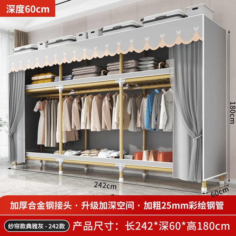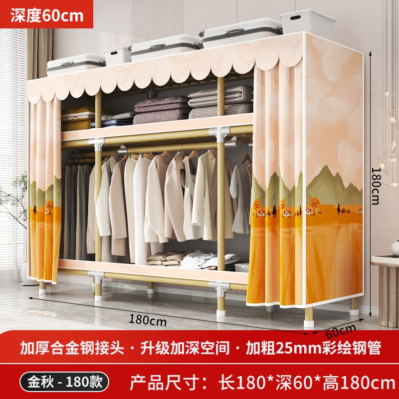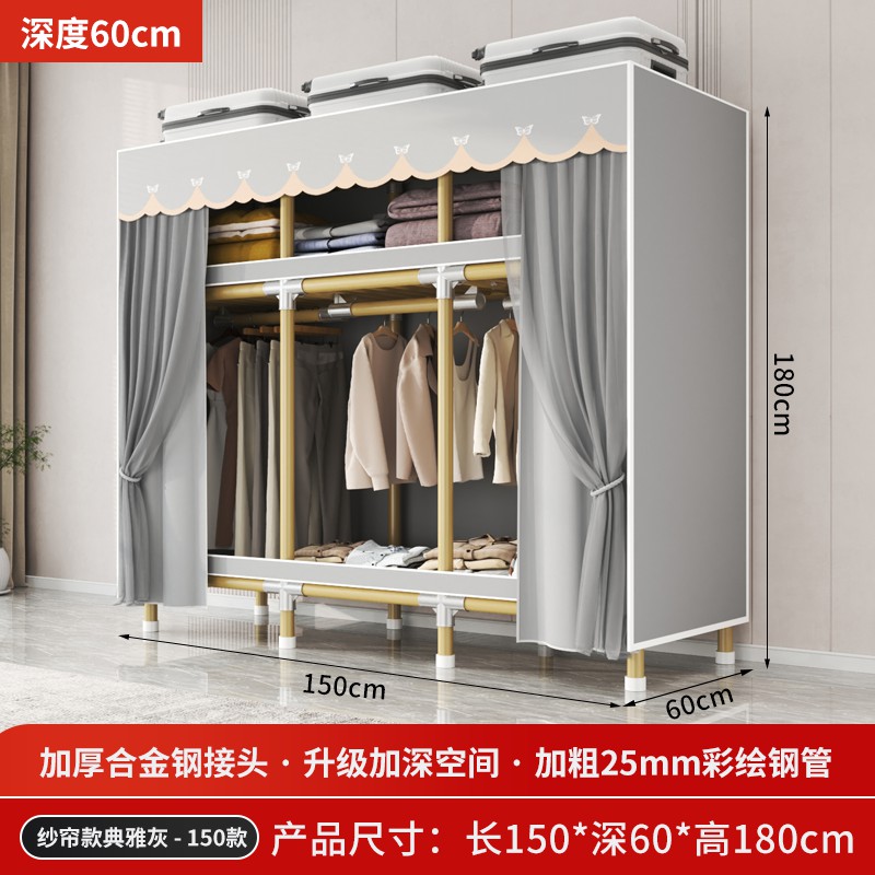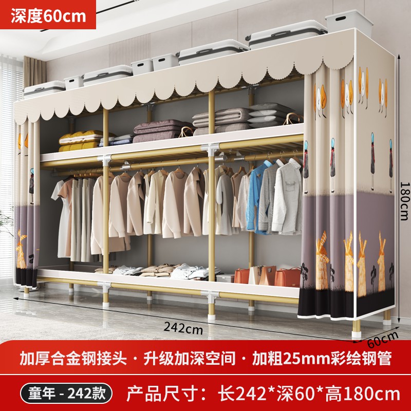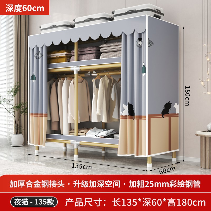 가정용 침실을 위한 간단한 옷장, 견고하고 내구성이 뛰어난 임대 주택 조립식 천 옷장, 전체 강철 프레임, 두껍고 두꺼운 보관 캐비닛