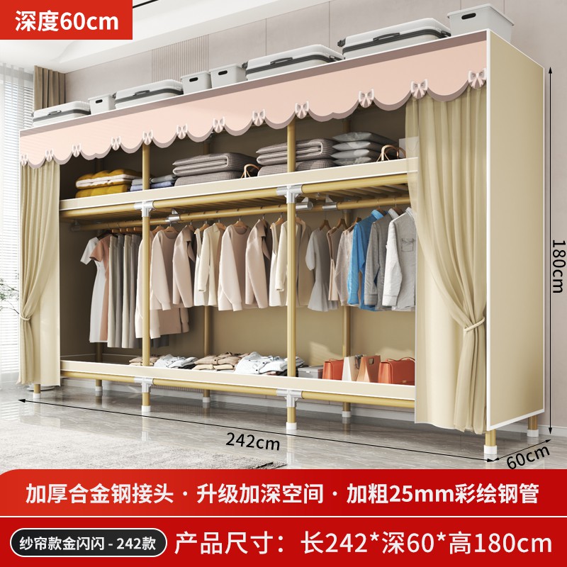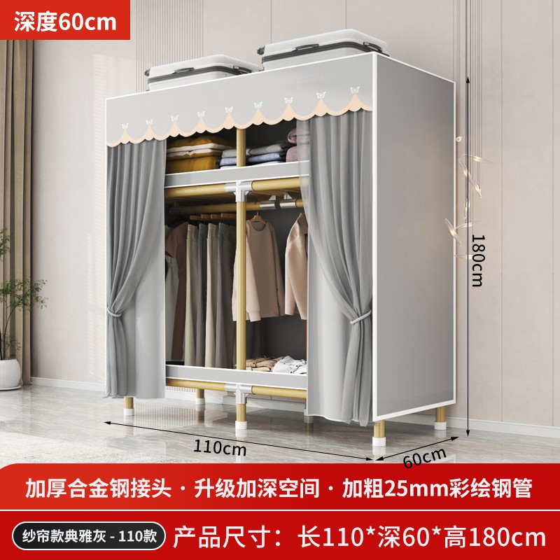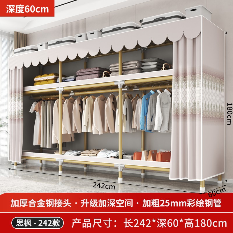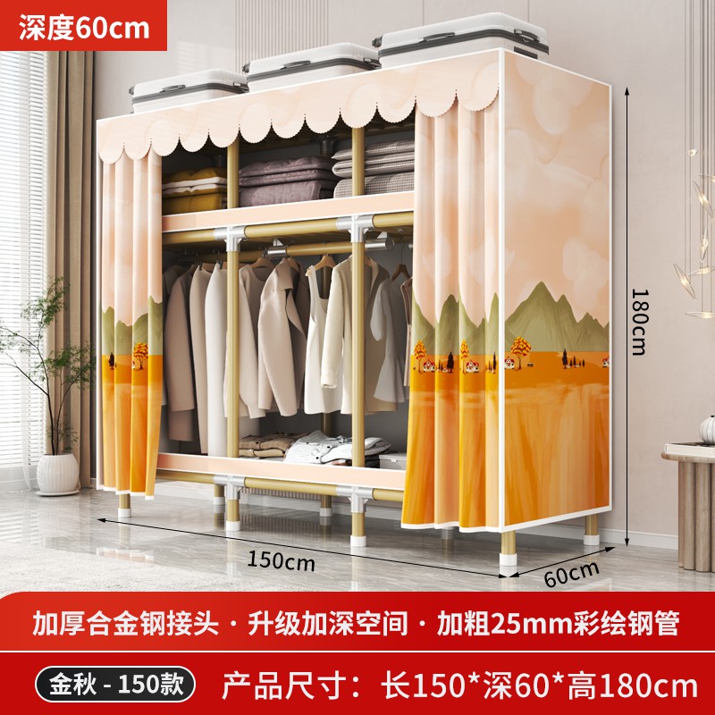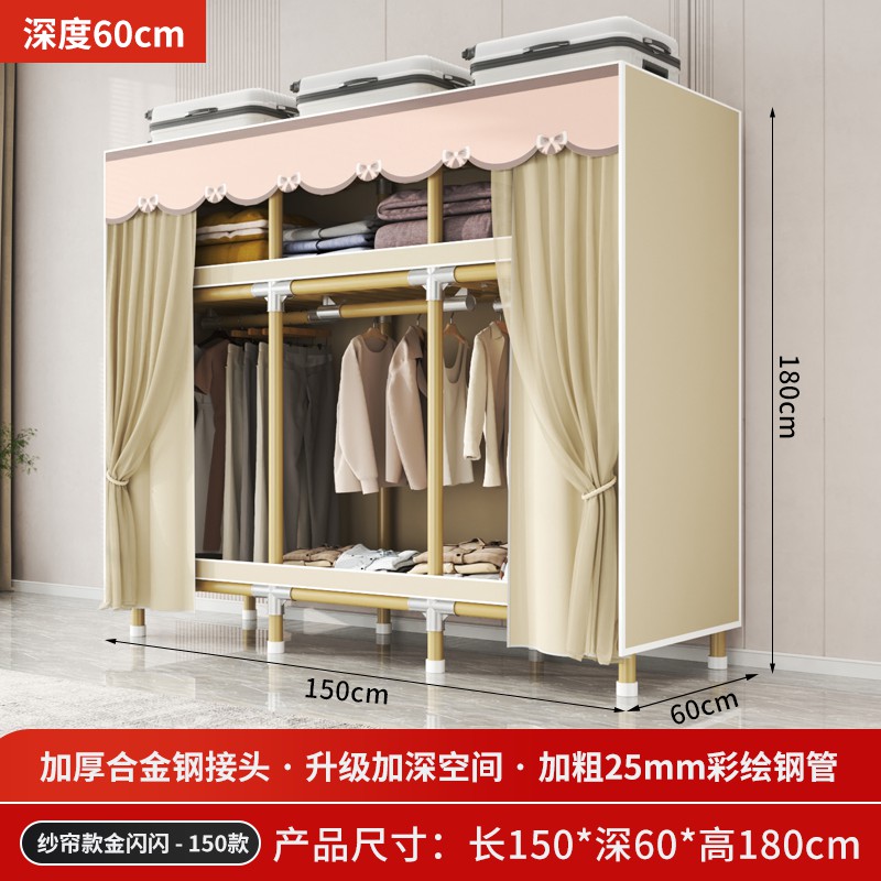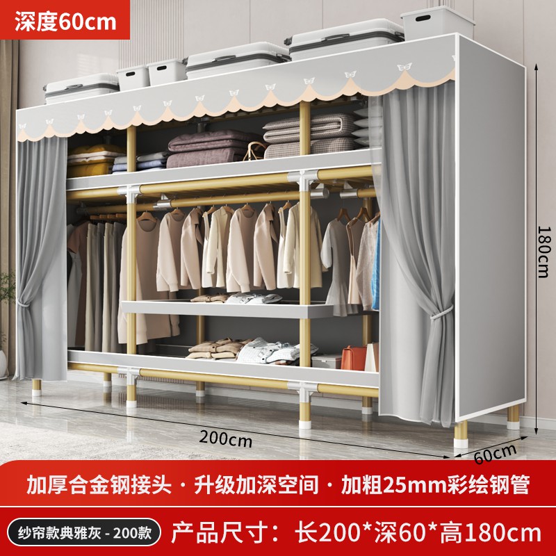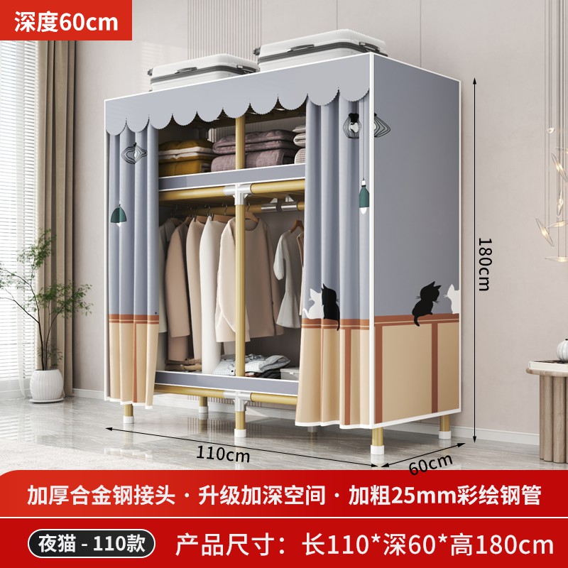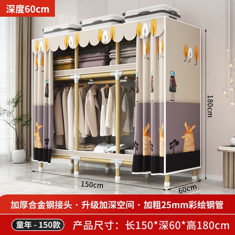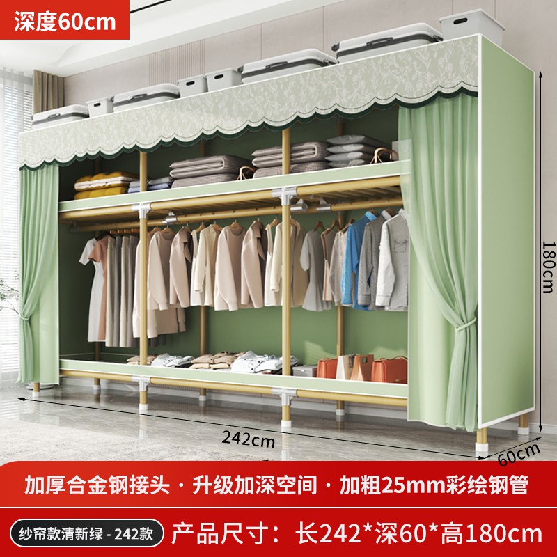가정용 침실을 위한 간단한 옷장, 견고하고 내구성이 뛰어난 임대 주택 조립식 천 옷장, 전체 강철 프레임, 두껍고 두꺼운 보관 캐비닛