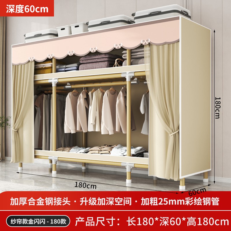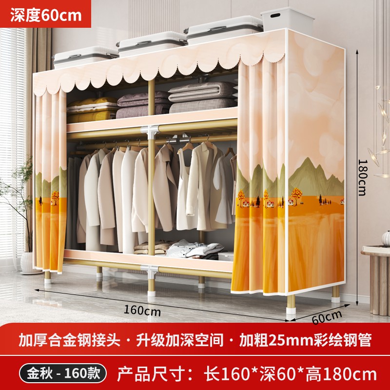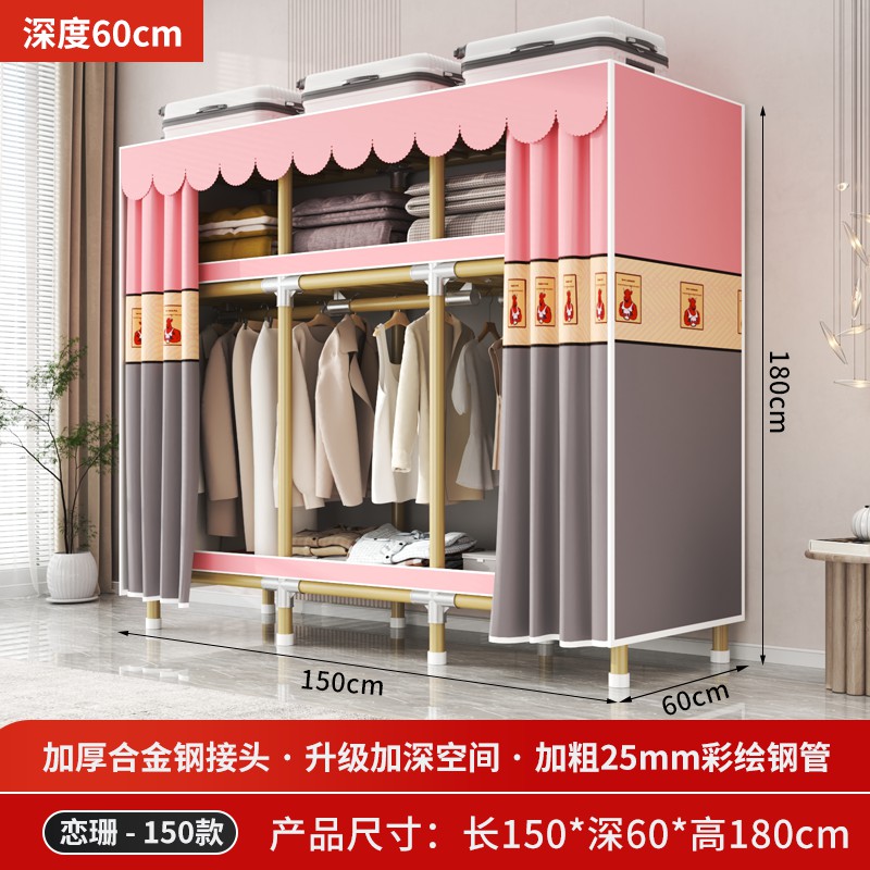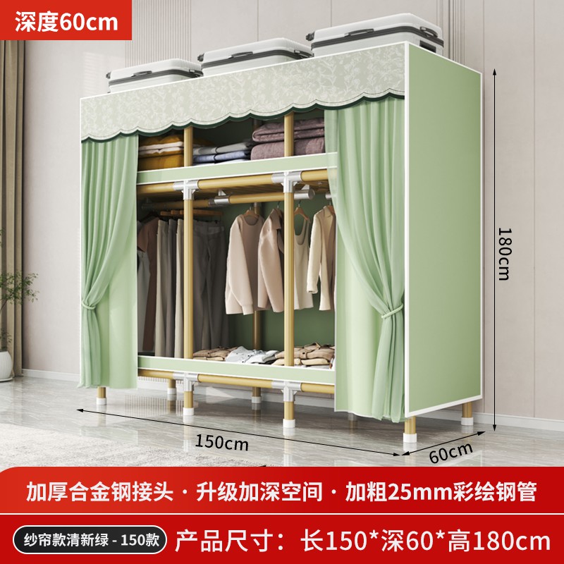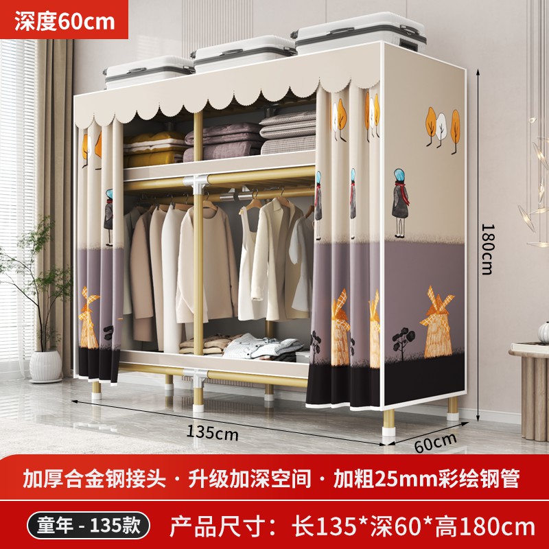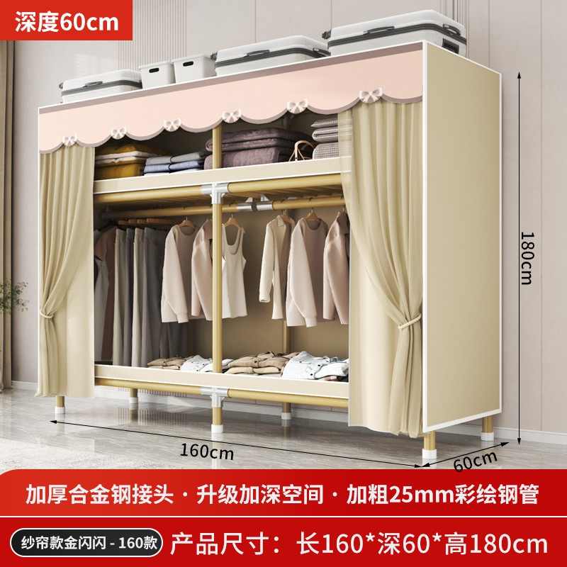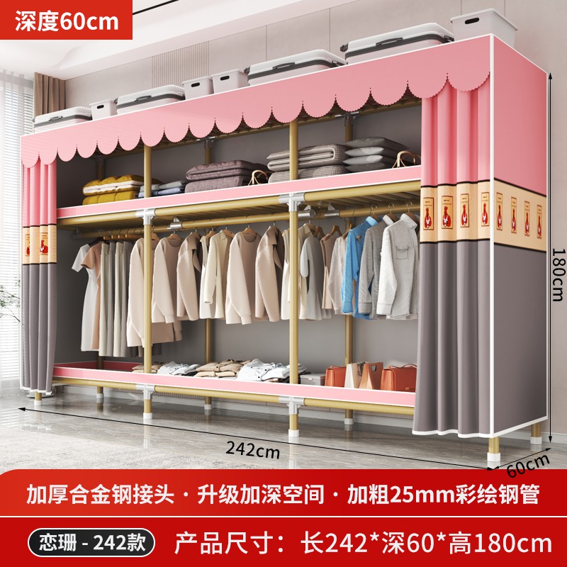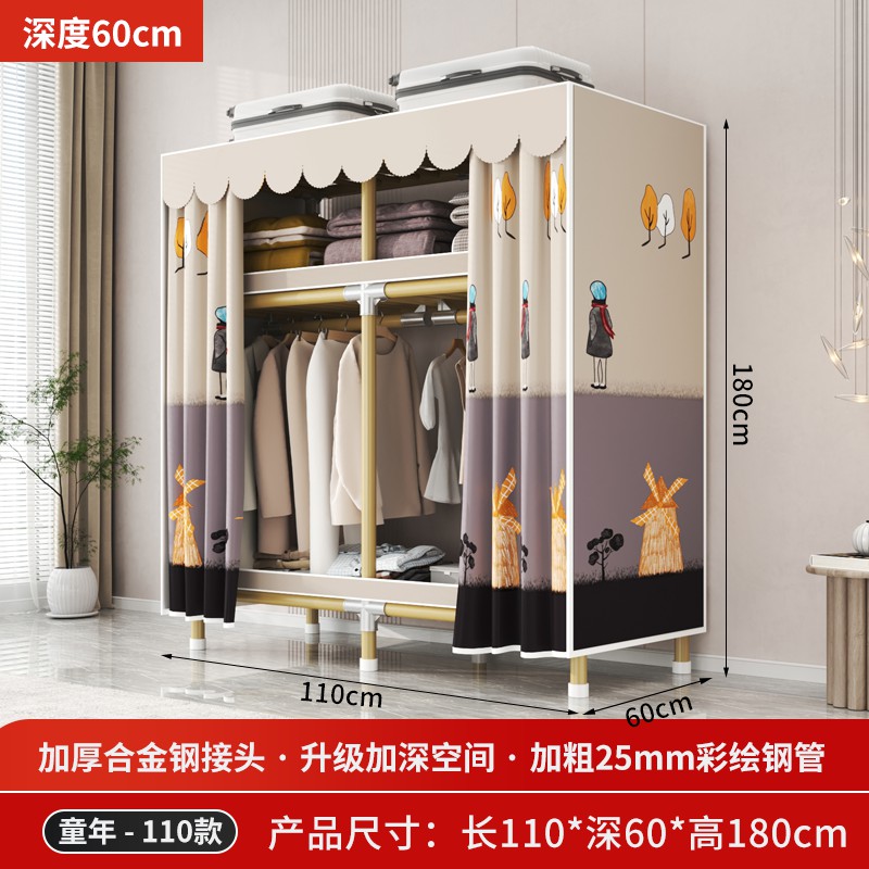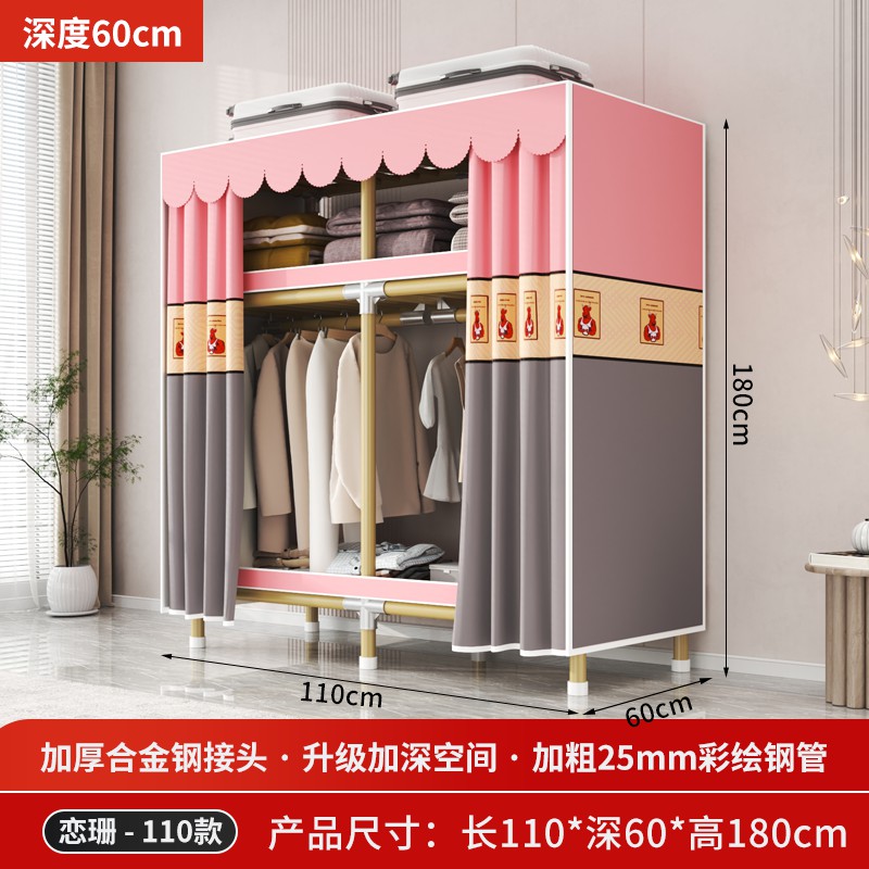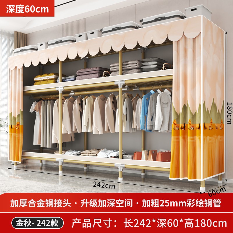 가정용 침실을 위한 간단한 옷장, 견고하고 내구성이 뛰어난 임대 주택 조립식 천 옷장, 전체 강철 프레임, 두껍고 두꺼운 보관 캐비닛