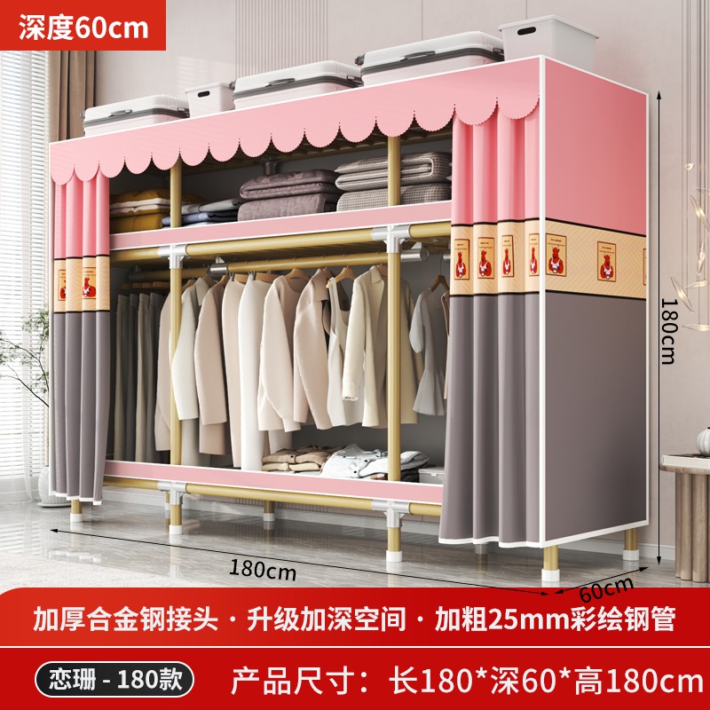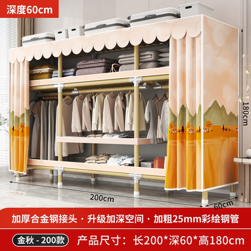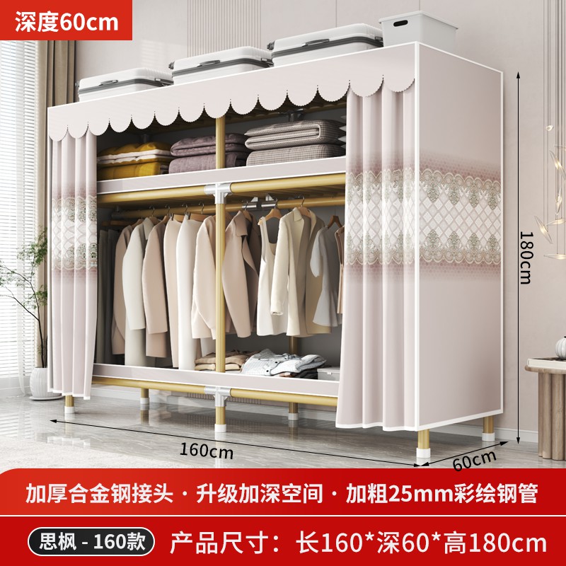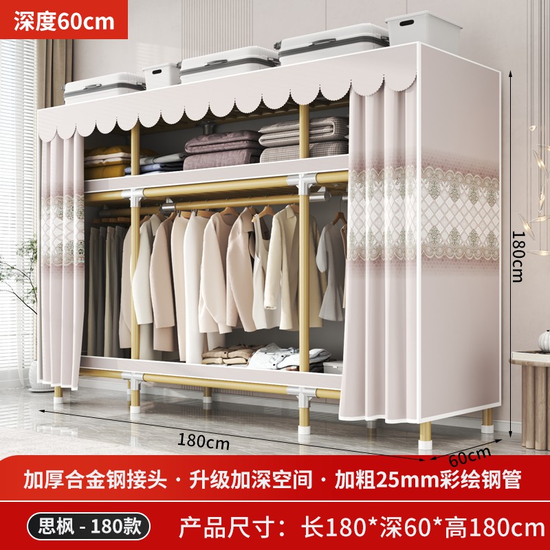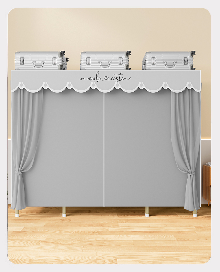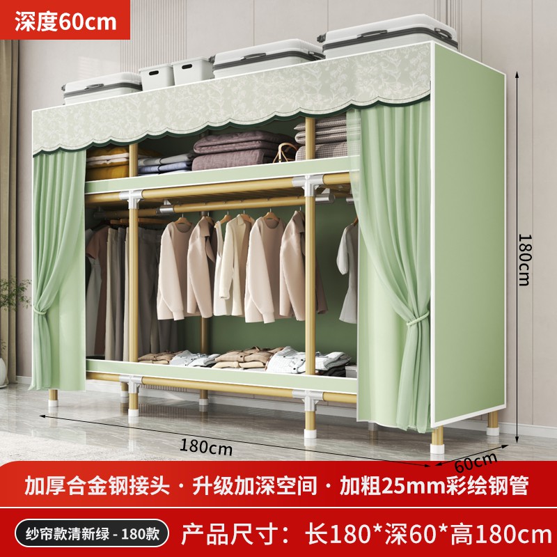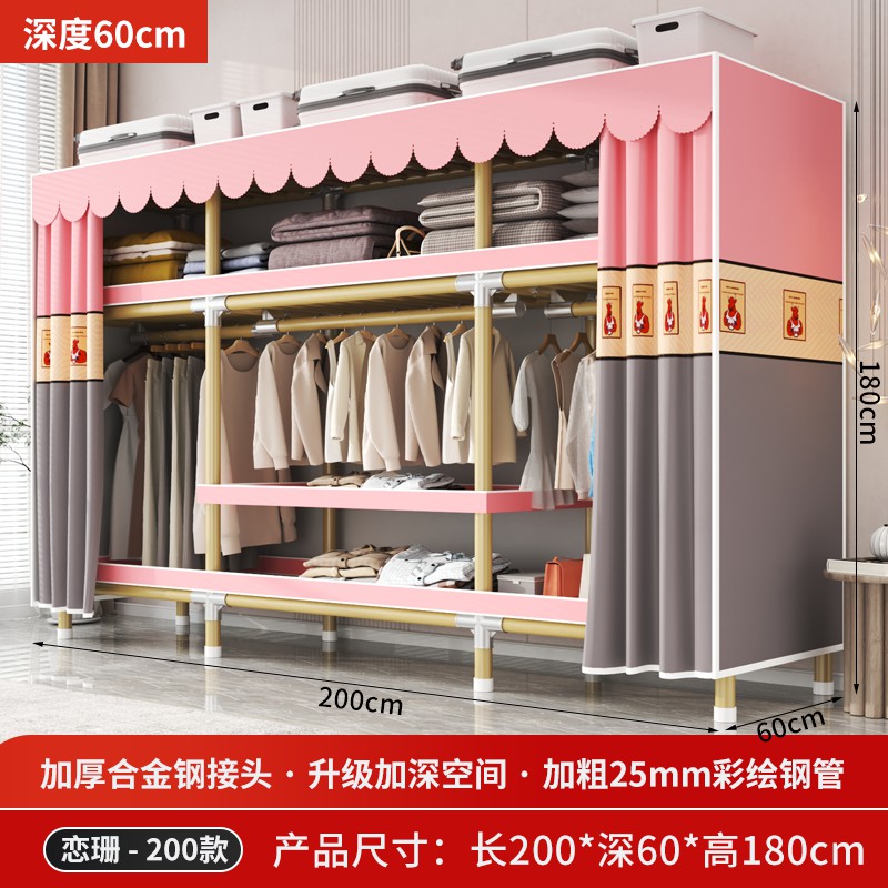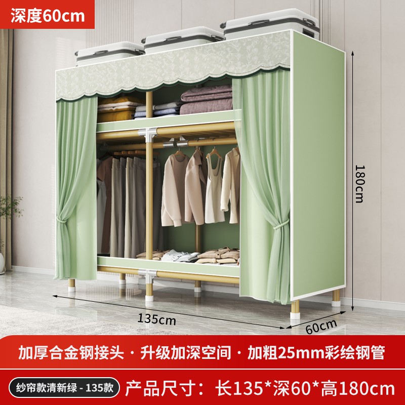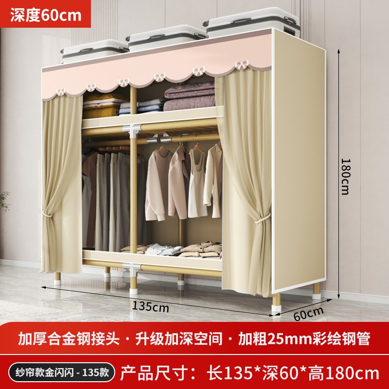 가정용 침실을 위한 간단한 옷장, 견고하고 내구성이 뛰어난 임대 주택 조립식 천 옷장, 전체 강철 프레임, 두껍고 두꺼운 보관 캐비닛