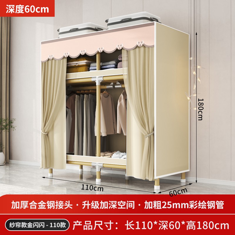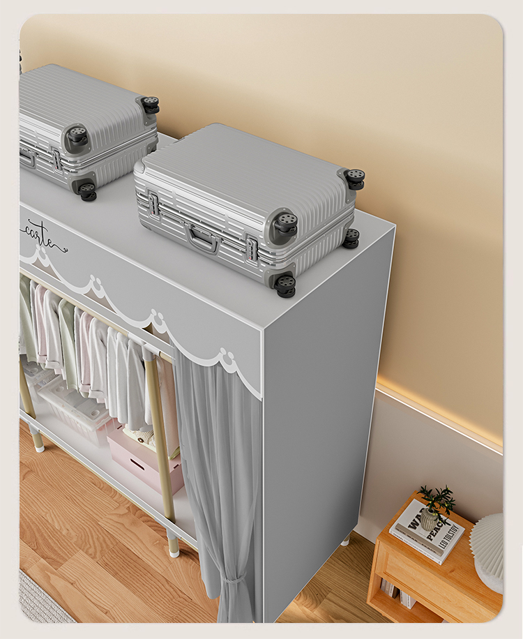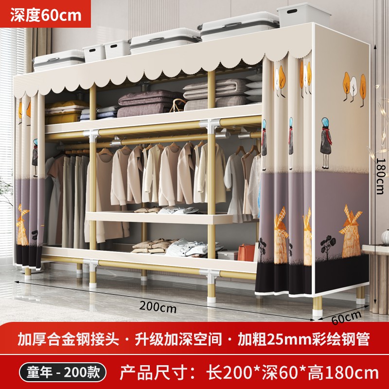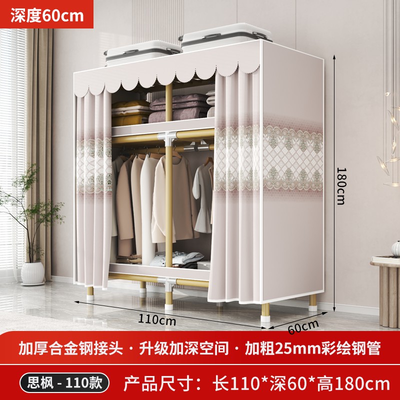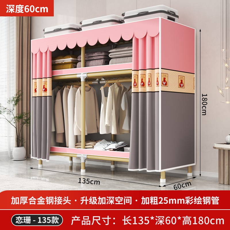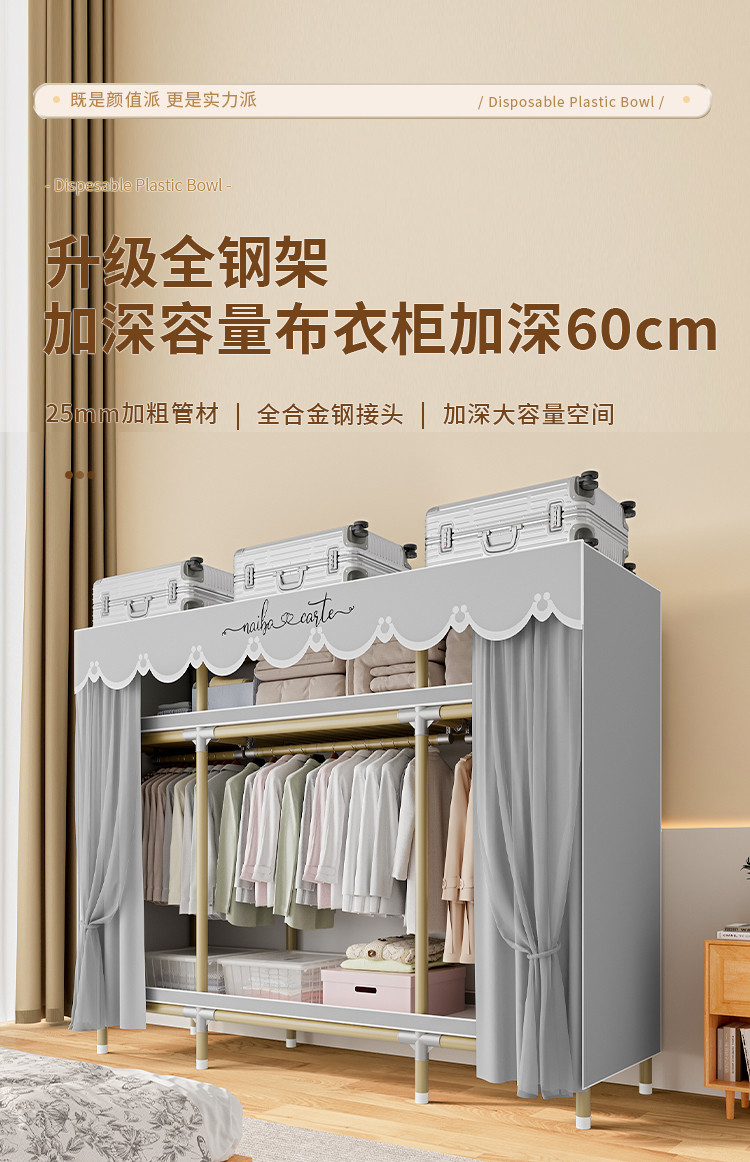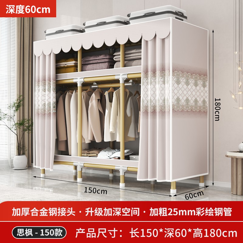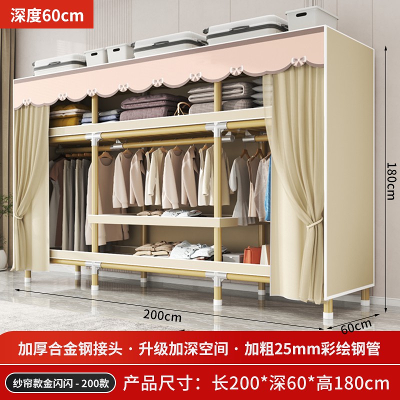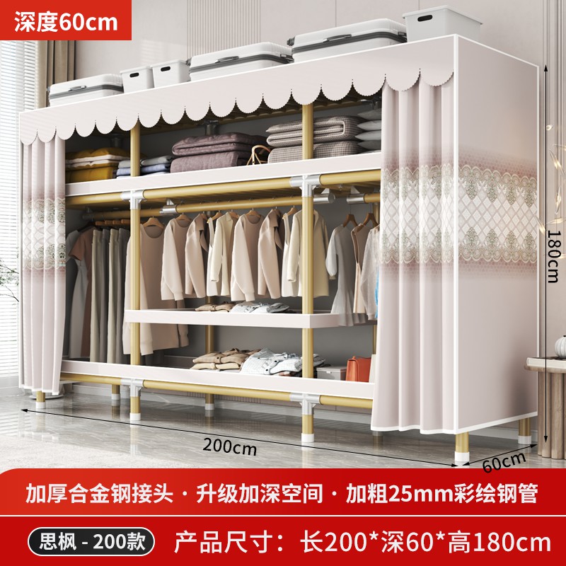 가정용 침실을 위한 간단한 옷장, 견고하고 내구성이 뛰어난 임대 주택 조립식 천 옷장, 전체 강철 프레임, 두껍고 두꺼운 보관 캐비닛