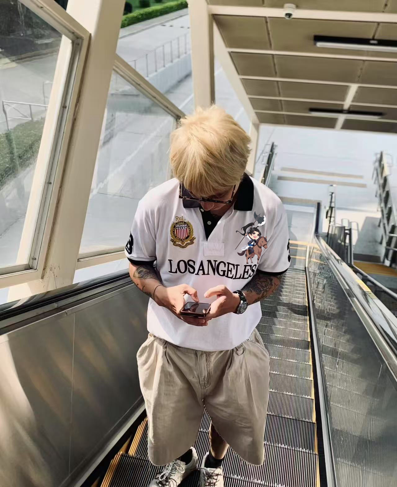 여름용 크로스보더 대마시티 스타일 저지, 아메리칸 스타일 카라 자수 캐주얼 탑, 남성용 빅사이즈 티셔츠 폴로스토어 가기