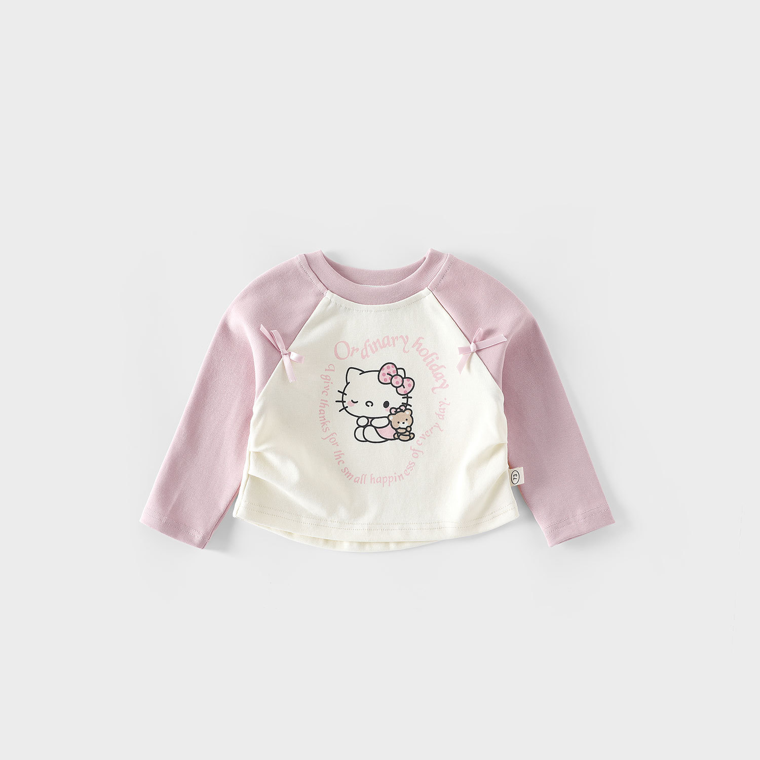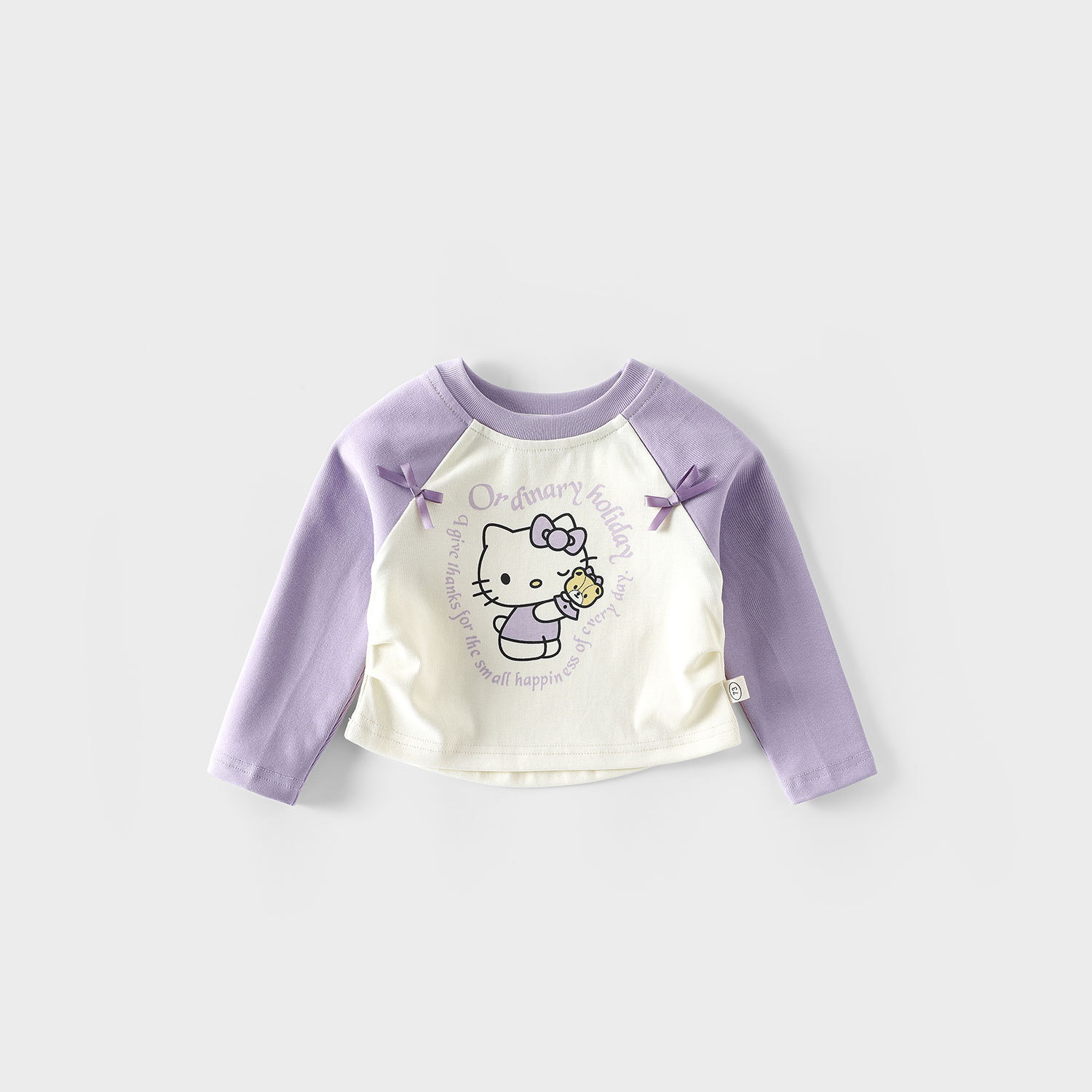 여자 고양이 바닥 셔츠 2025 새로운 가을 아기 스타일 라글란 슬리브 티셔츠 어린이 만화 프린트 탑