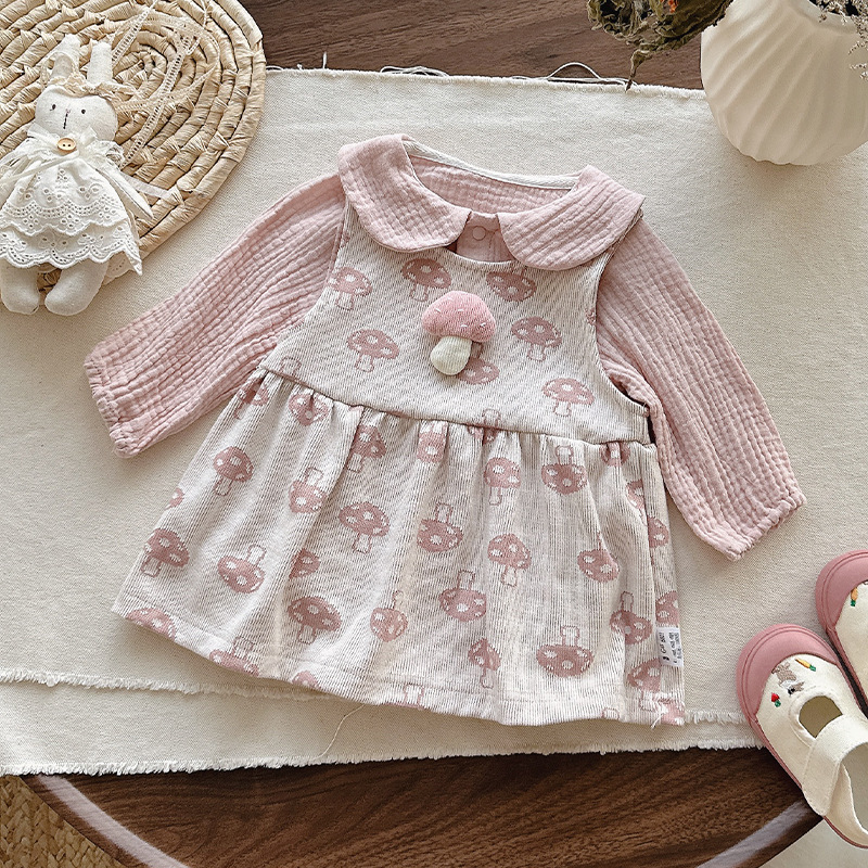 아기 드레스, 가을 순면 셔츠, 공주 드레스 점프 슈트, 세련된 봄, 가을 아기 소녀 외출복