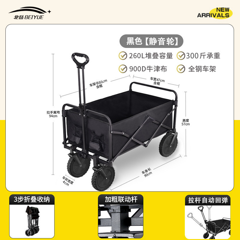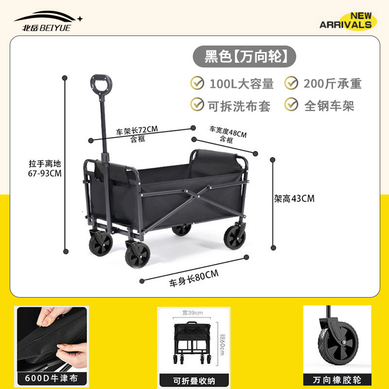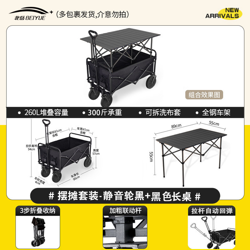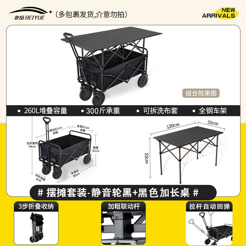 • 블랙 [이중 두꺼운 옥스포드 천] - 대형 / 8inch 고무 바퀴 + 스톨 확장 테이블