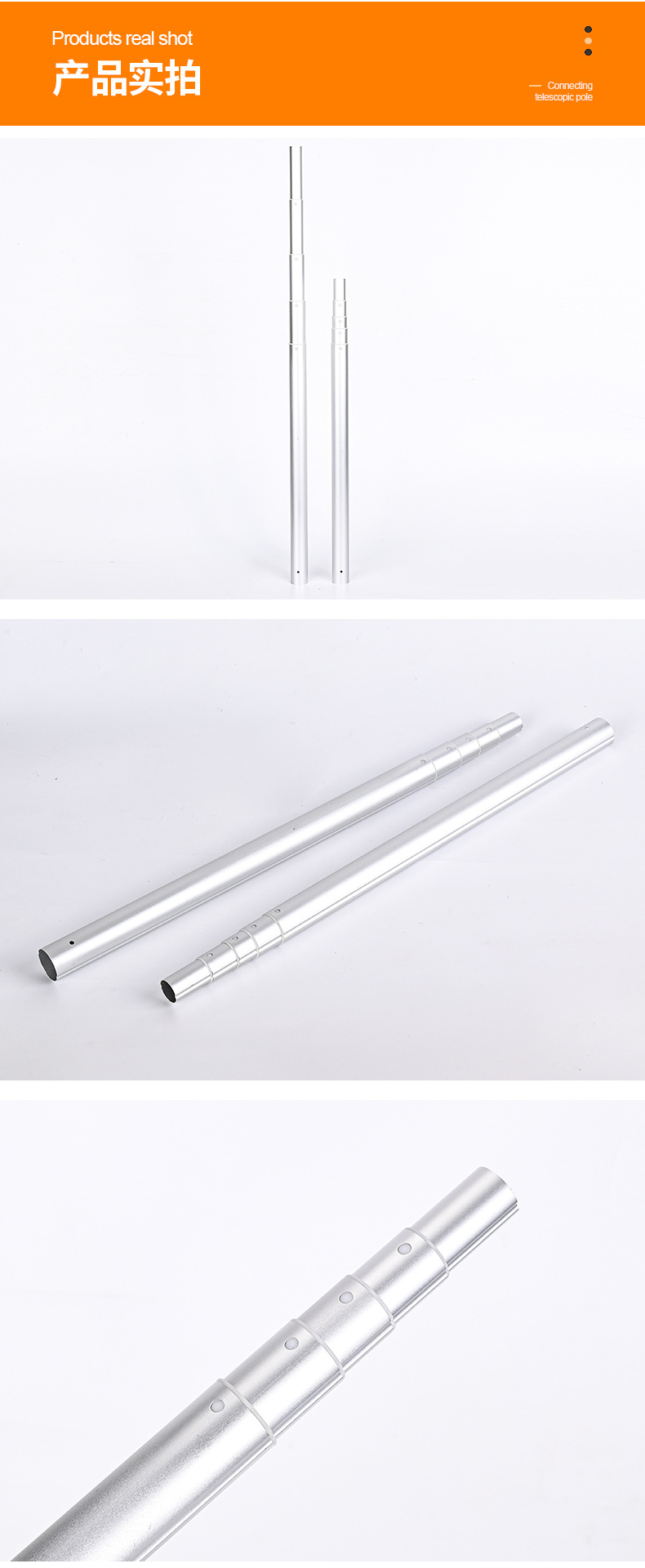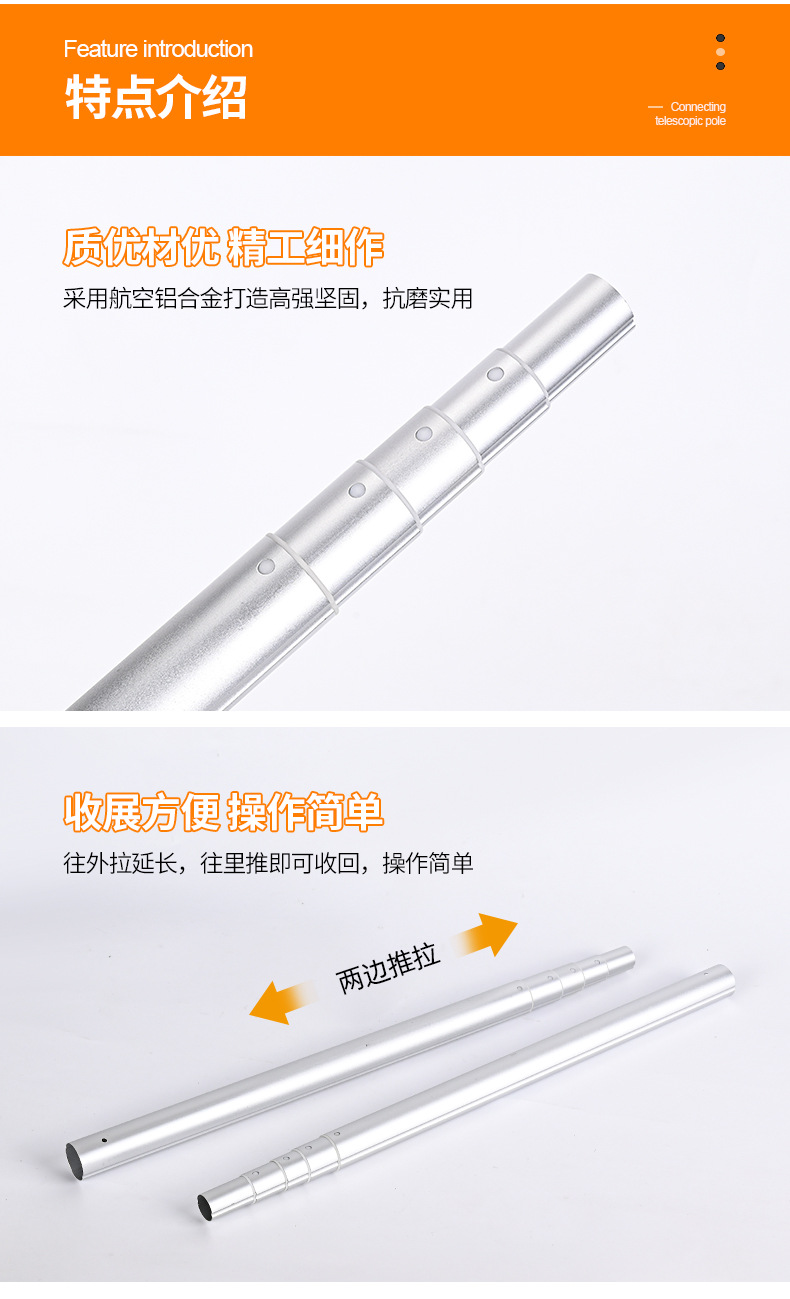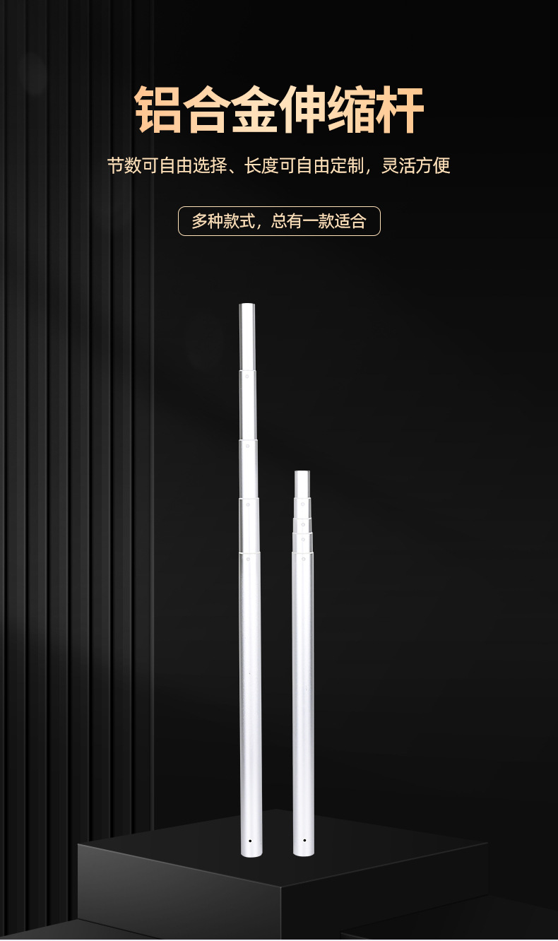 4섹션 휴대폰 홀더, 접이식 팬, 텔레스코픽 로드, 맞춤형 알루미늄 합금 튜브, 셀카봉, 보조 조명 로드