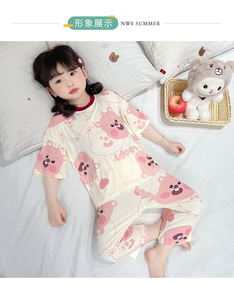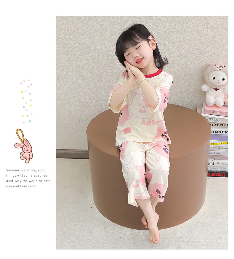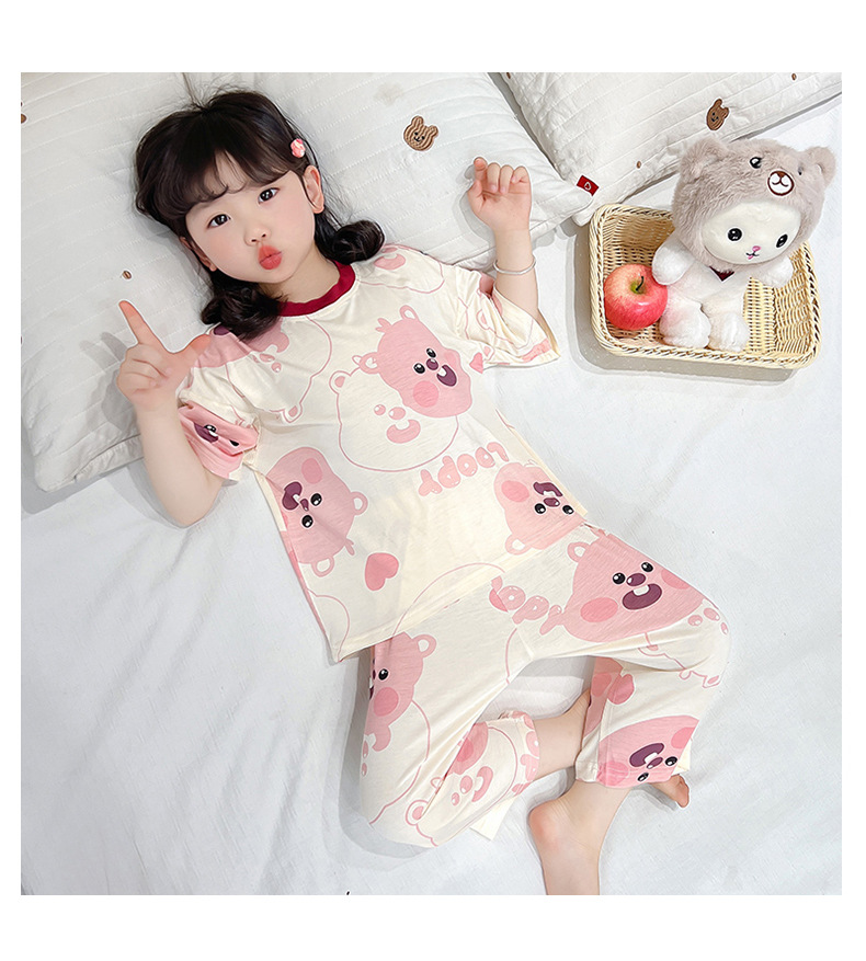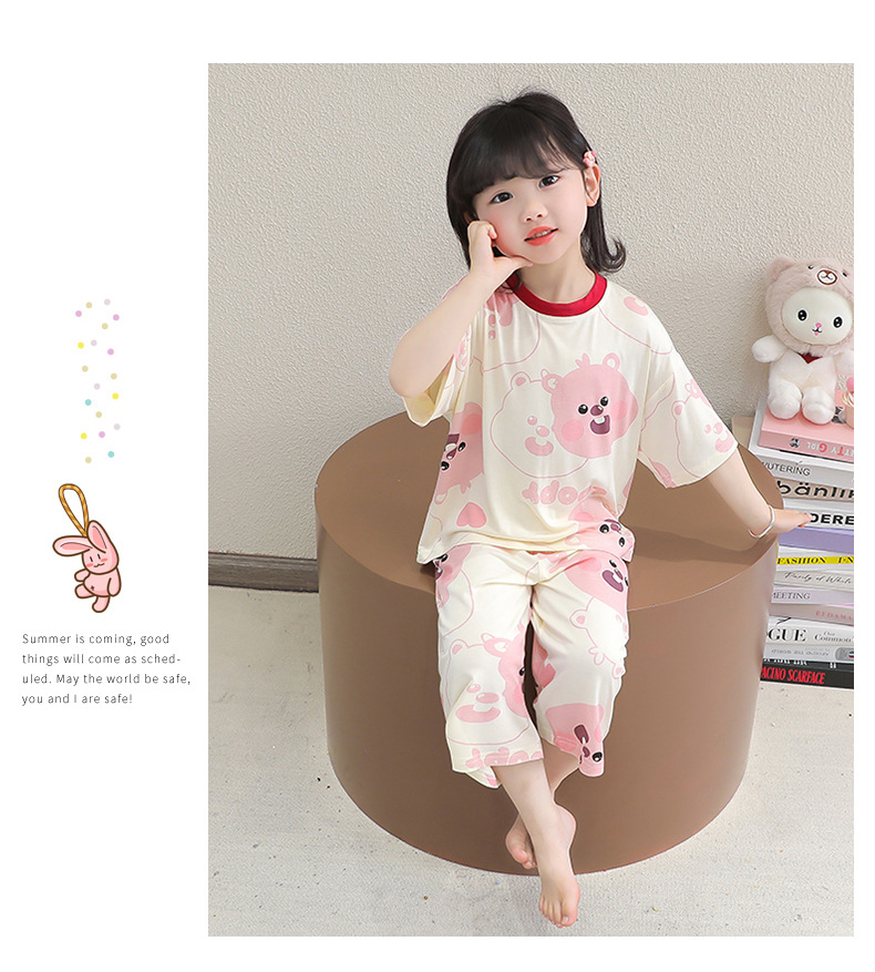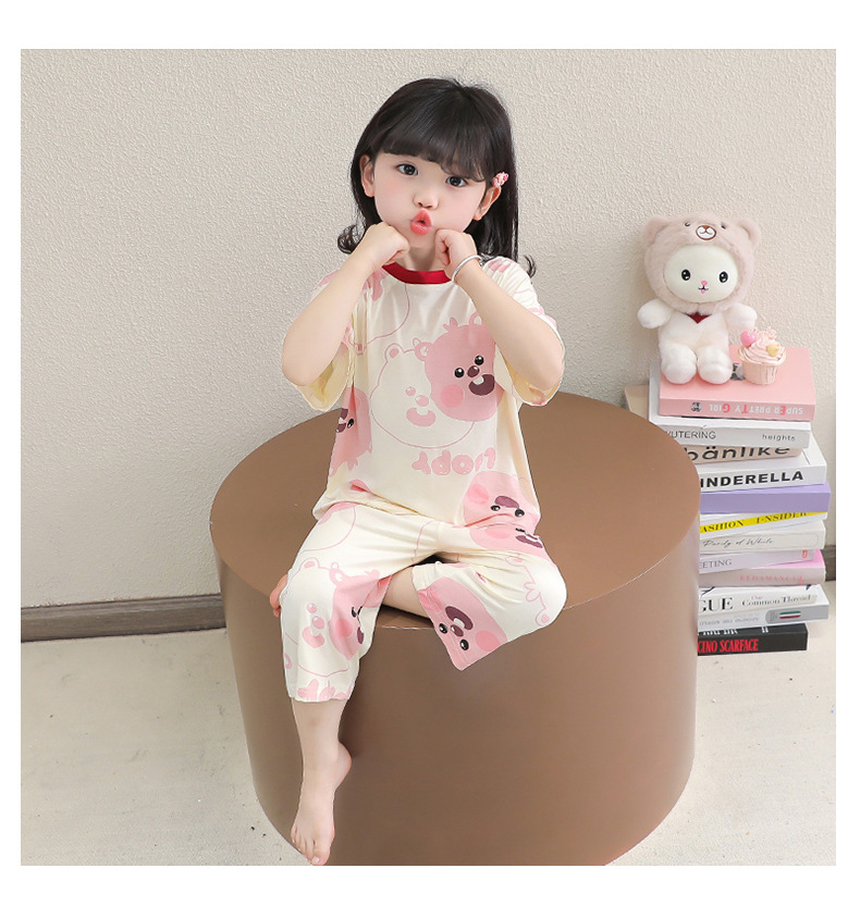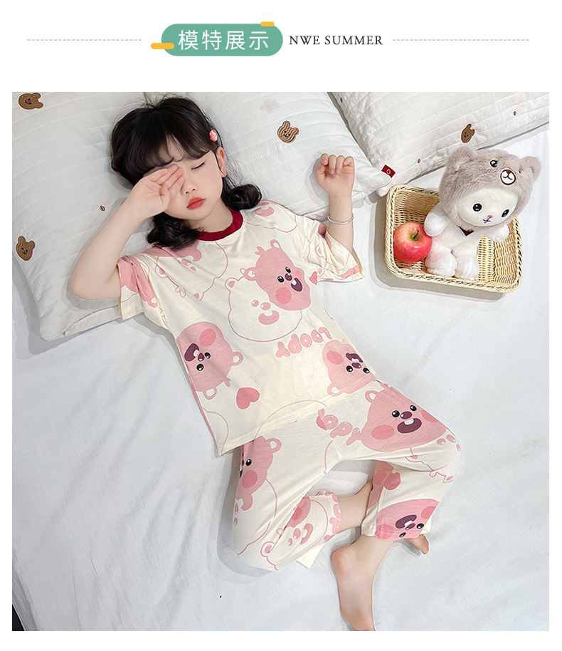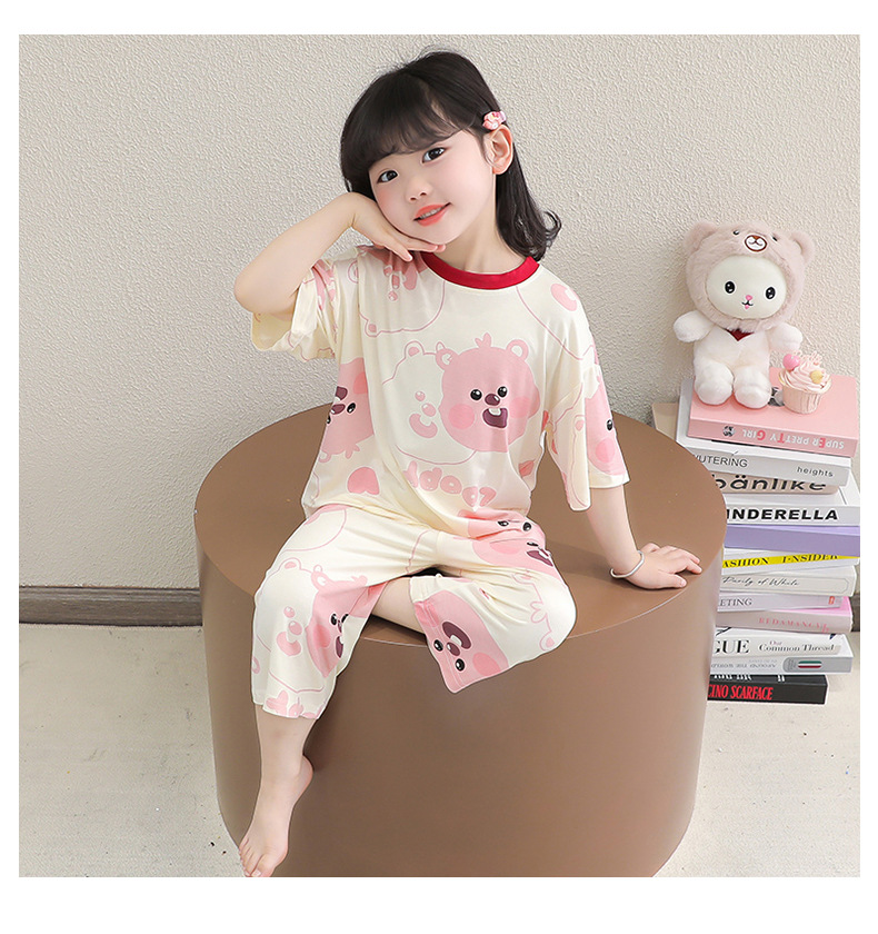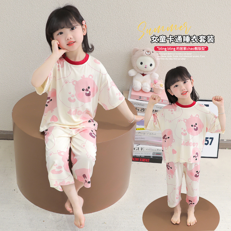 어린이 잠옷 투피스 세트 2026년 신상 봄 여름 얇은 소녀용 반팔 만화 비버 세트 홈웨어스토어 가기