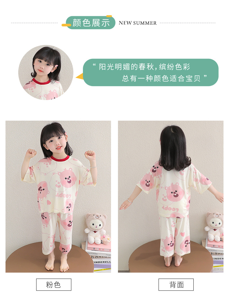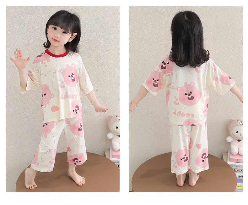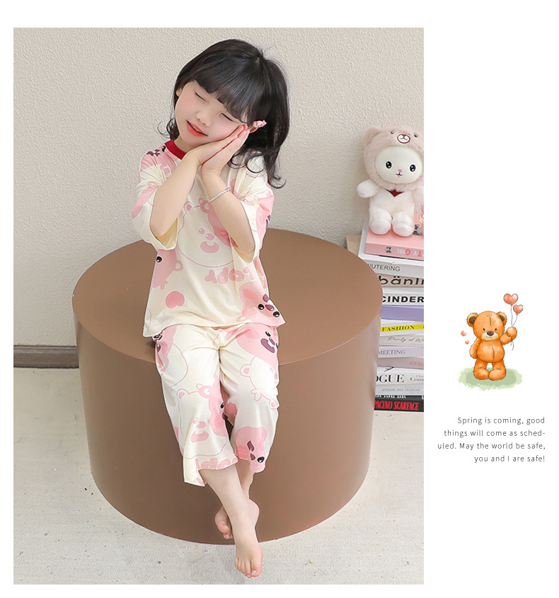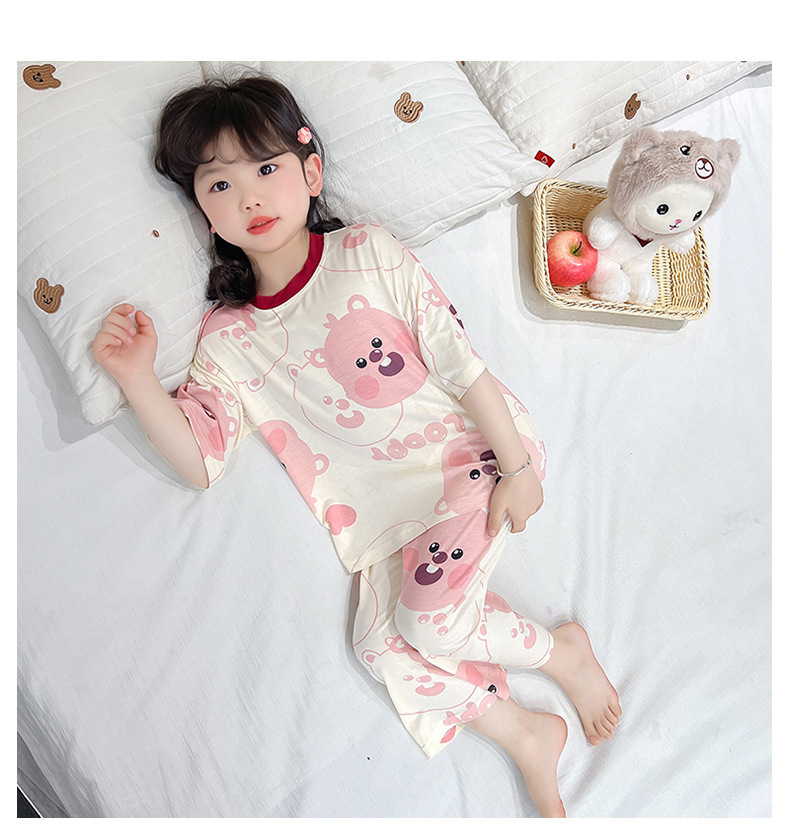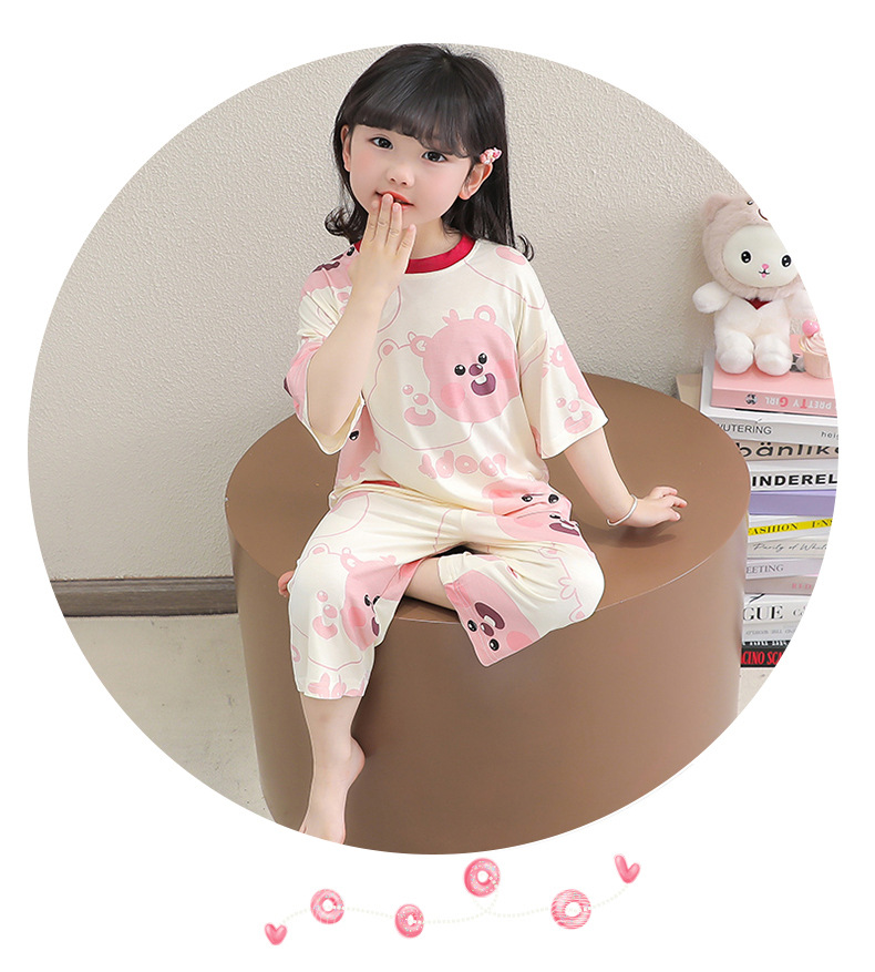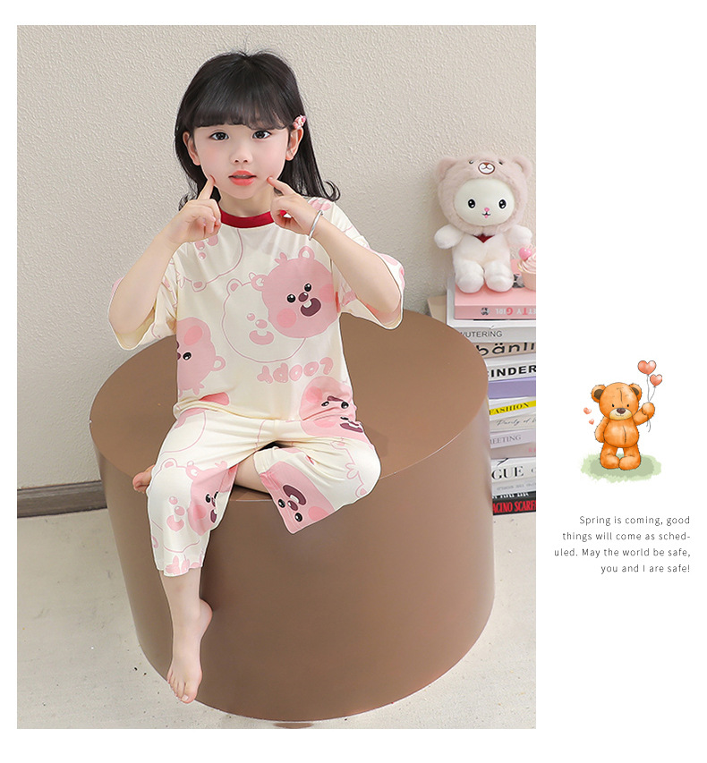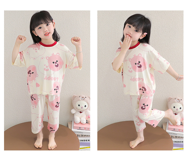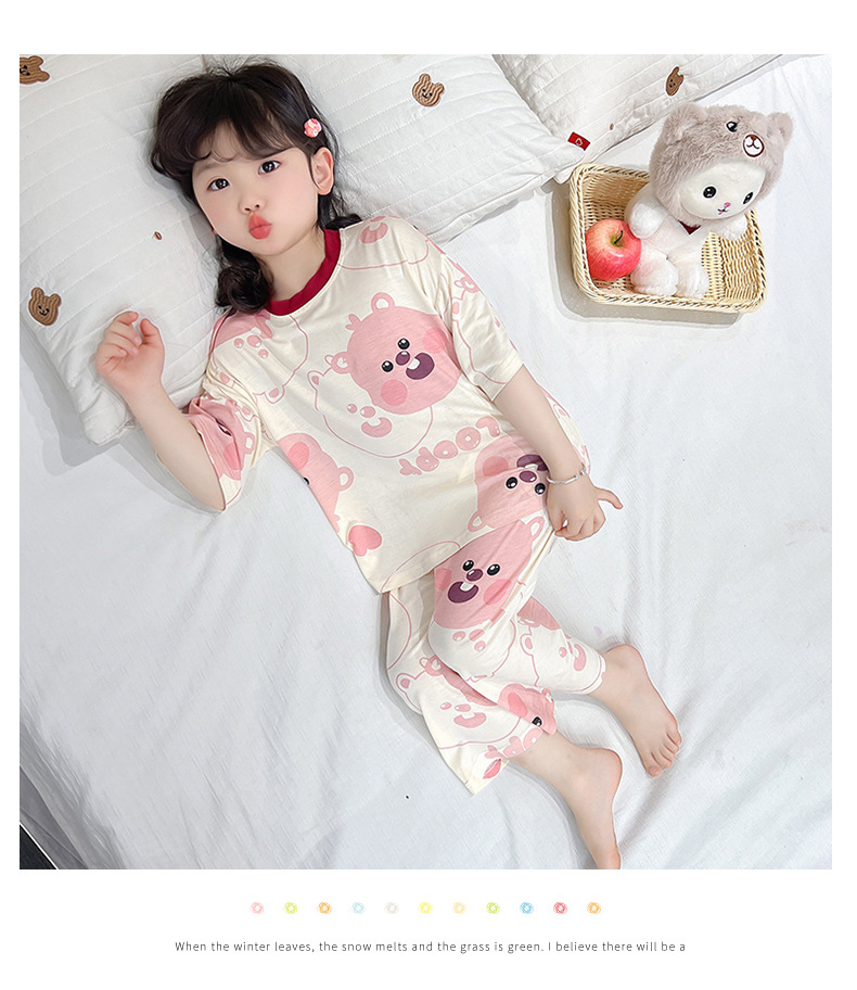 어린이 잠옷 투피스 세트 2026년 신상 봄 여름 얇은 소녀용 반팔 만화 비버 세트 홈웨어스토어 가기