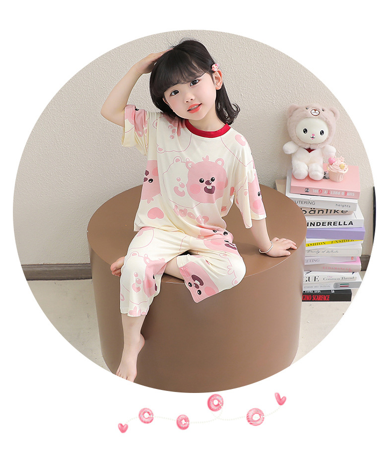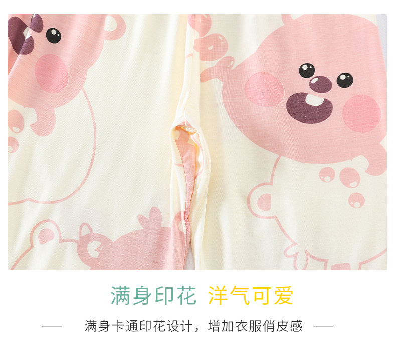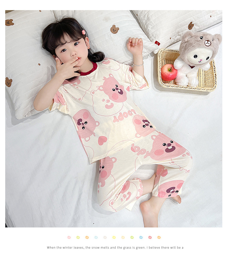 어린이 잠옷 투피스 세트 2026년 신상 봄 여름 얇은 소녀용 반팔 만화 비버 세트 홈웨어