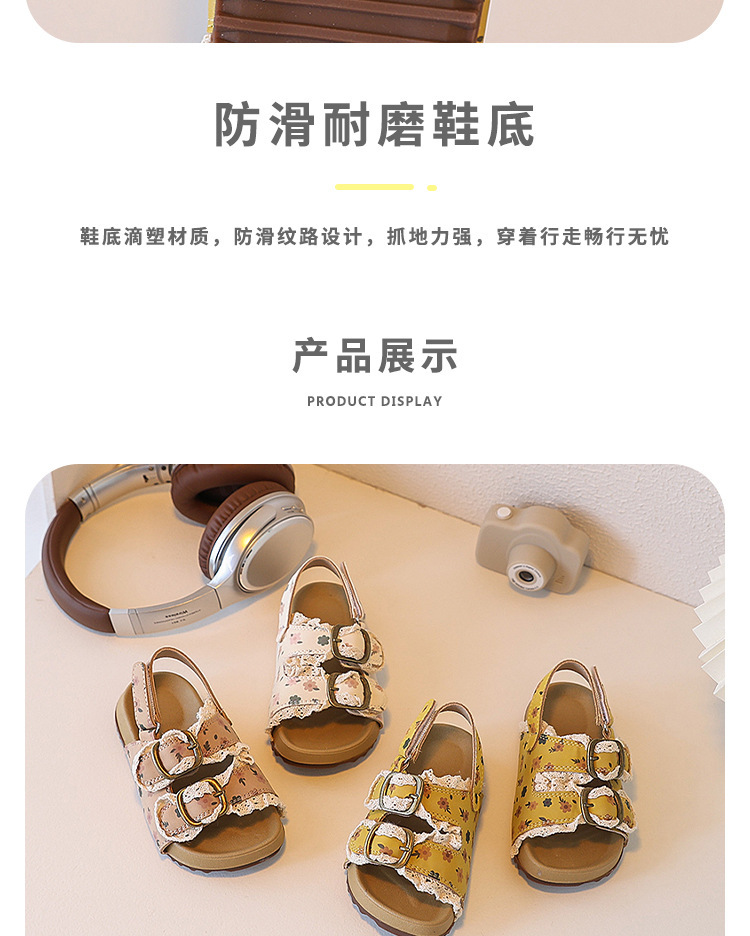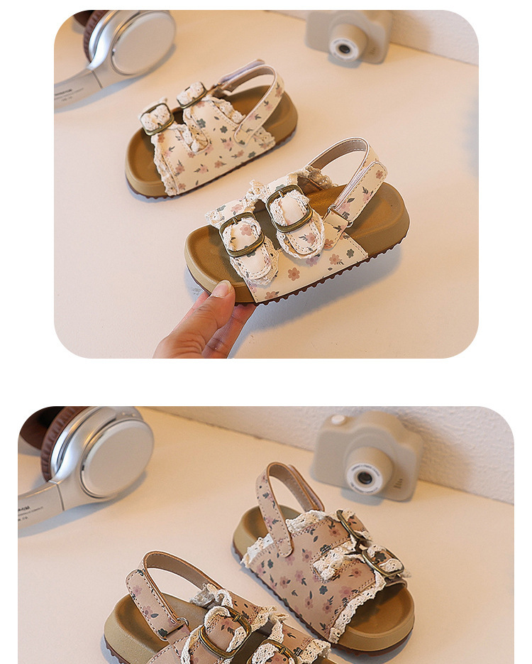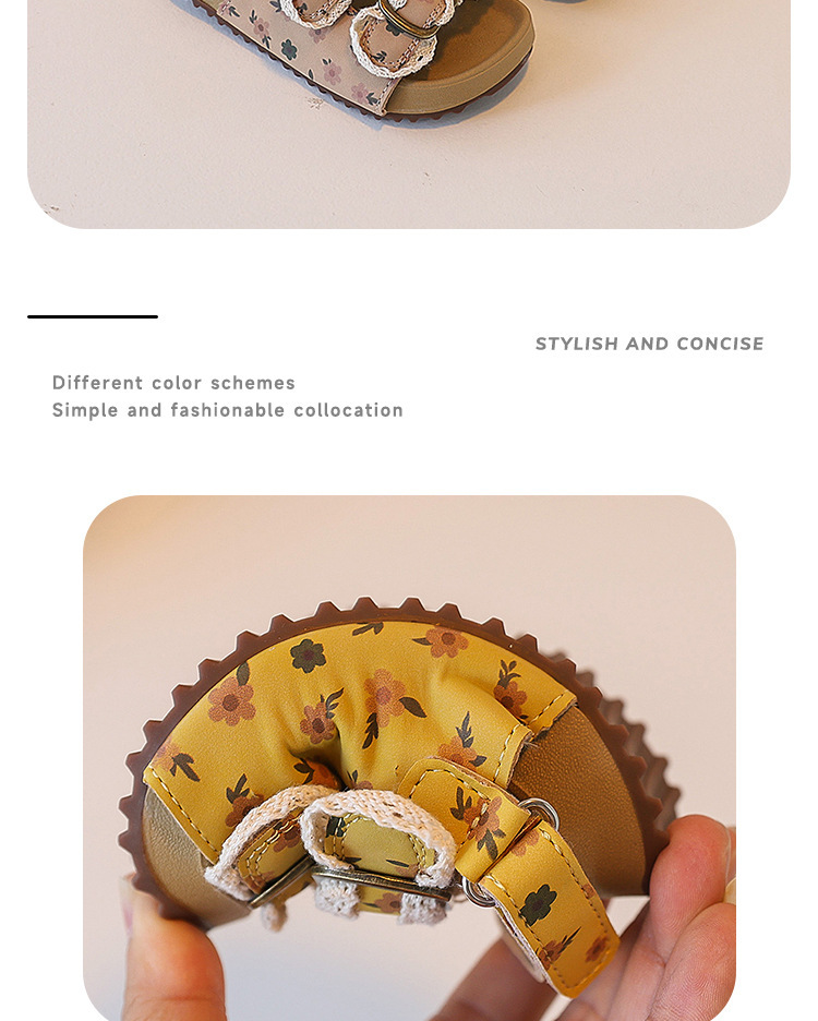 아기 코르크 비치 신발 2025 여름 새로운 한국 스타일 소녀의 세련된 공주 샌들 어린이 신발 작은 꽃스토어 가기