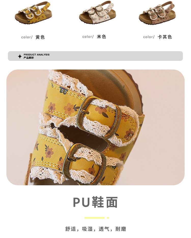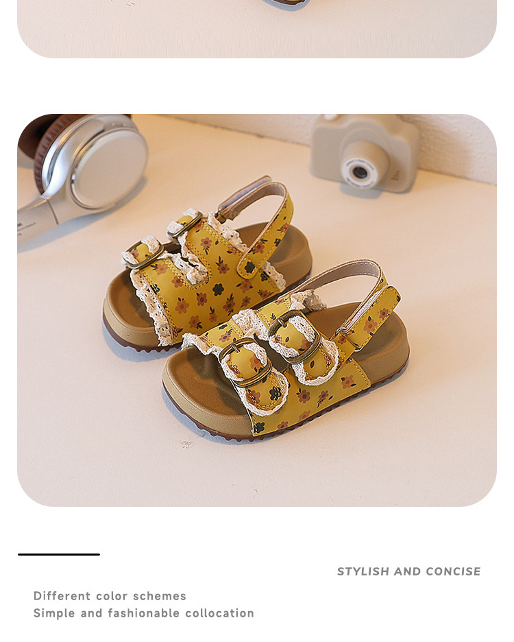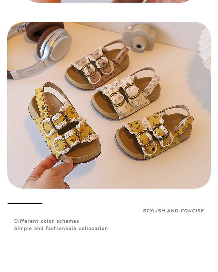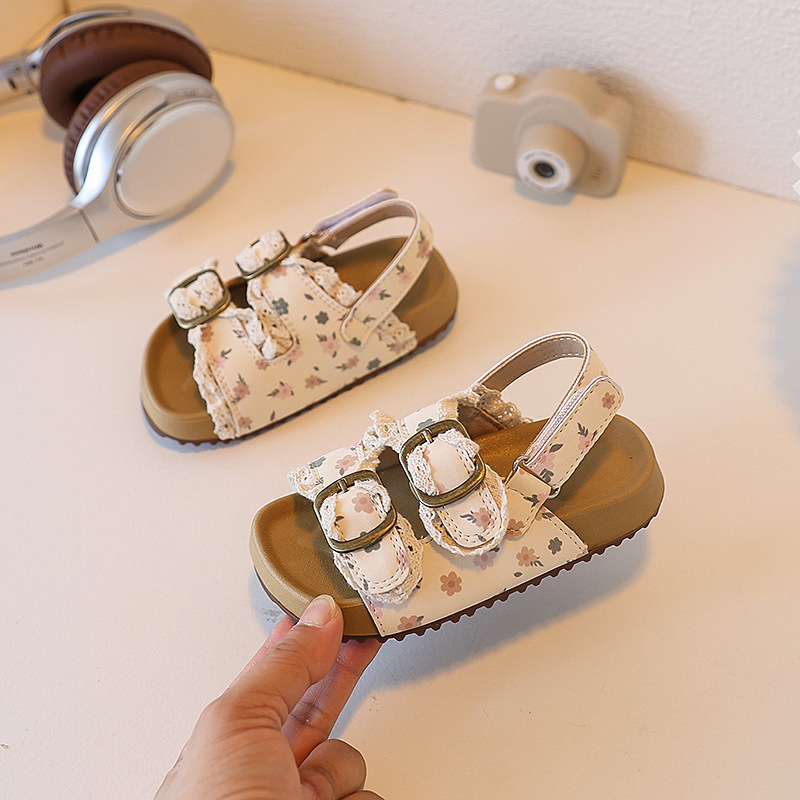 아기 코르크 비치 신발 2025 여름 새로운 한국 스타일 소녀의 세련된 공주 샌들 어린이 신발 작은 꽃