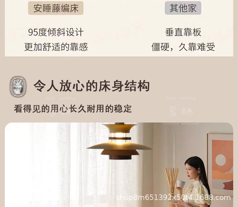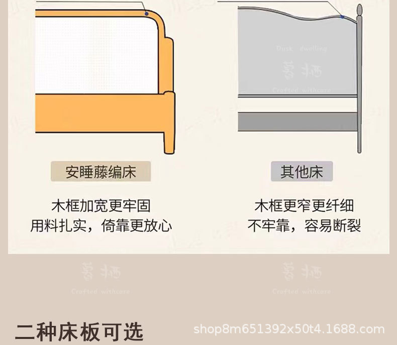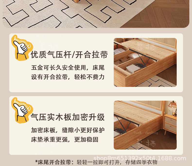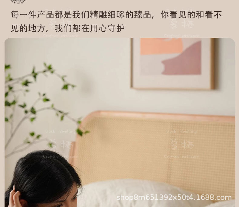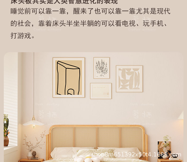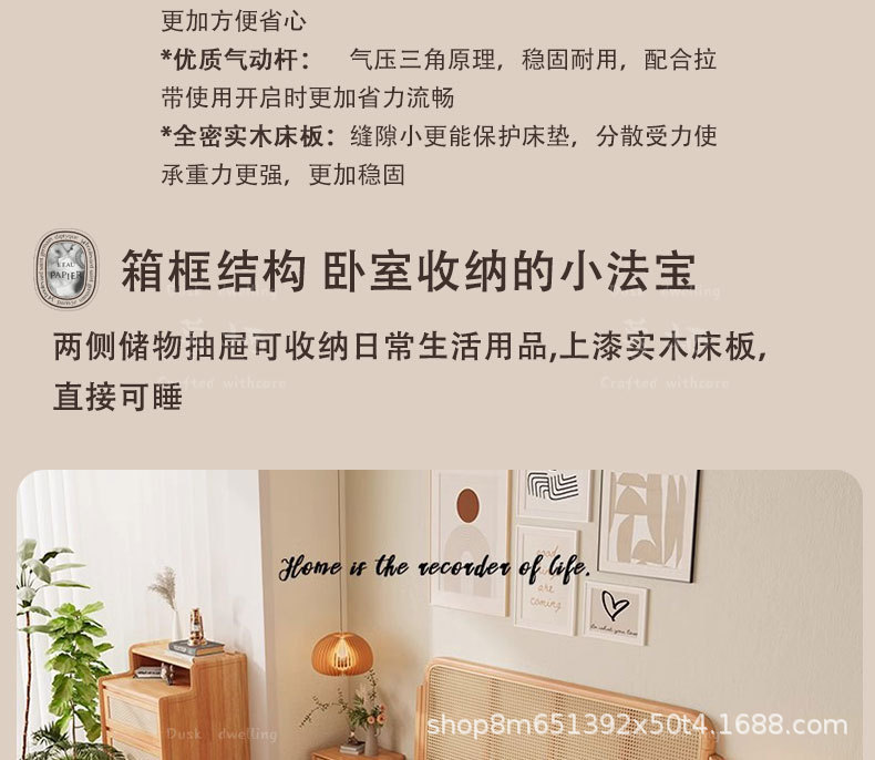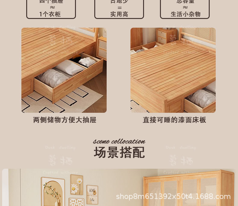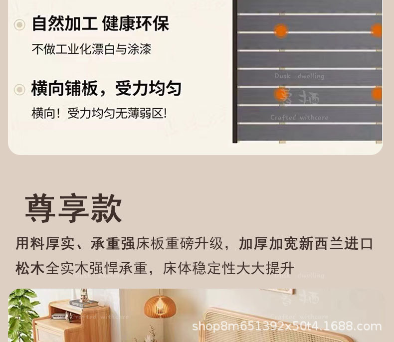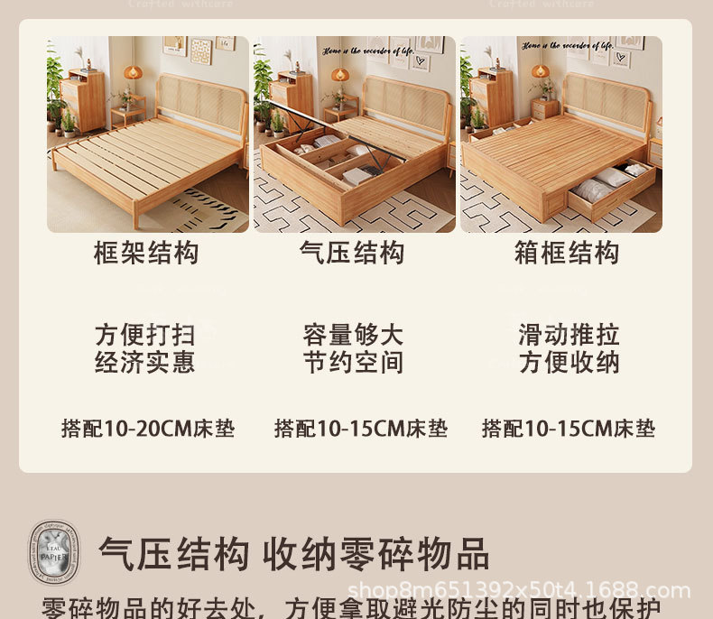 일본식 원목 침대 1.5m 마스터 침실 더블 침대 1.8m 등나무 침대 작은 아파트 1.2m 복고풍 B&B 침대스토어 가기