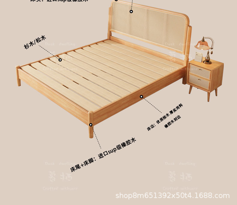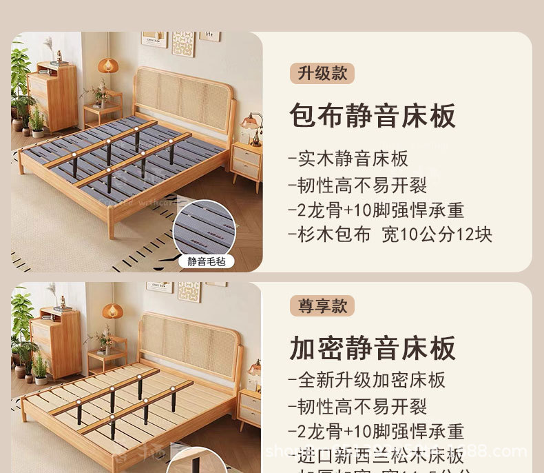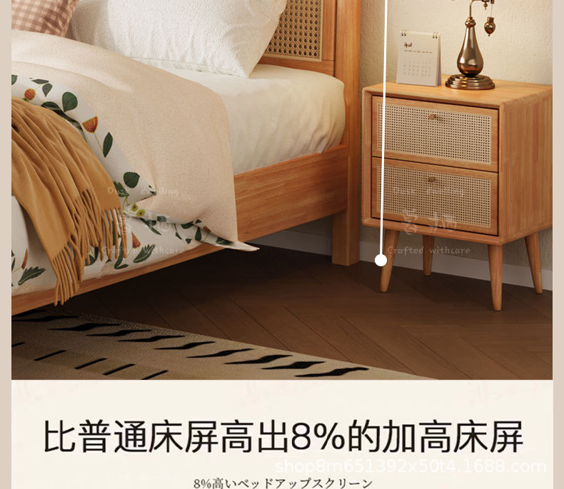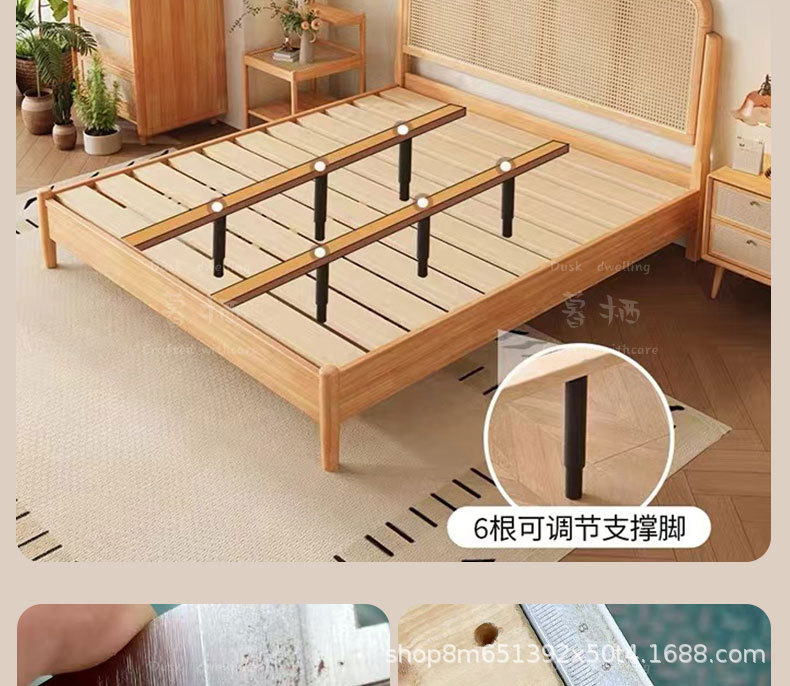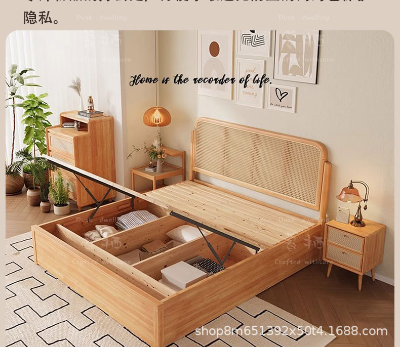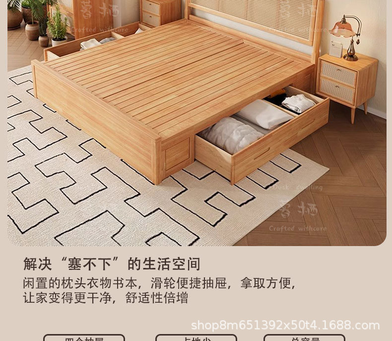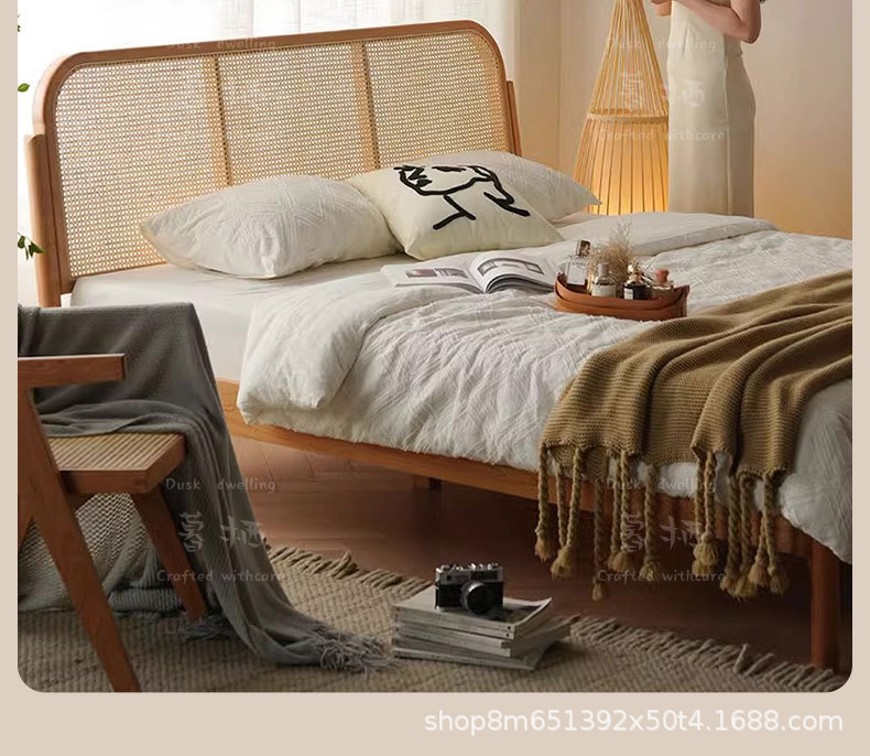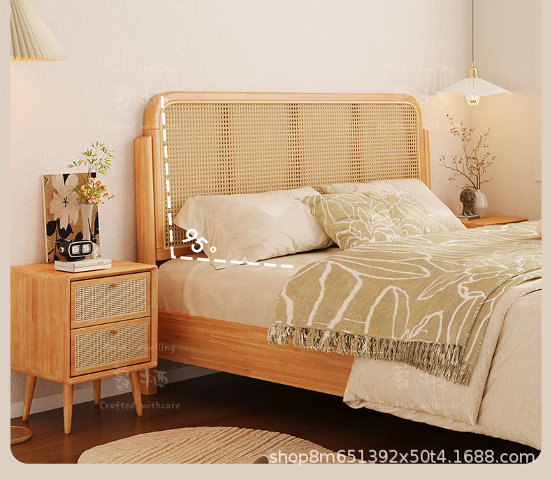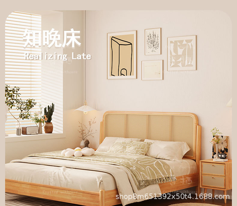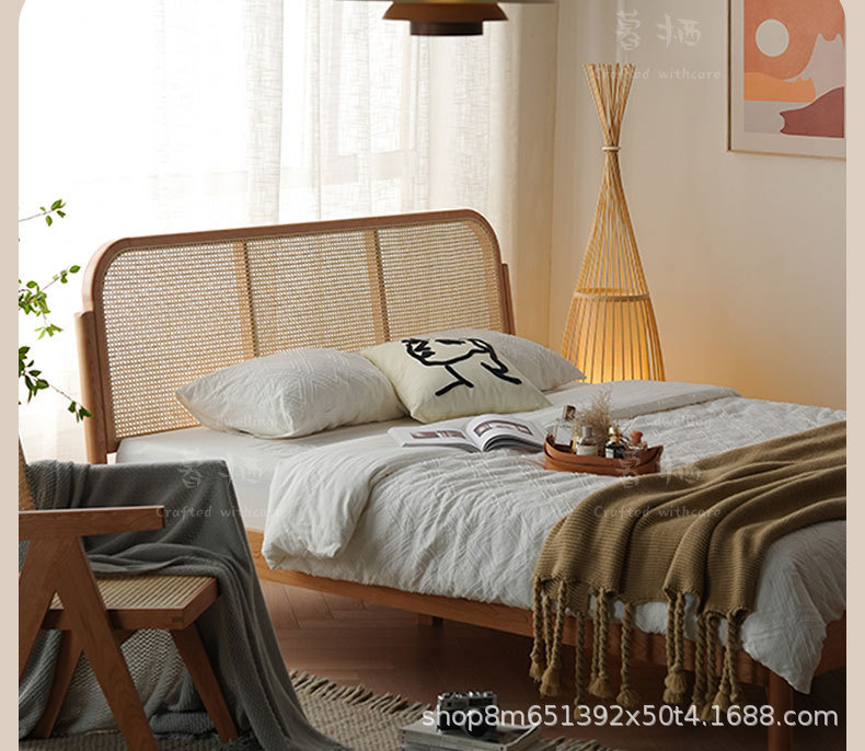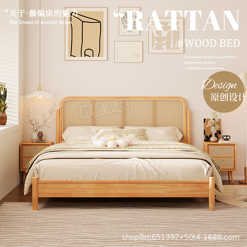 일본식 원목 침대 1.5m 마스터 침실 더블 침대 1.8m 등나무 침대 작은 아파트 1.2m 복고풍 B&B 침대