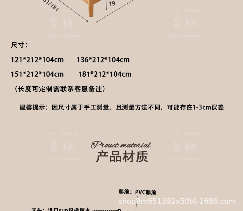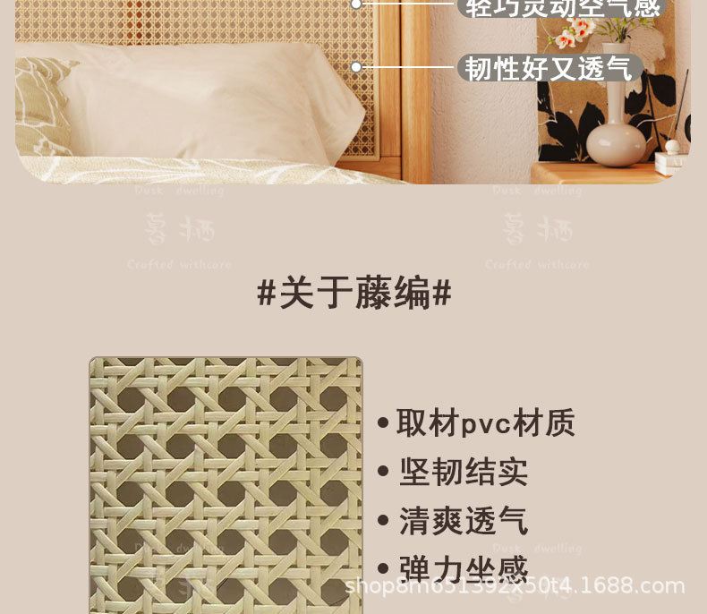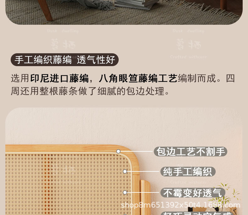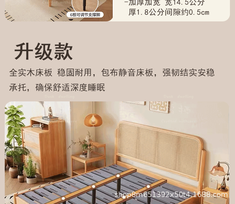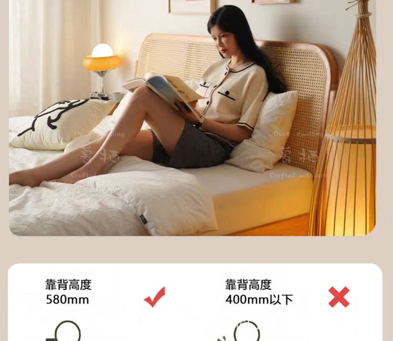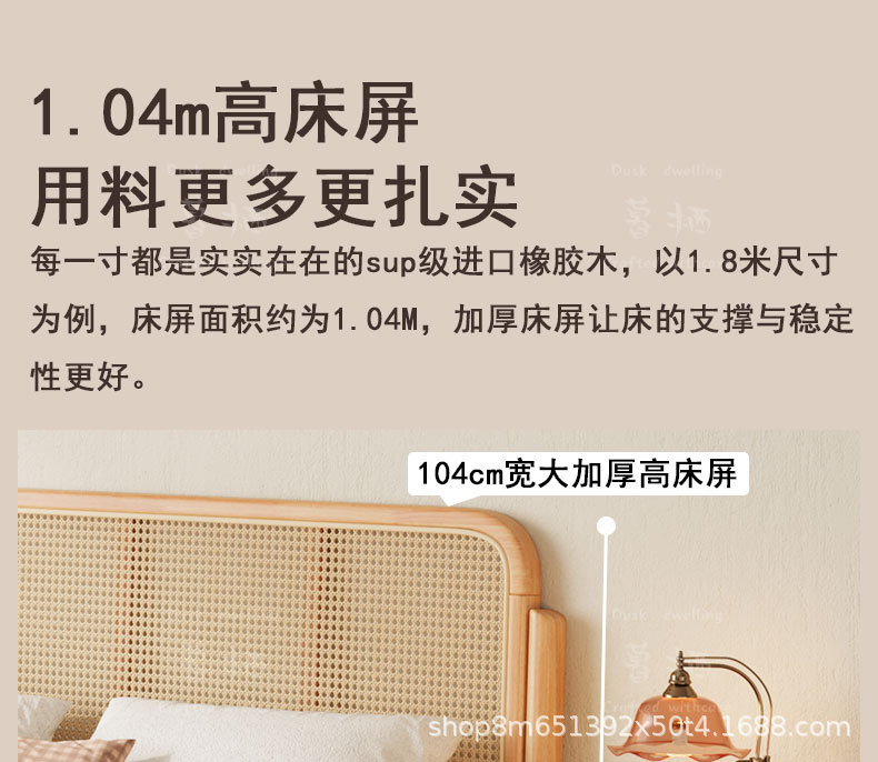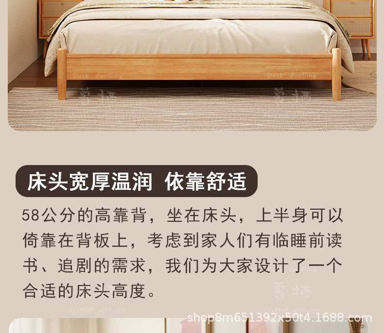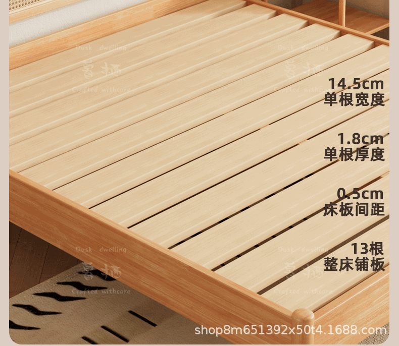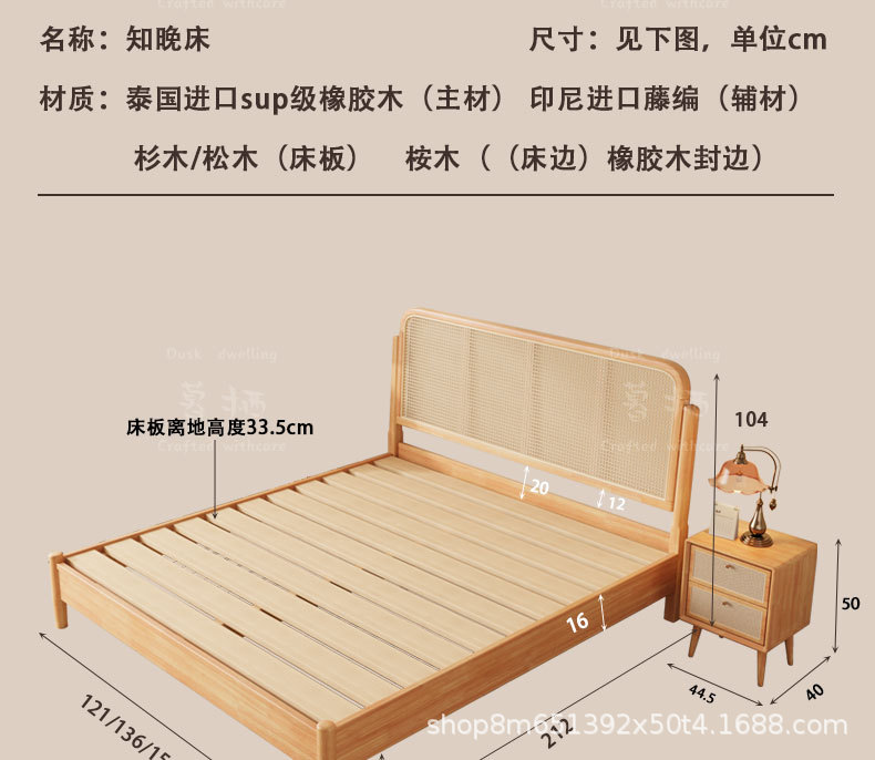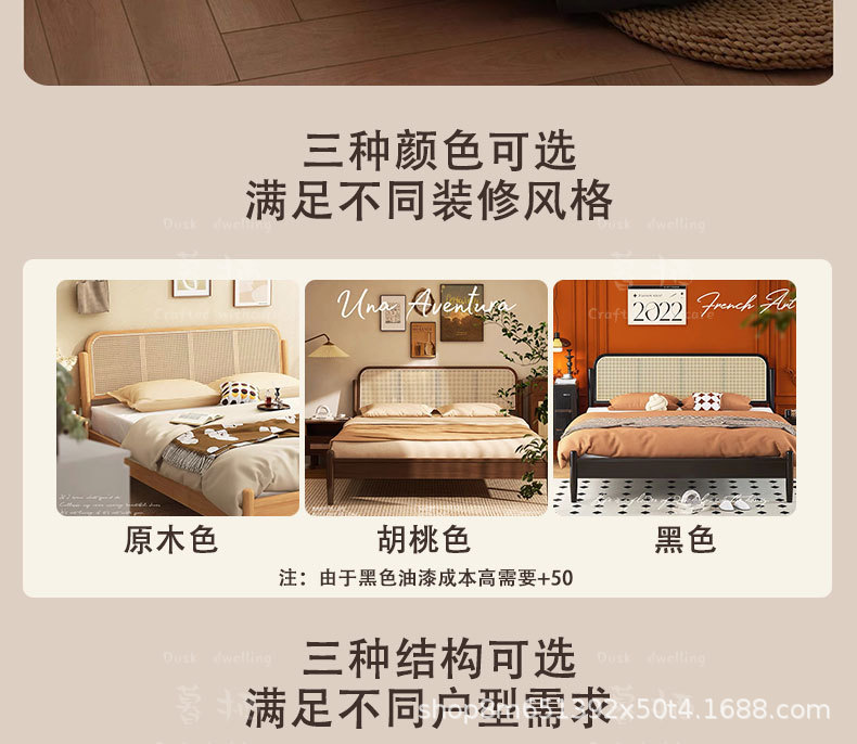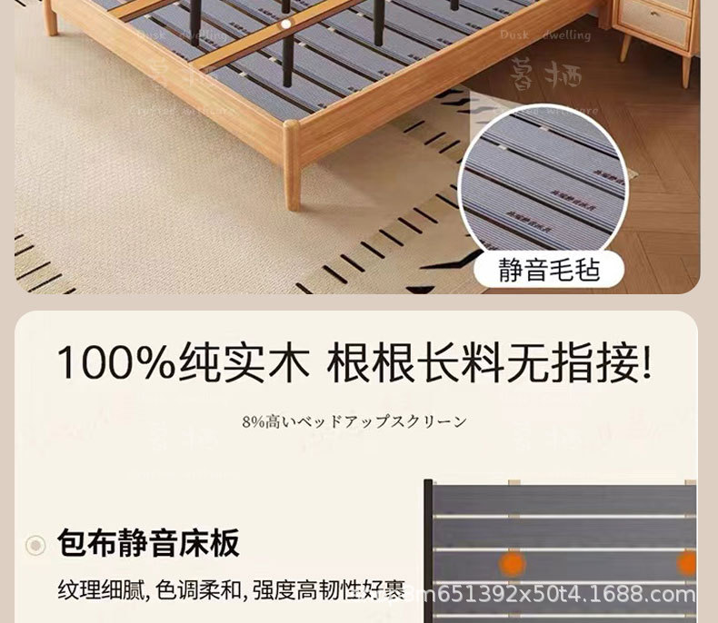 일본식 원목 침대 1.5m 마스터 침실 더블 침대 1.8m 등나무 침대 작은 아파트 1.2m 복고풍 B&B 침대