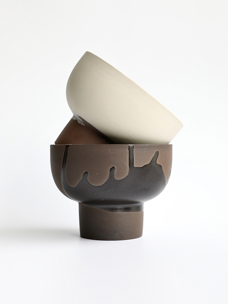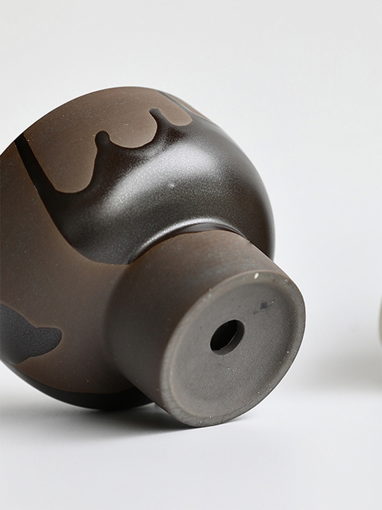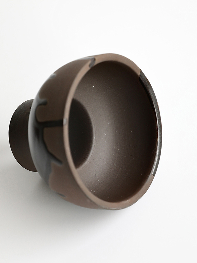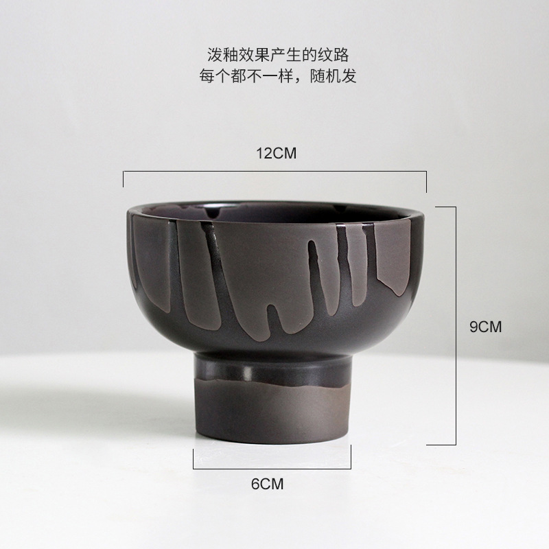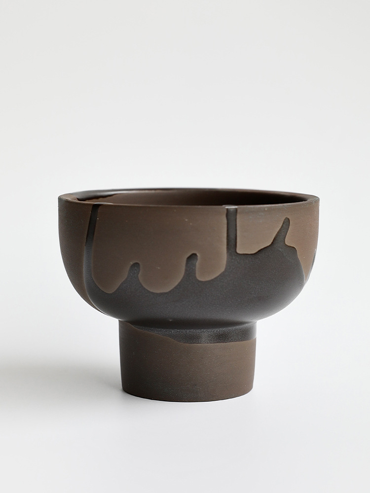 • 유약을 뿌린 검은 도자기 키 큰 그릇 화분 - 구멍 있음