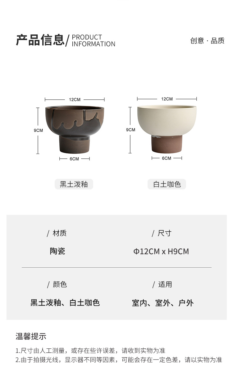 높은 세라믹 작은 화분 흰색 다육 세라믹 화분 볼 플라워 그린 식물 화분 점토 통기성 데스크탑 작은 검정색