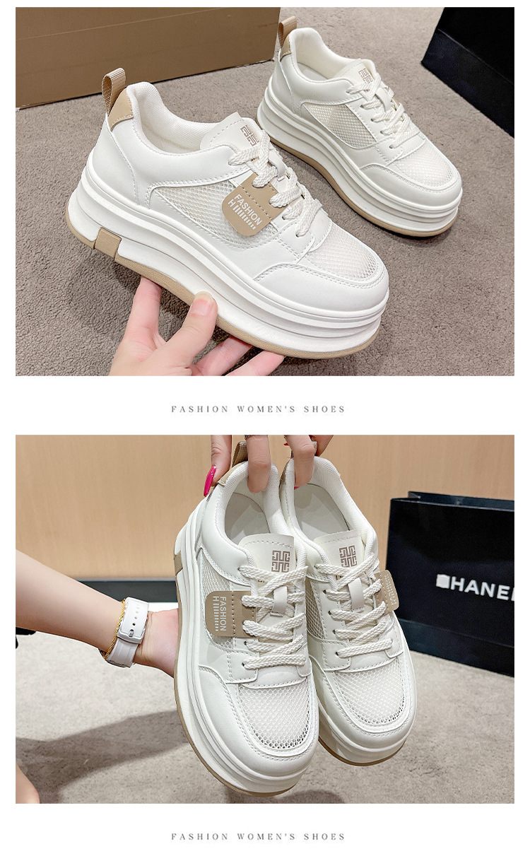 여성을위한 메쉬 흰색 신발 2025 여름 새로운 다목적 얇은 스포츠 및 레저 두꺼운 밑창 운동화 여성을위한 통기성 메쉬 신발